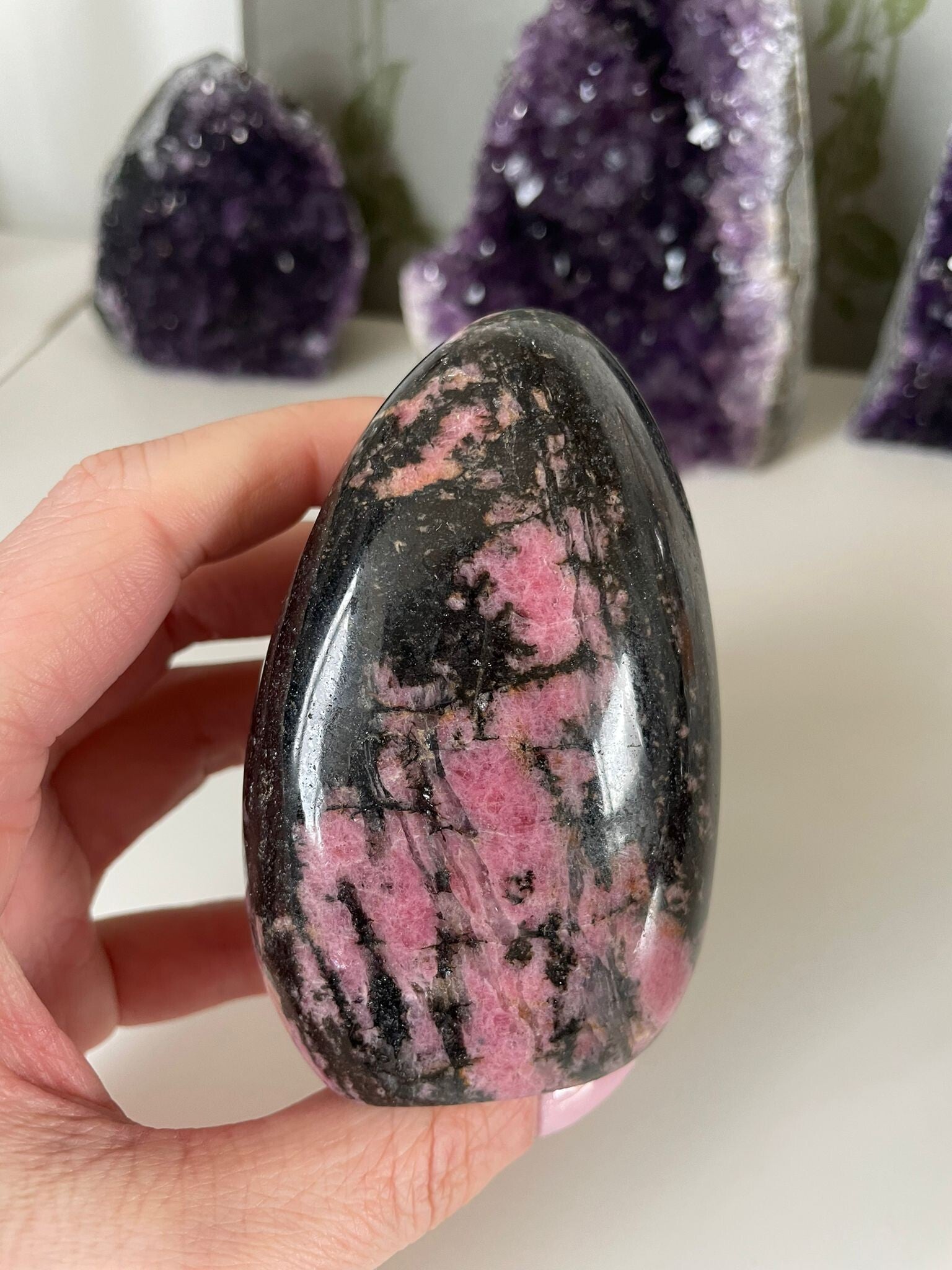 Deze edelsteen wordt gevonden in landen zoals Rusland, Brazilië, Australië en Madagaskar en is populair voor sieraden, verzamelingen en decoratieve stukken. Rhodoniet heeft een robuuste uitstraling door de donkere aders, maar de roze kleur geeft hem tegelijkertijd een zachte, vriendelijke uitstraling.