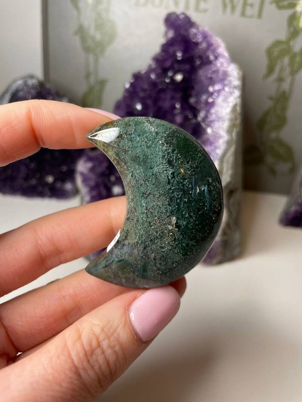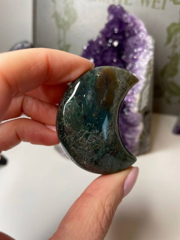 Mosagaat is een prachtige variëteit van agaat die eruitziet alsof er kleine mosjes of takjes in de steen zijn gegroeid. Het geheim zit in de insluitsels van mineralen, meestal groen van kleur, die doorzichtig of wit kwarts doorkruisen. Daardoor lijkt elke steen een mini-landschapje op zichzelf.