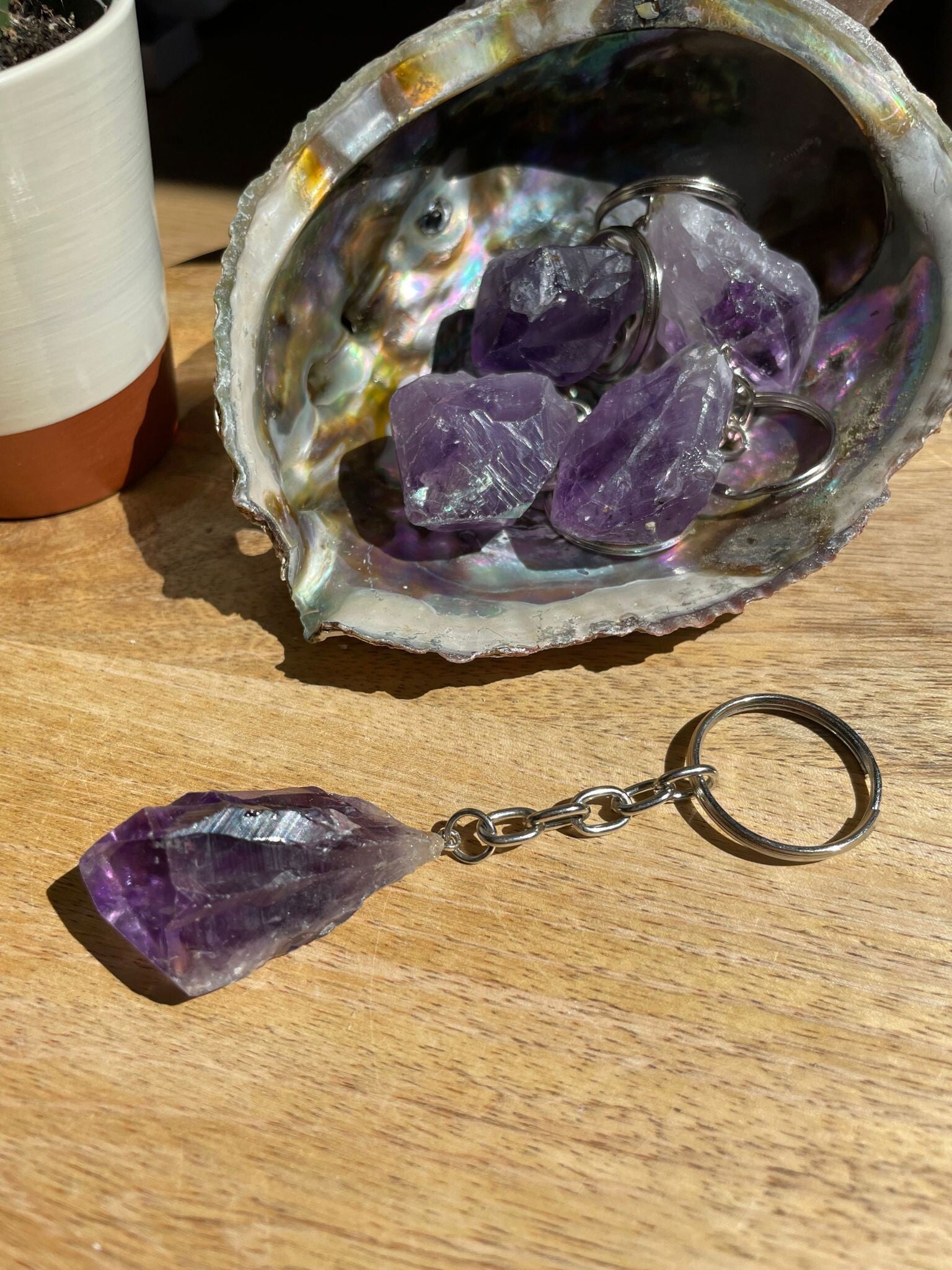 Amethist Ruw Sleutelhanger