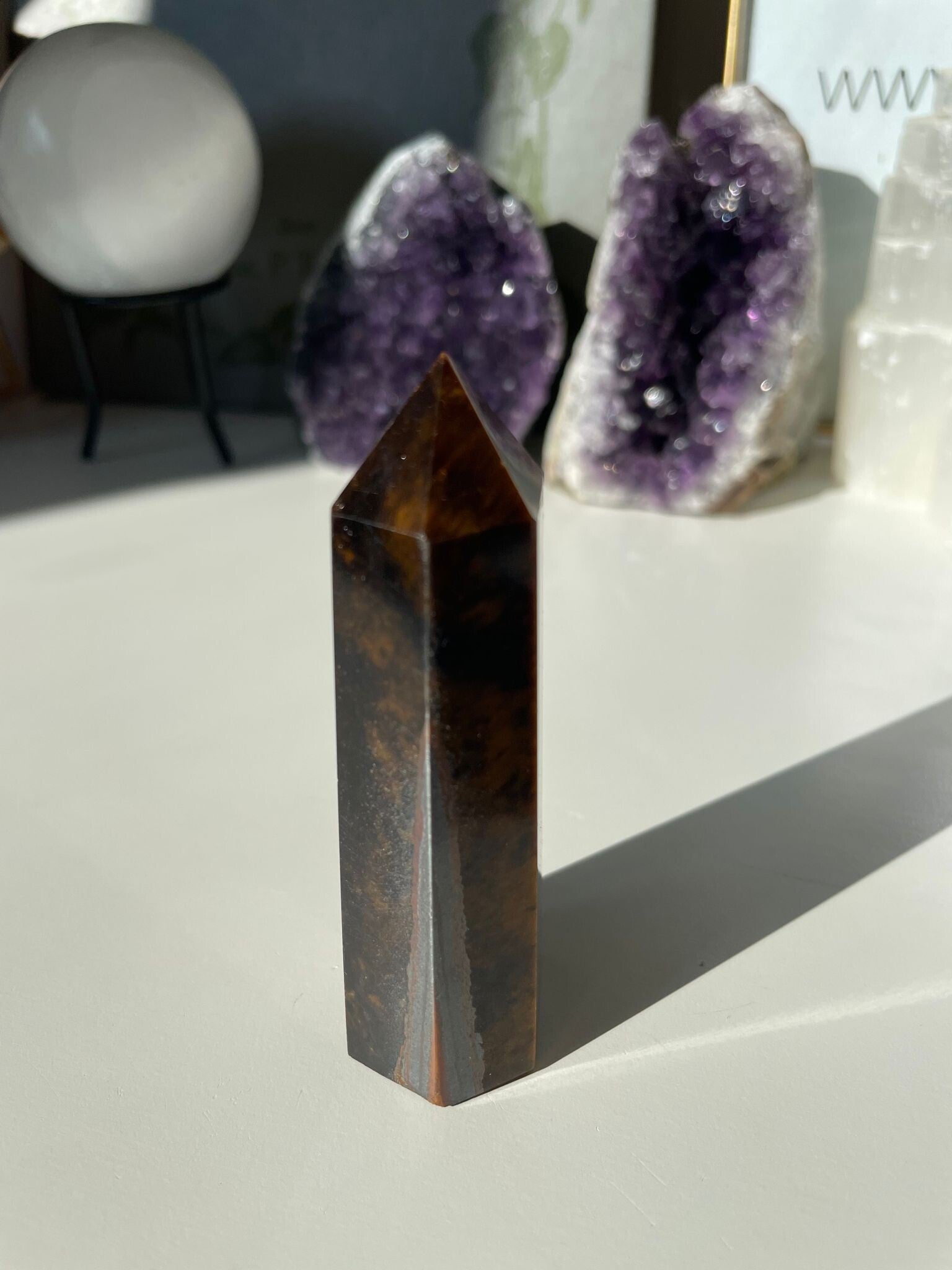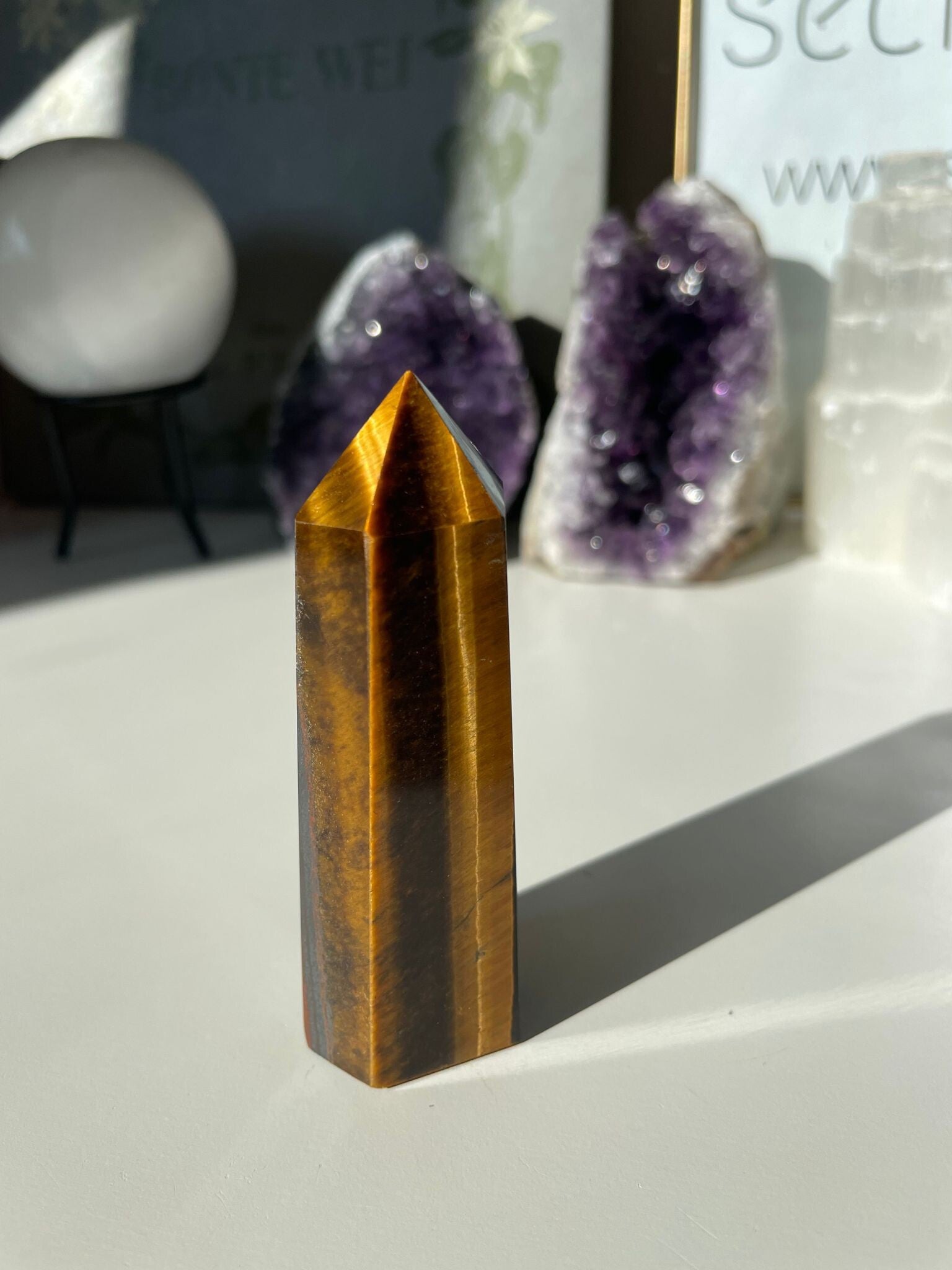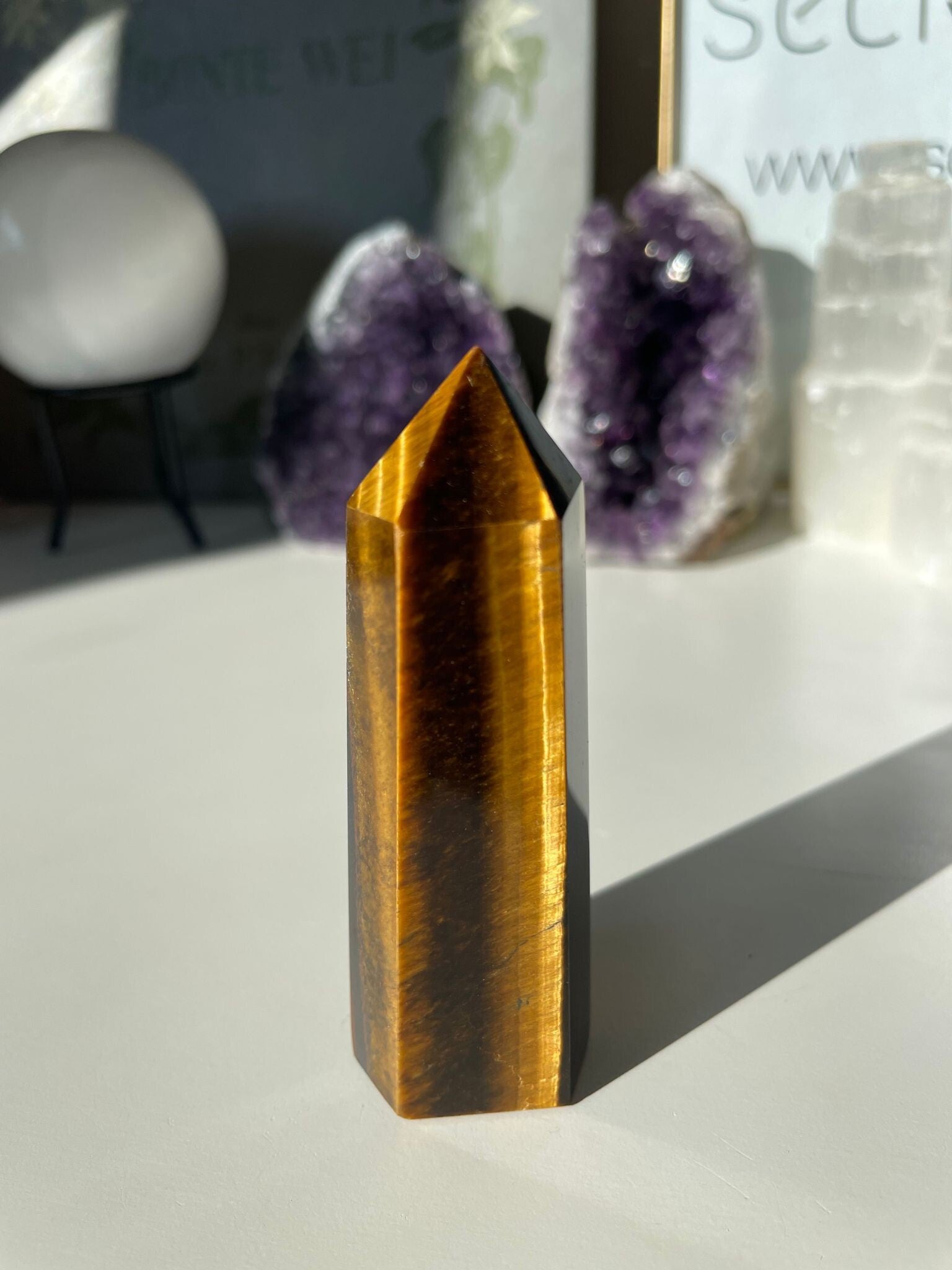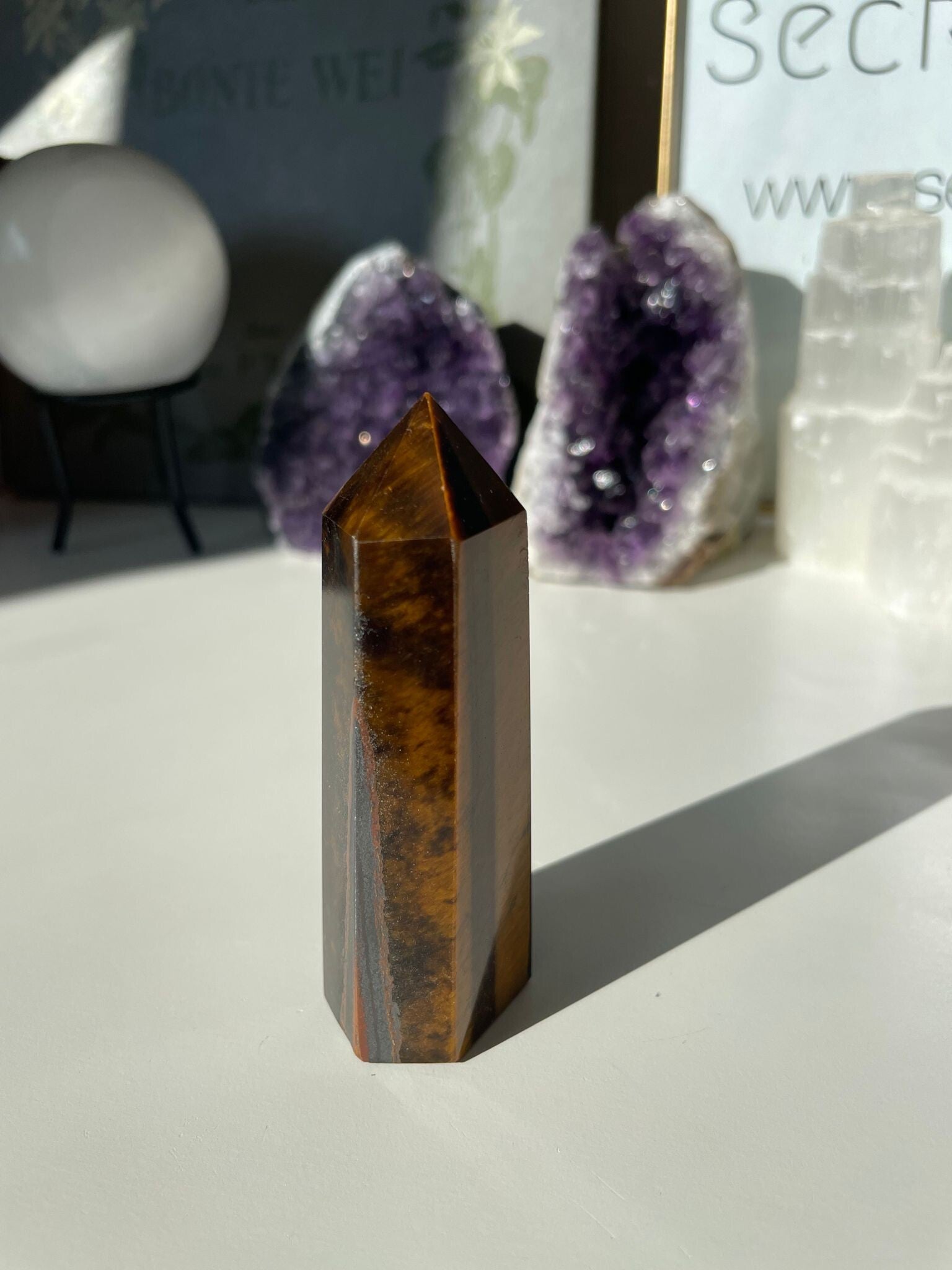 Tijgeroog is een warme, goudbruine steen die schittert als hij het licht vangt. Dat bijzondere glanseffect heet chatoyance, het doet denken aan het oog van een tijger dat in het zonlicht oplicht. Geen wonder dat deze steen zijn naam kreeg!
