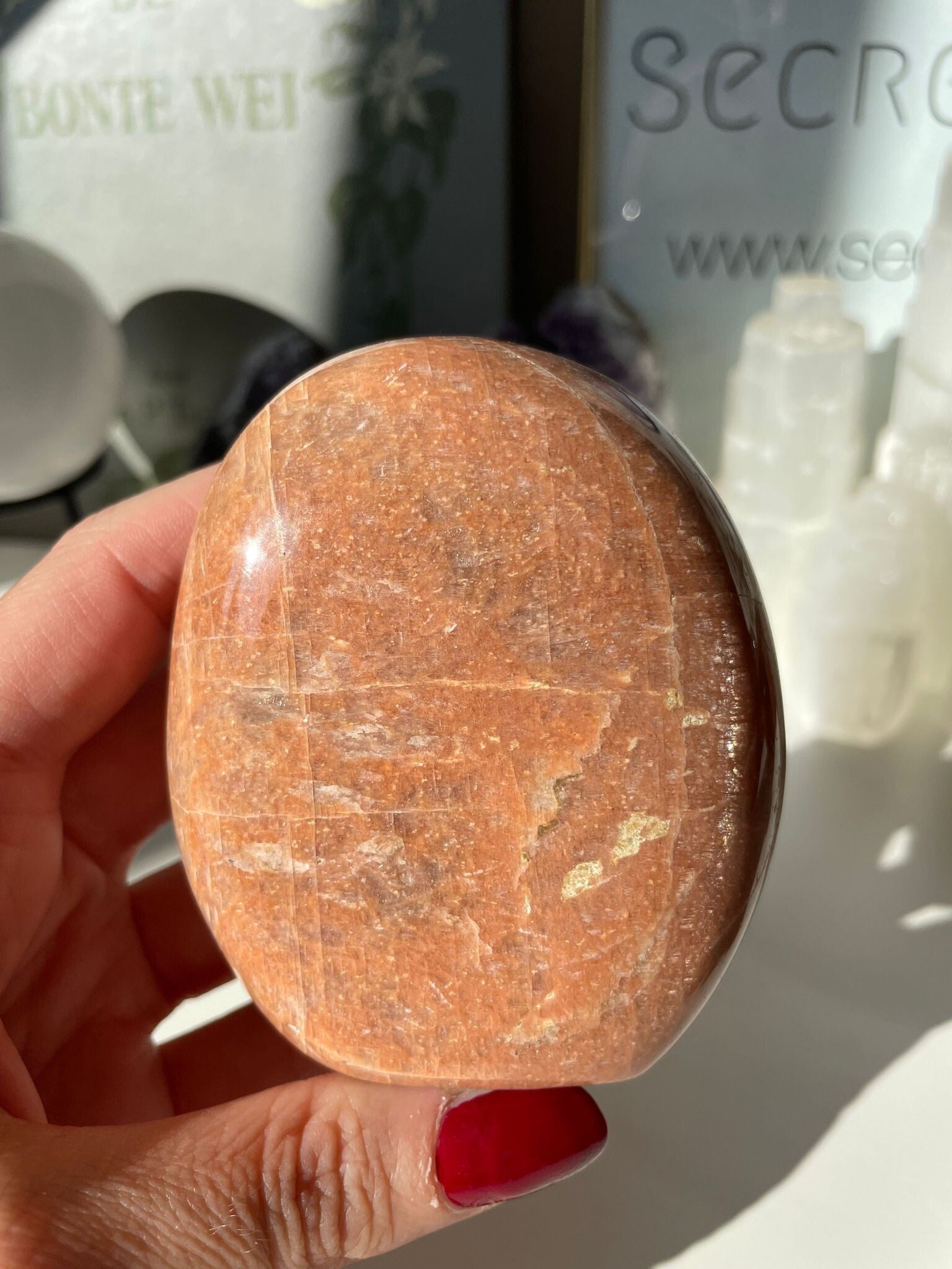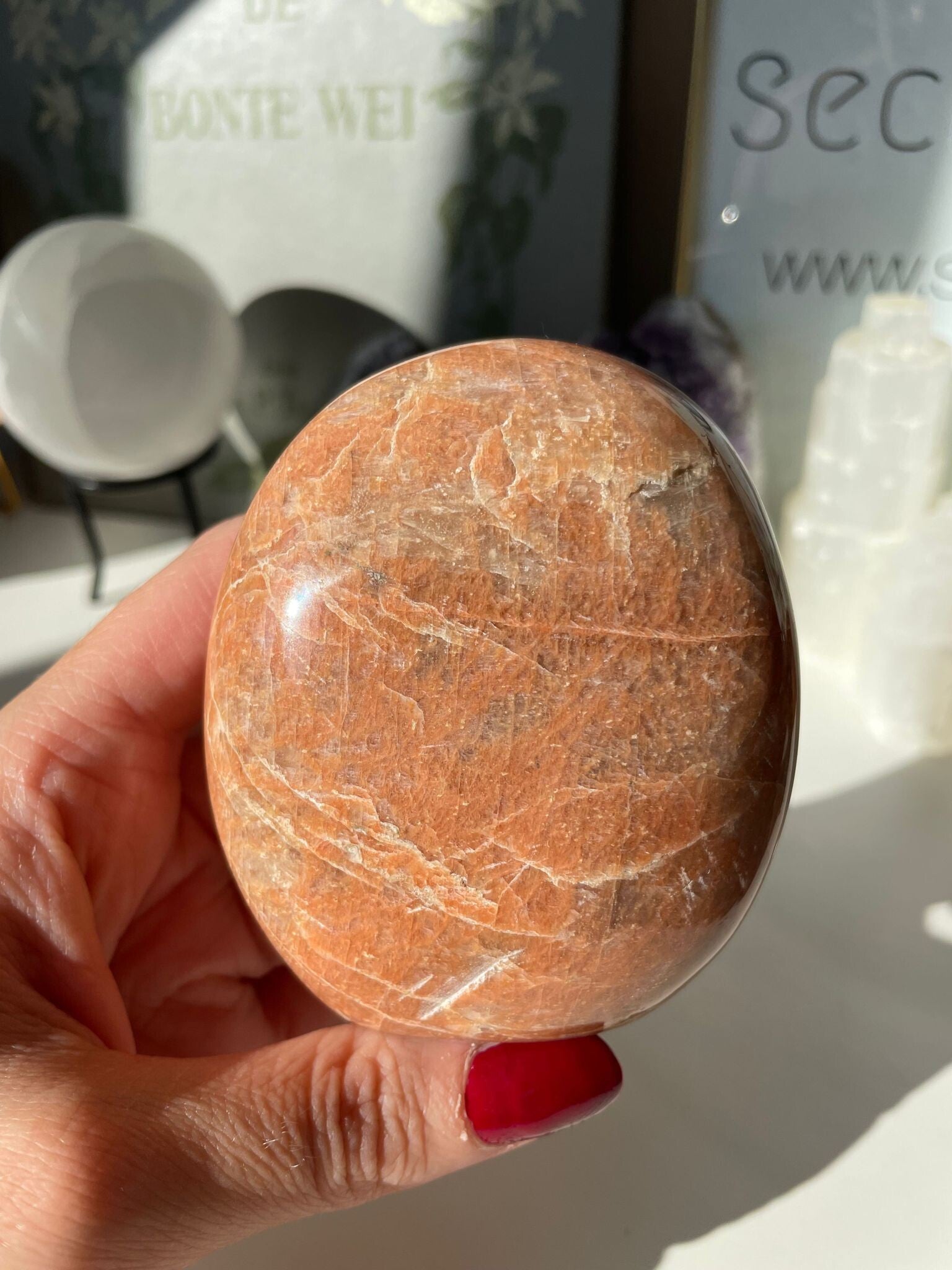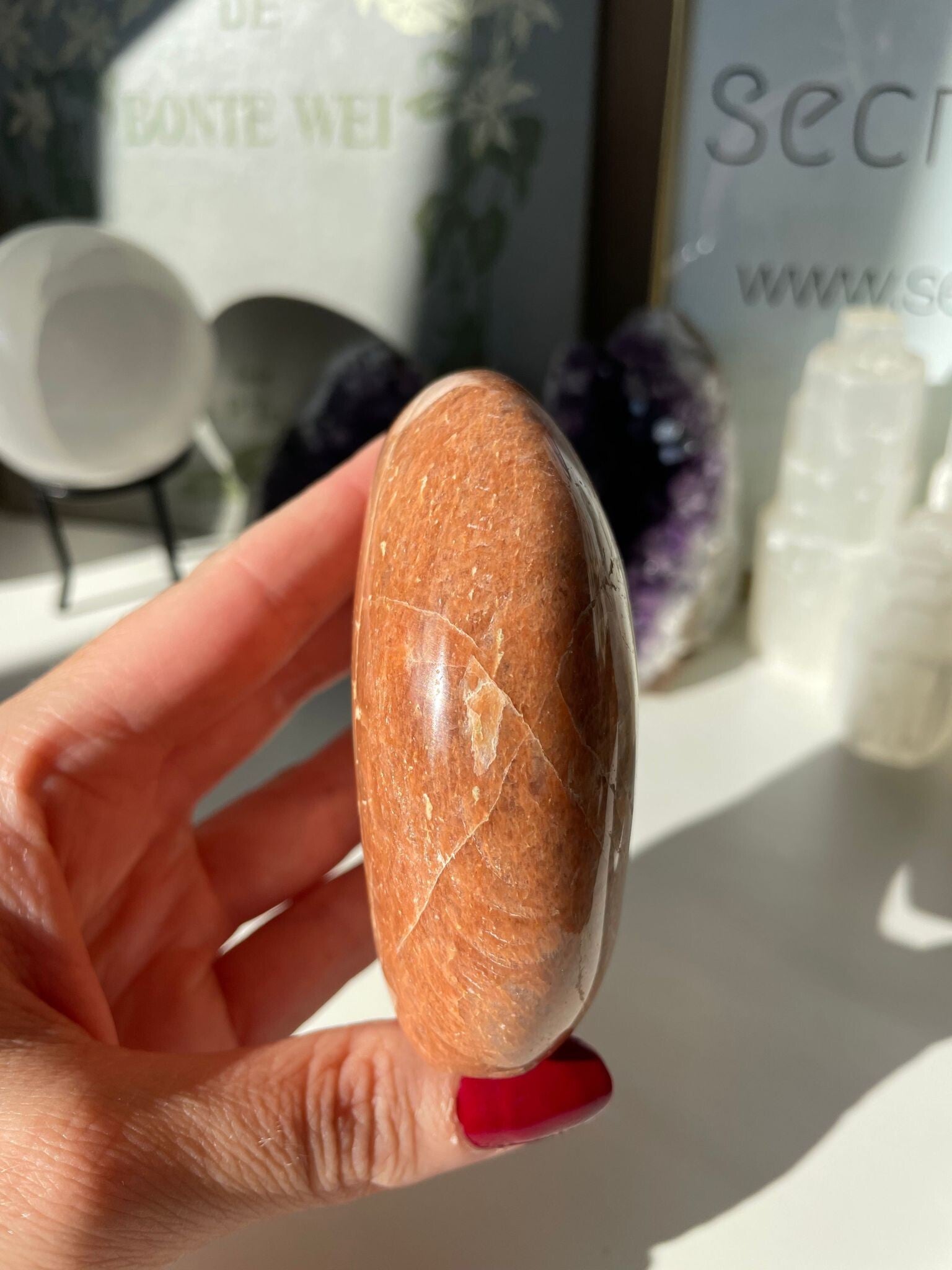 Leuk weetje: In oude verhalen werd maansteen gezien als een stukje maanlicht dat op aarde was gevallen. Perzik Maansteen combineert dat zachte licht met een warme, vriendelijke gloed, alsof de zon en de maan samen een steen hebben gemaakt.