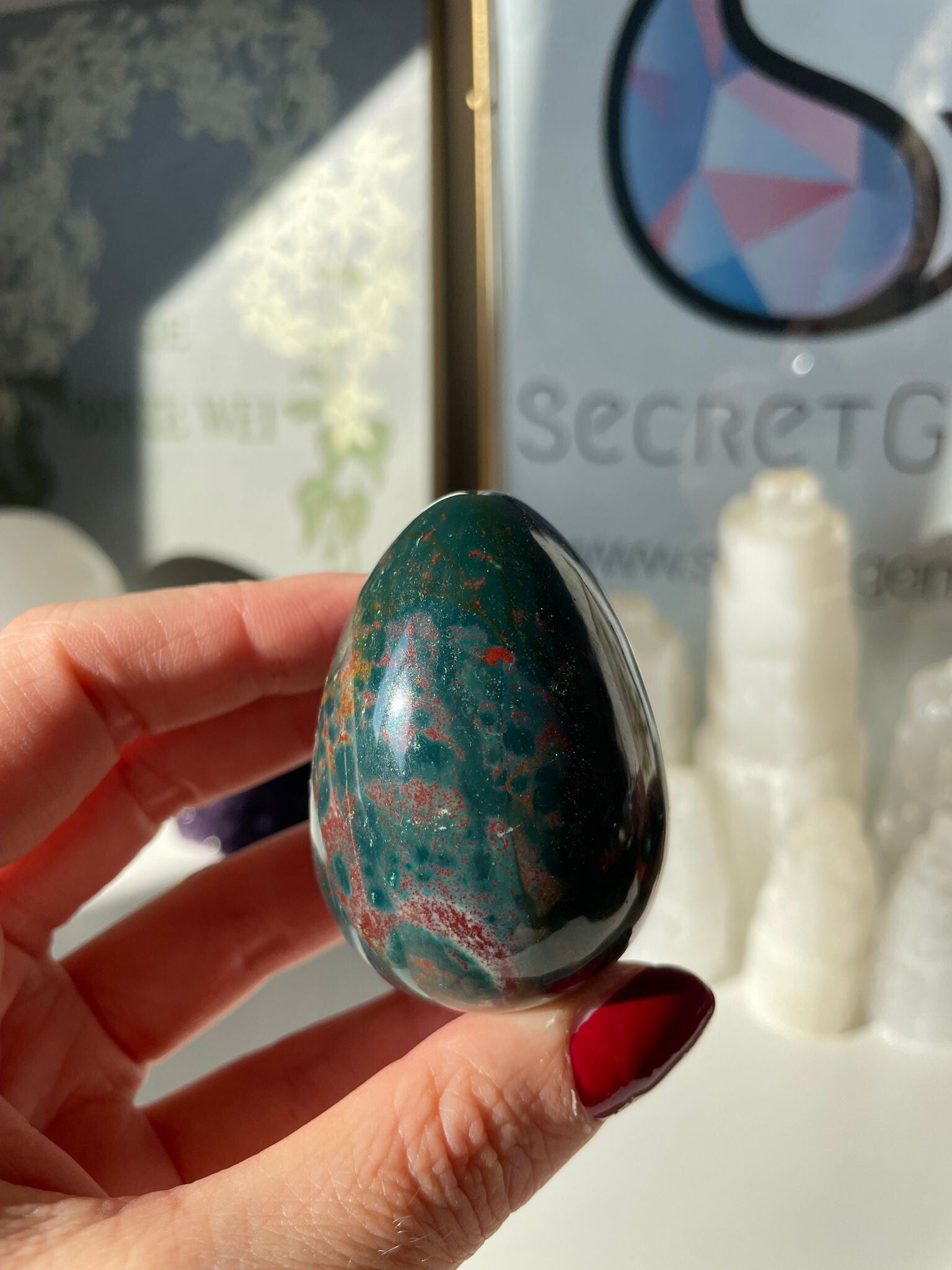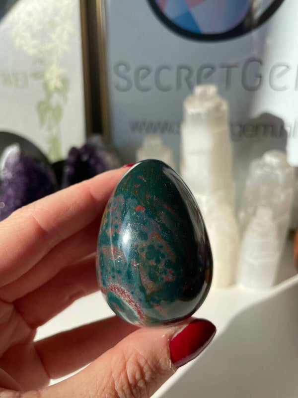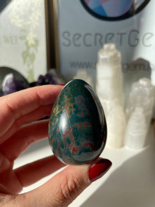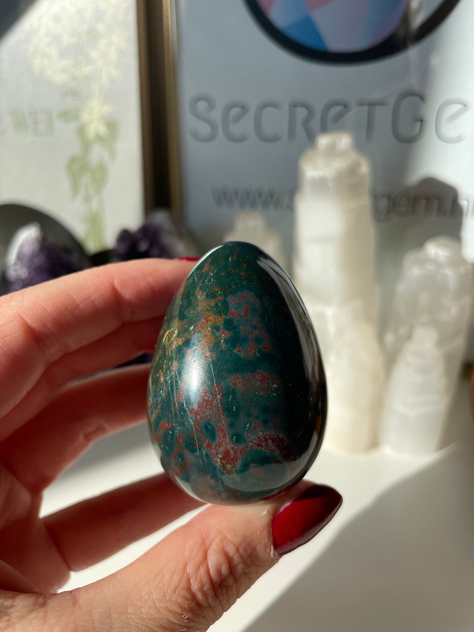 De steen wordt gevonden in India, Brazilië, Australië en de Verenigde Staten, en is al eeuwen geliefd. In de oudheid dacht men zelfs dat de rode stipjes het bloed van een draak of held symboliseerden — vandaar de naam bloedsteen. Toch is het vooral het contrast tussen het diepe groen en het levendige rood dat deze steen zo intrigerend maakt.