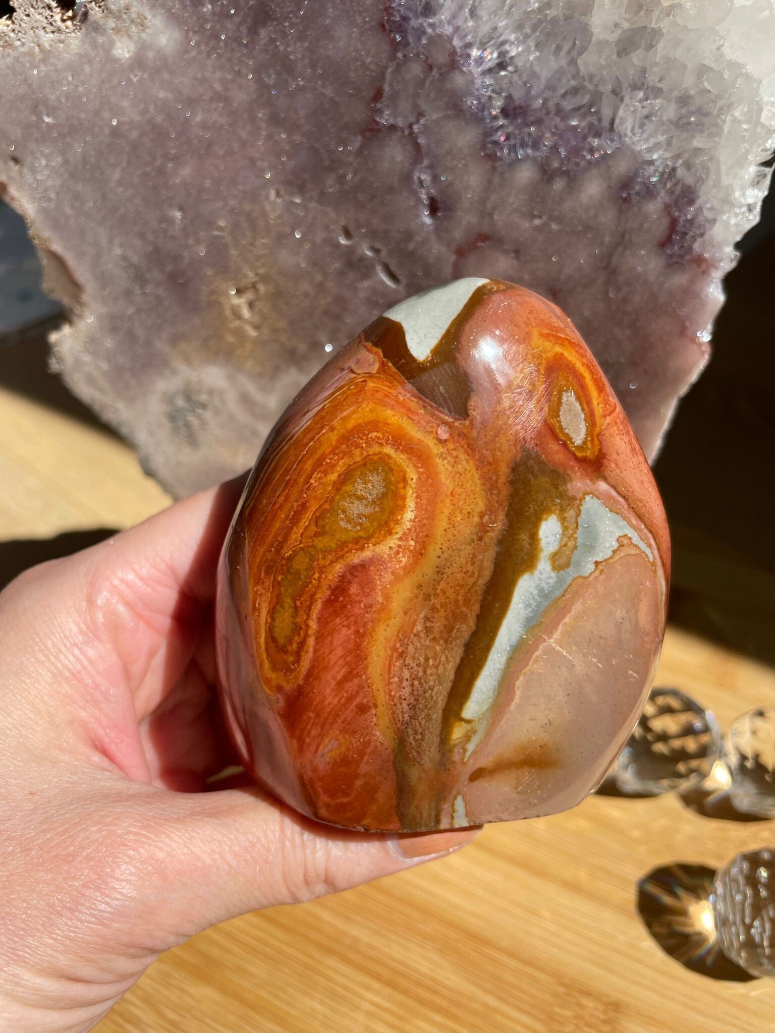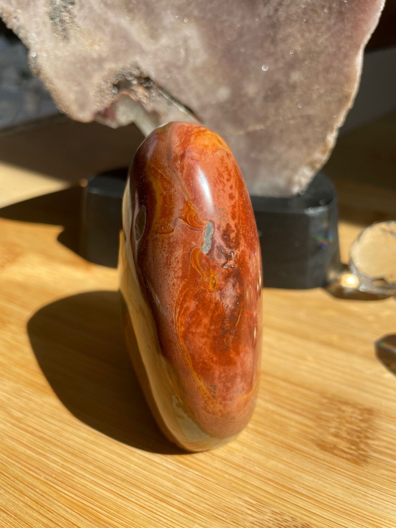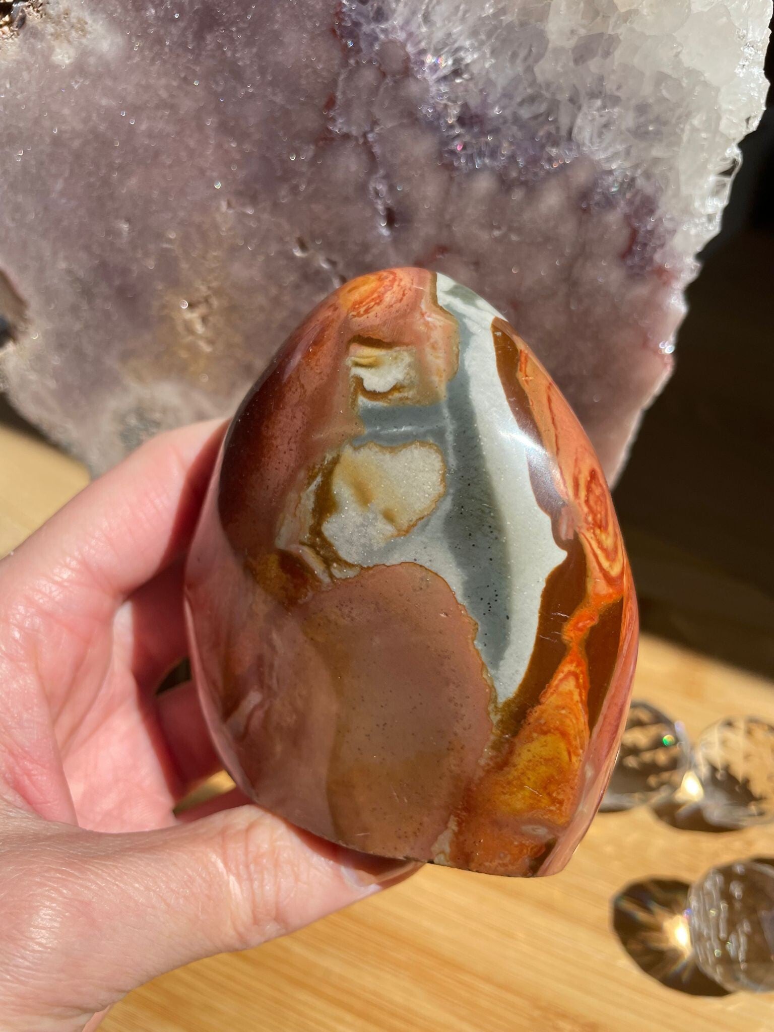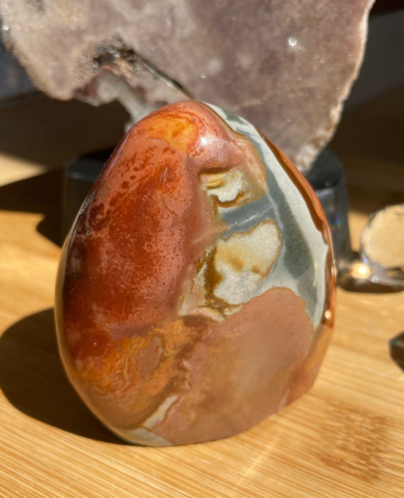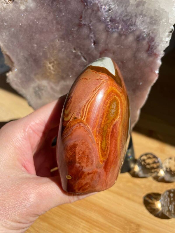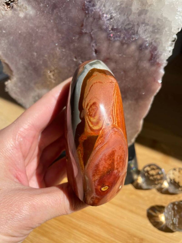 Leuk weetje: Polychroom jaspis werd pas rond het jaar 2008 ontdekt, per toeval, toen men eigenlijk zocht naar ocean jaspis! Een heerlijke reminder dat de mooiste dingen soms gewoon ontstaan als je iets anders probeert te vinden.