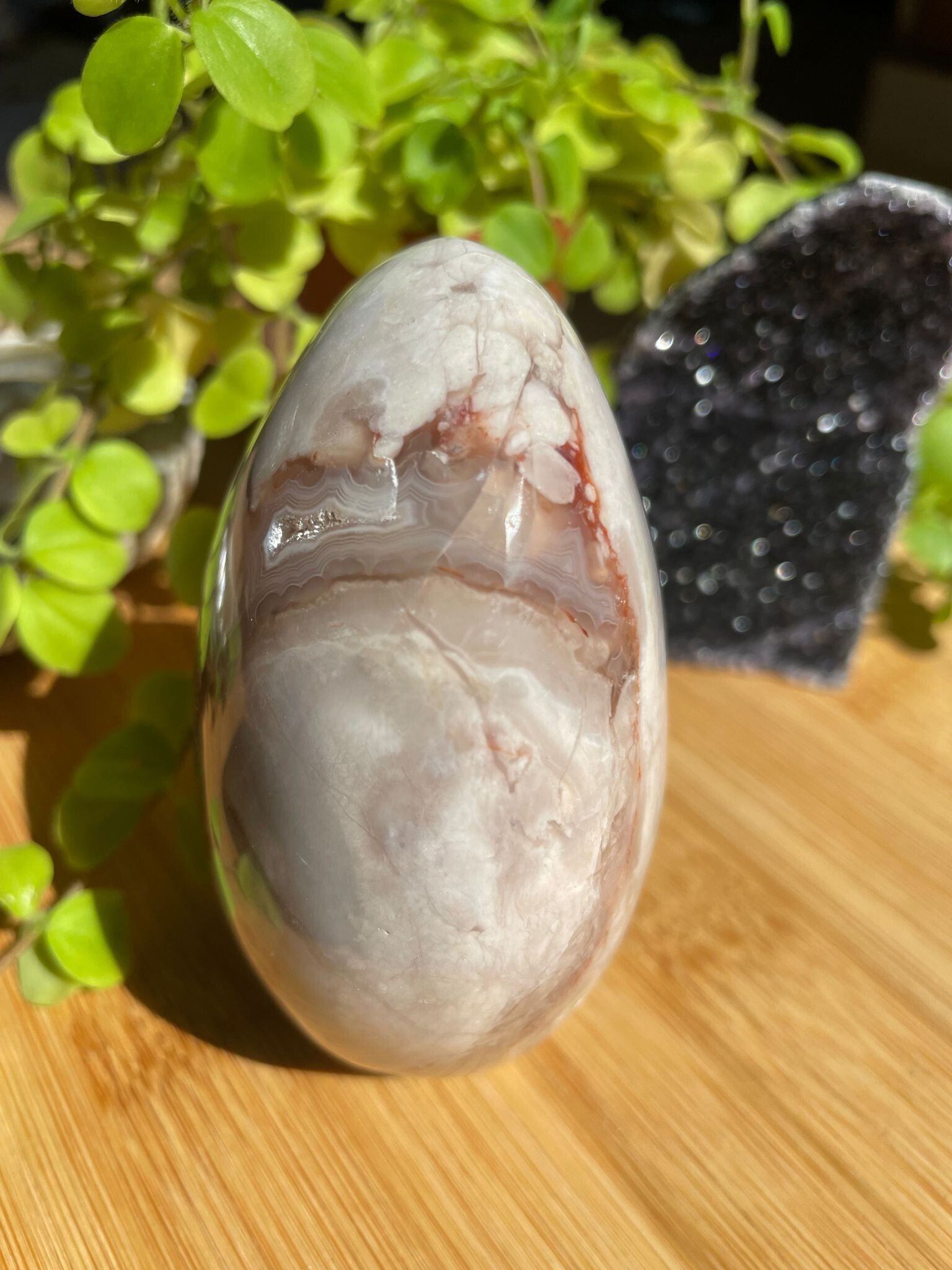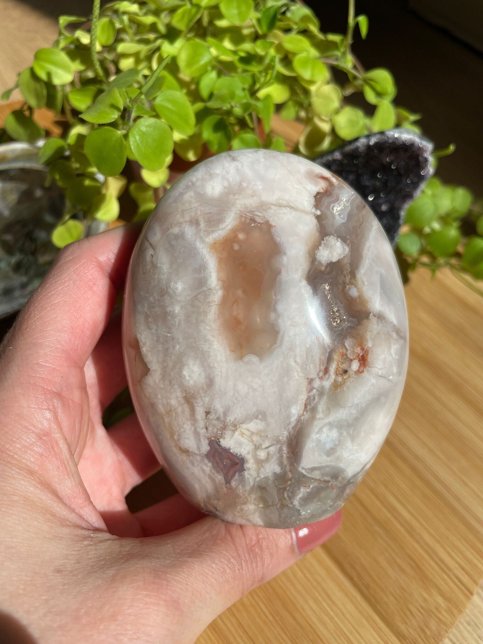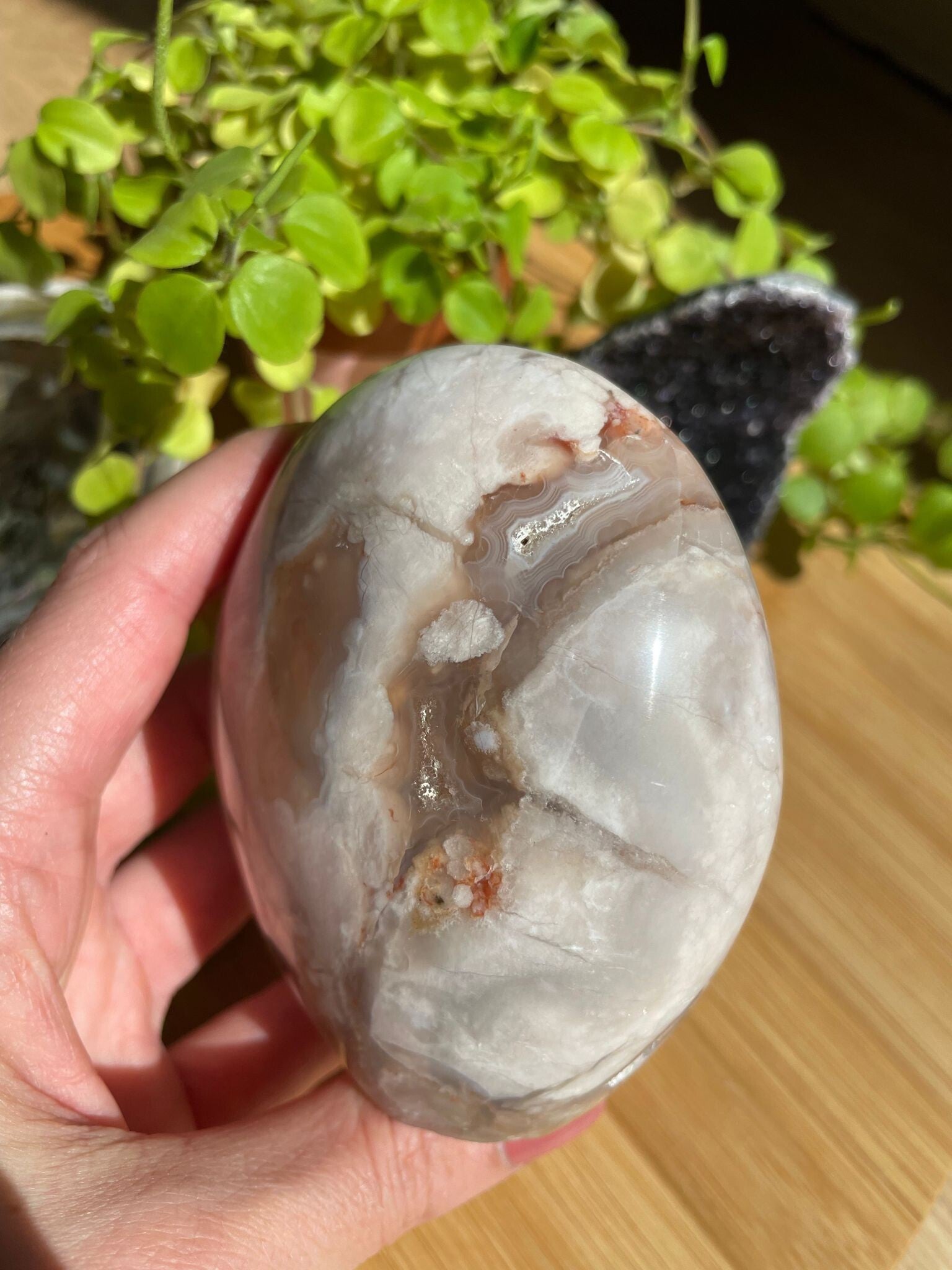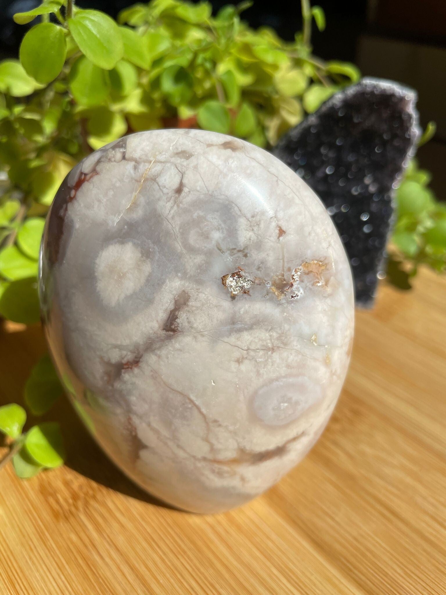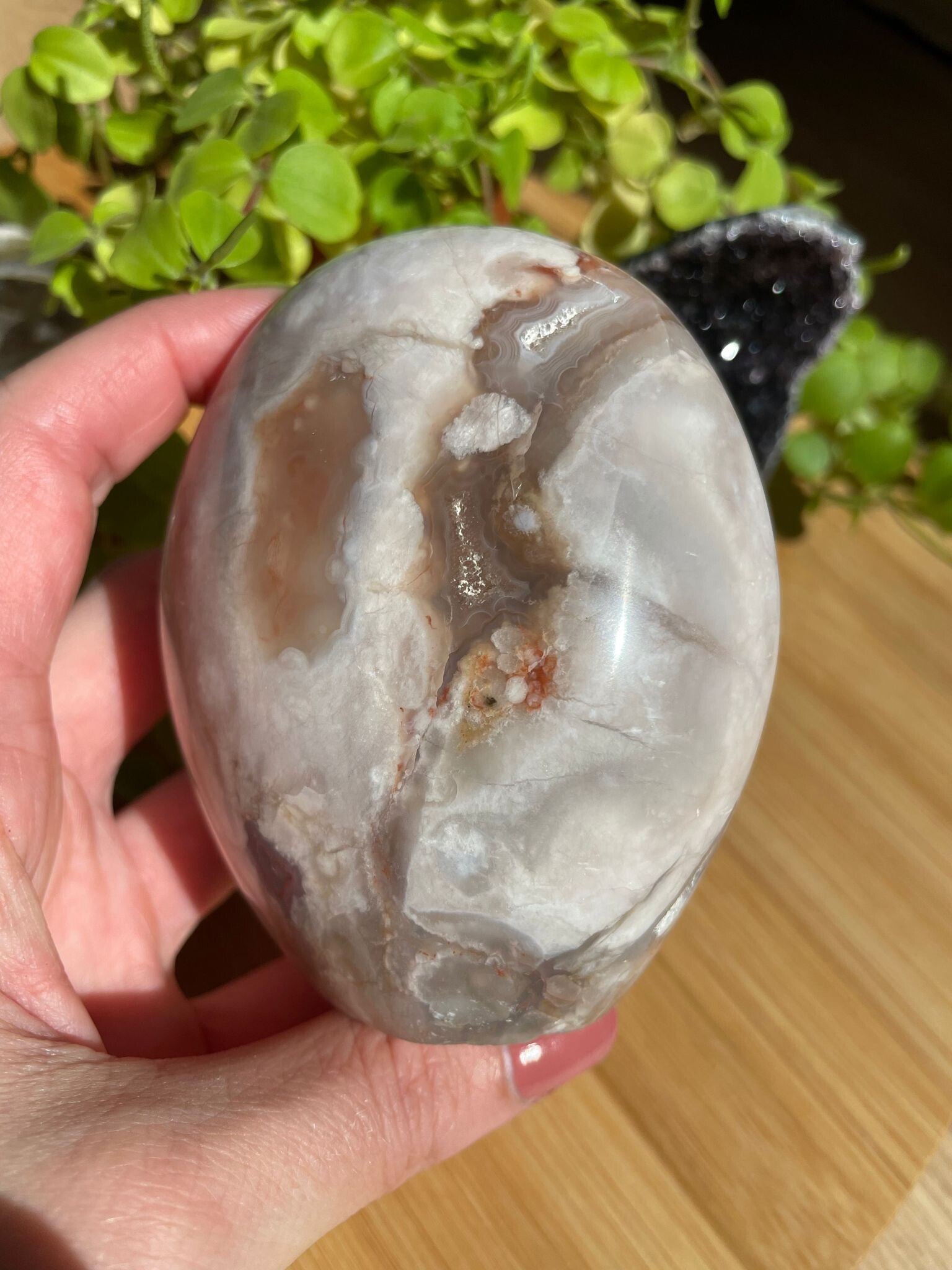 Leuk weetje: de “bloemen” in bloemagaat ontstaan door kleine insluitsels van mineralen tijdens het kristalliseren. Hierdoor heeft elke steen zijn eigen unieke patroon – geen twee zijn hetzelfde!