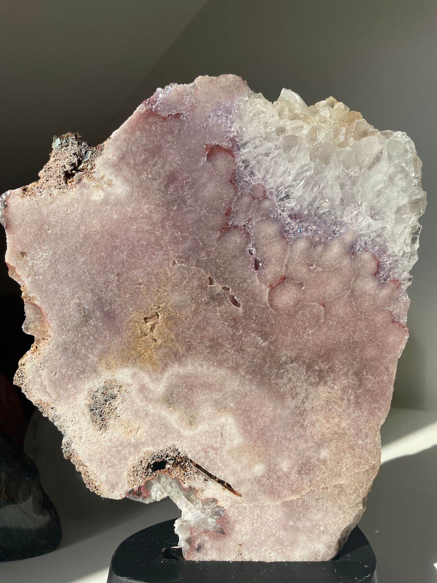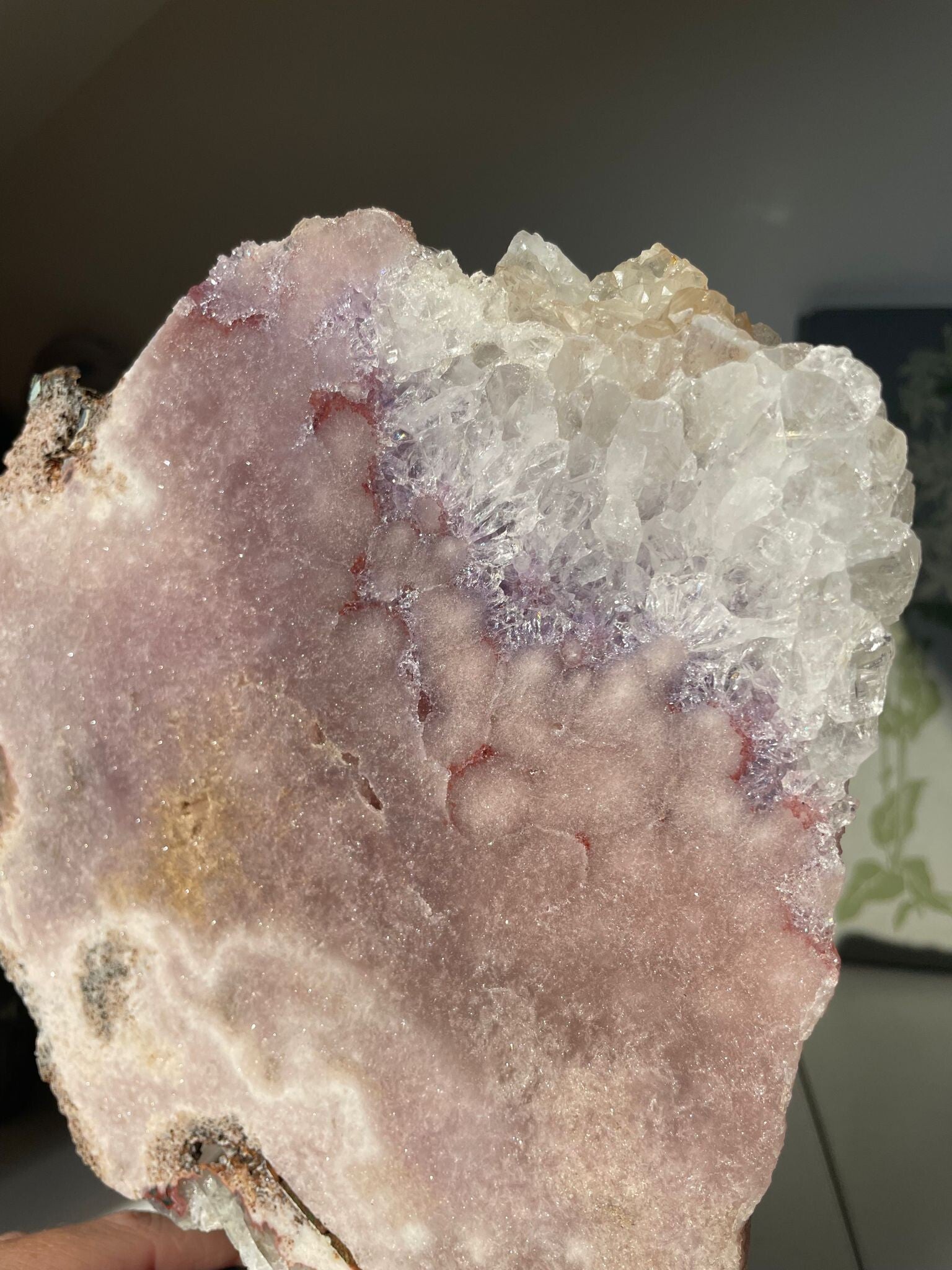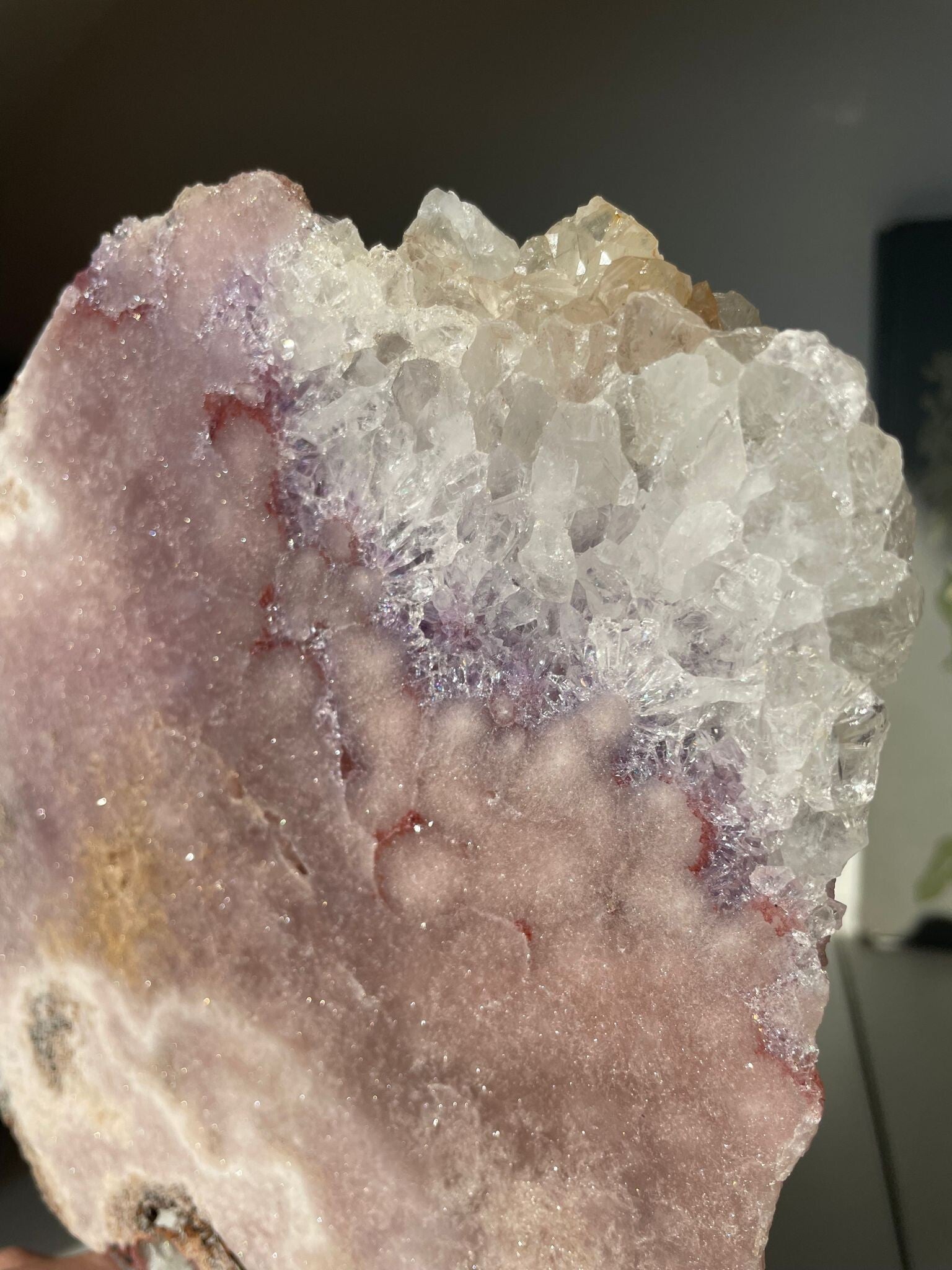 Roze amethist is een kristal dat meteen opvalt door zijn zachte, poederroze kleur en elegante, bijna suikerachtige glans. Maar laat je niet foppen door de naam: het is officieel géén amethist.