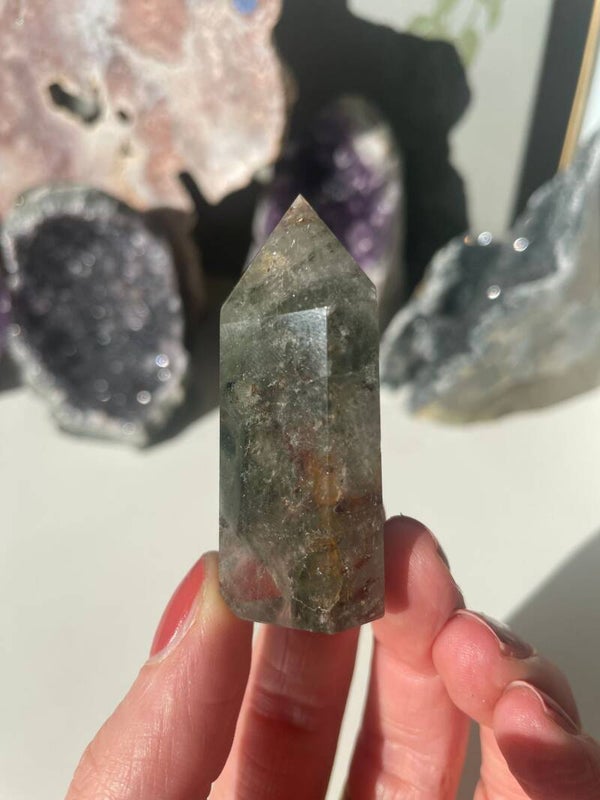 Deze bijzondere steen wordt voornamelijk gevonden in Brazilië, maar ook in landen als India en Madagaskar. Het kristal is miljoenen jaren oud en heeft door de insluitsels een intrigerende diepte gekregen, alsof je in een andere wereld kijkt.