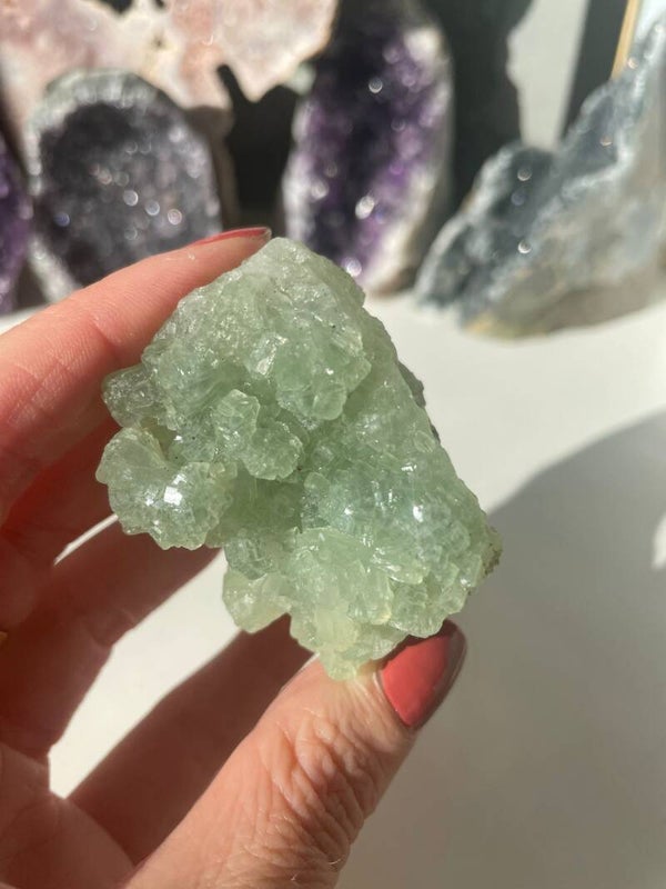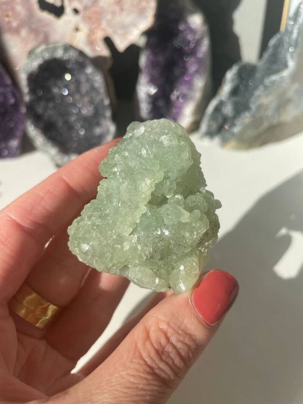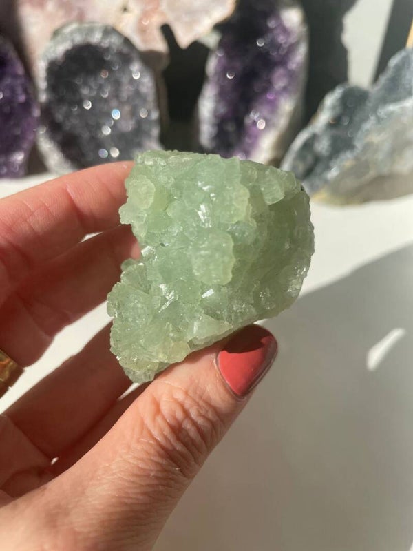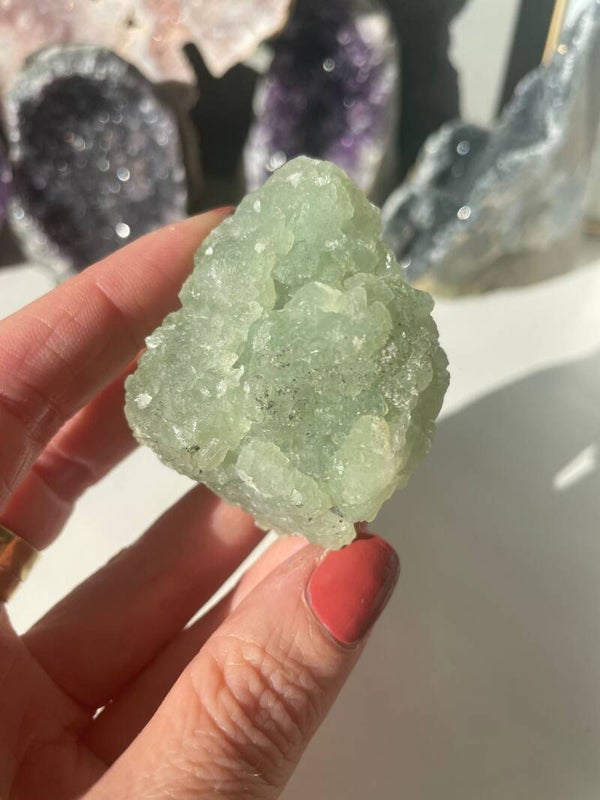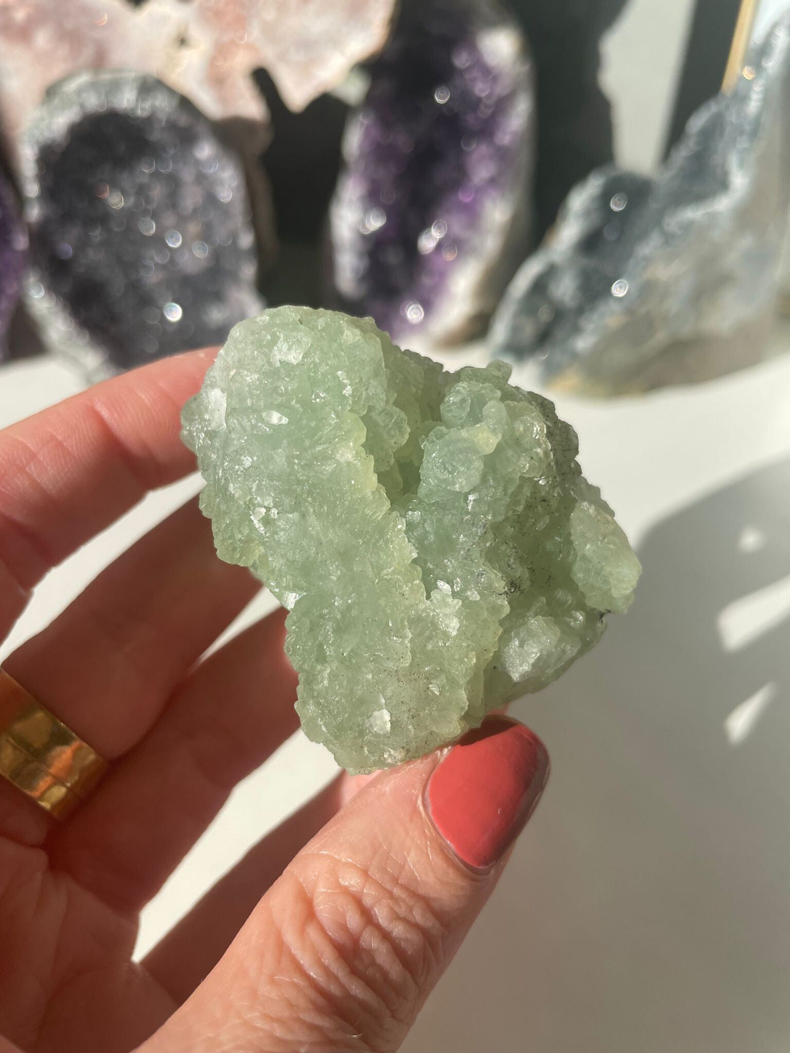 Prehniet staat bekend om zijn rustige uitstraling en wordt vaak gewaardeerd als een steen die harmonie en evenwicht kan ondersteunen. Door zijn zachte, natuurlijke kleur is hij geliefd in sieraden, trommelstenen en decoratieve stukken.