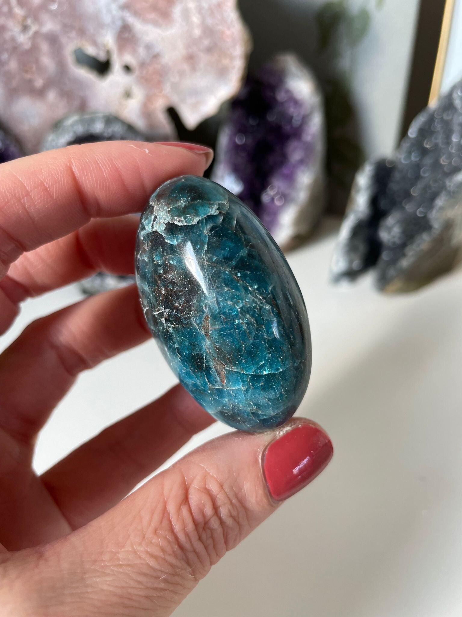 Apatiet is zo’n steen die je meteen een duwtje in de juiste richting geeft. Geen zweverig gedoe, gewoon: hup, aan de slag met die to-do’s, ideeën of creatieve plannen. Hij helpt je focussen, helder denken én durven doen. Of je nu vastzit in je hoofd of een brainstorm nodig hebt – apatiet is jouw blauwe buddy.