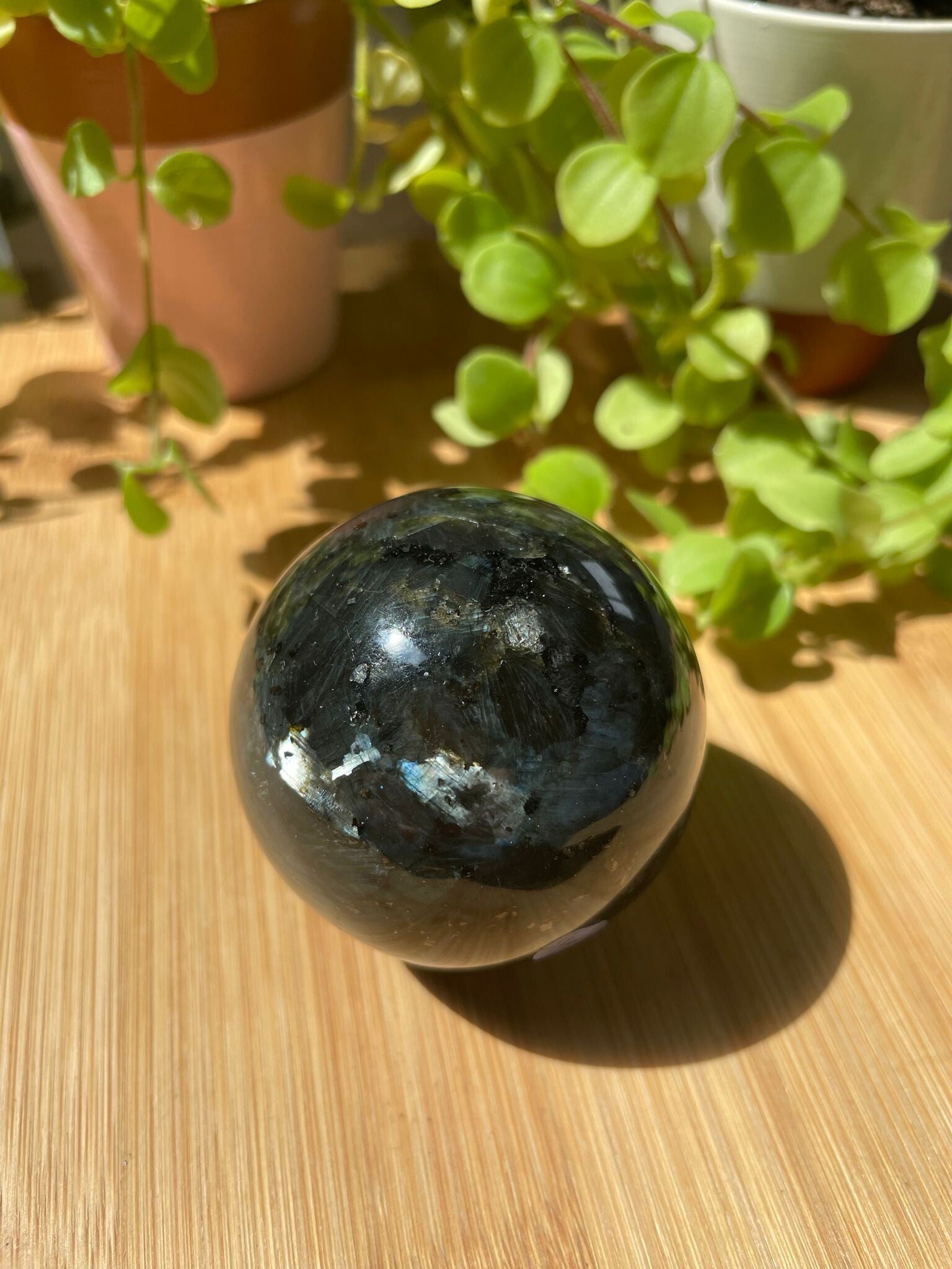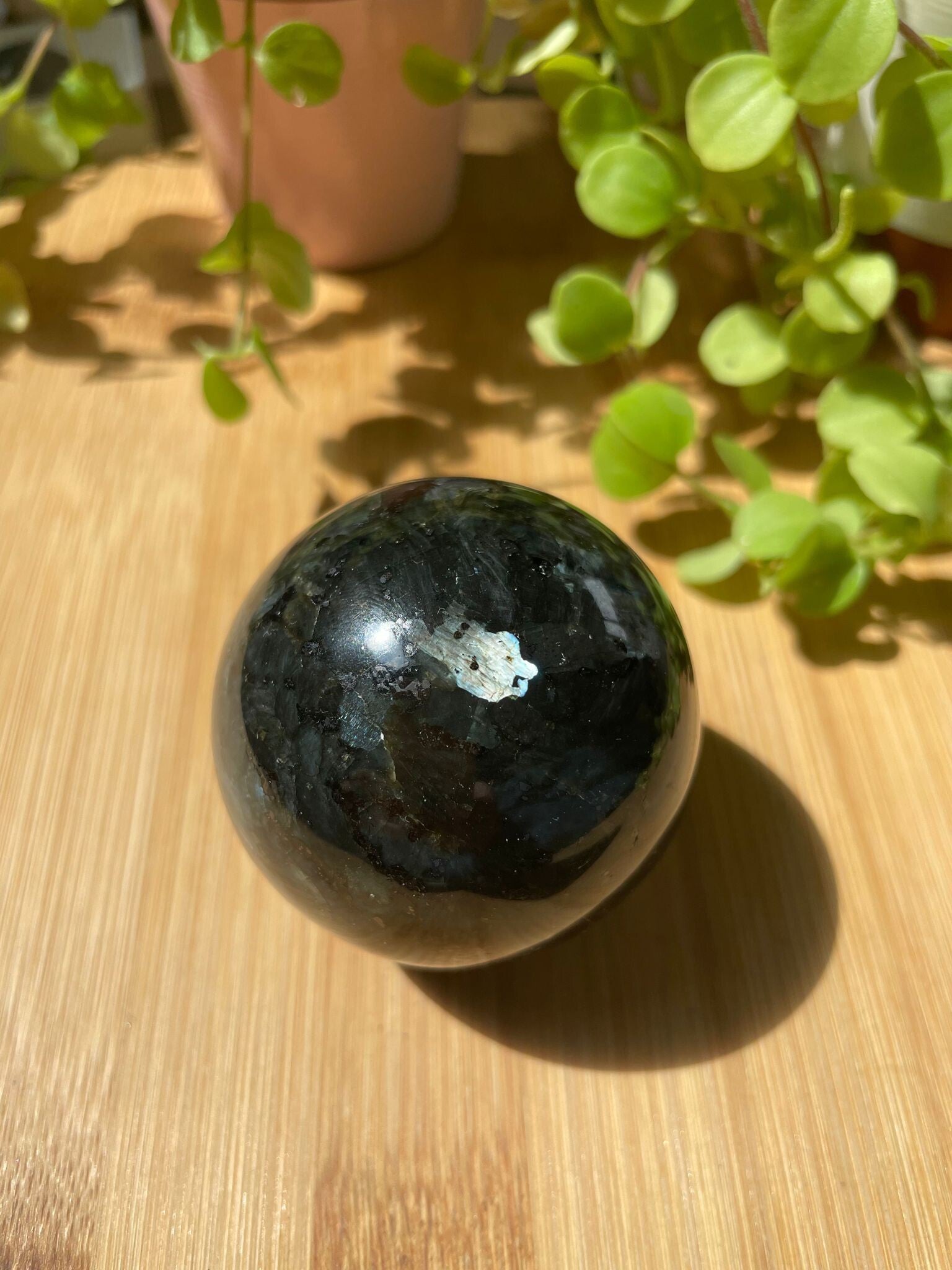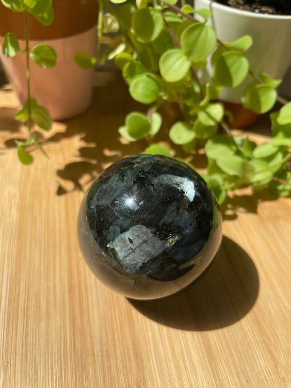 Larvikiet is een prachtige, donkergrijze tot bijna zwarte steen die bekendstaat om zijn mysterieuze glinsteringen. Wanneer je hem beweegt, zie je vaak subtiele blauwe of zilverachtige flitsjes verschijnen – een fenomeen dat ook wel schiller wordt genoemd. Het lijkt alsof de steen een klein lichtspel in zich verstopt houdt, klaar om ontdekt te worden.
