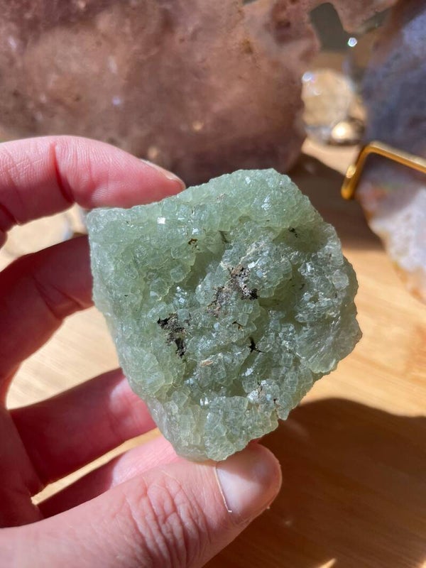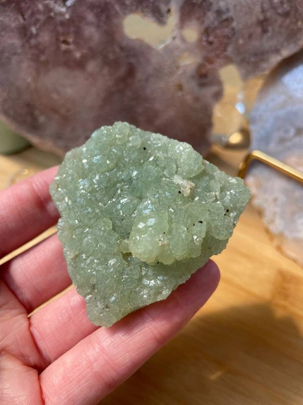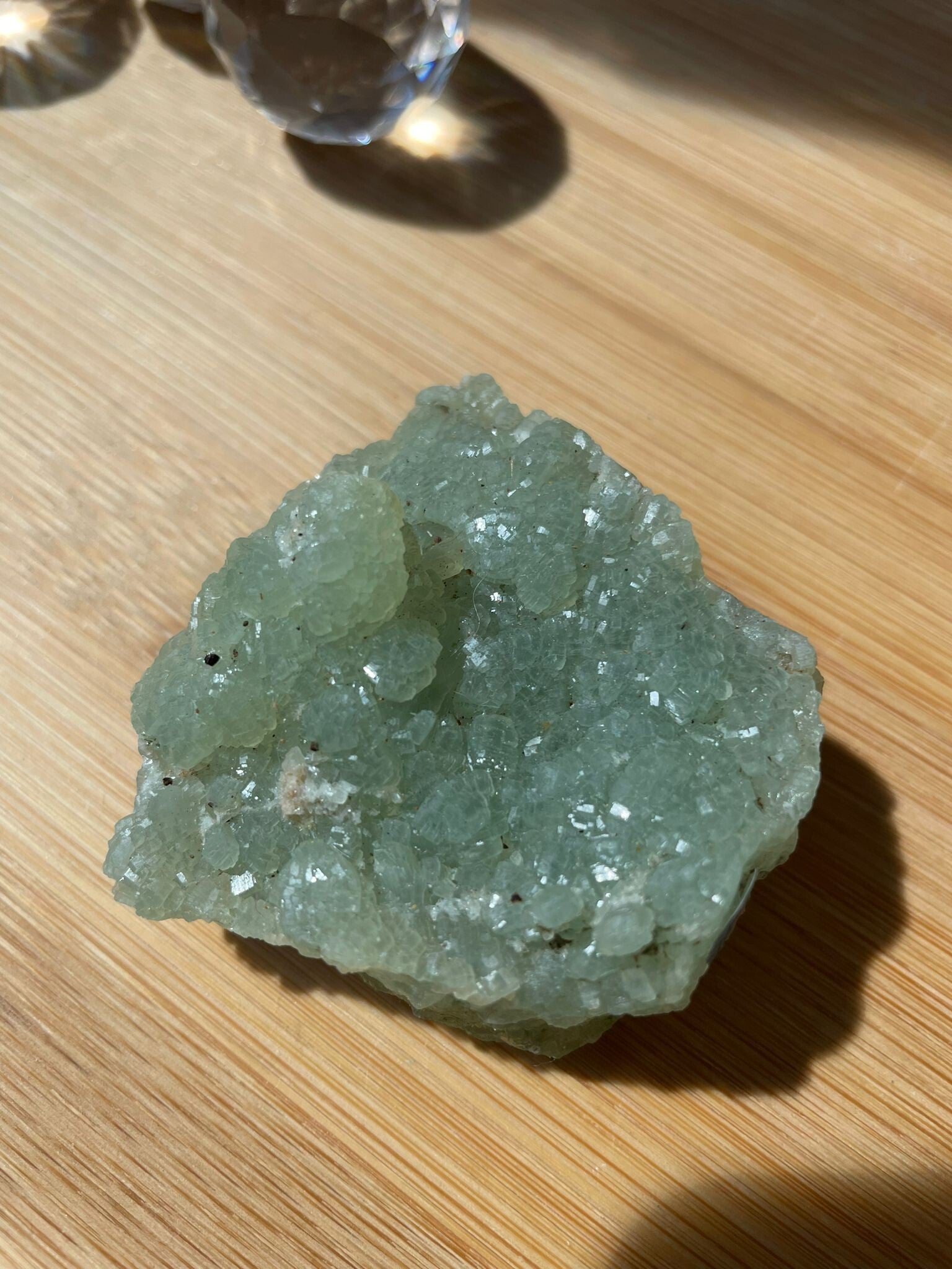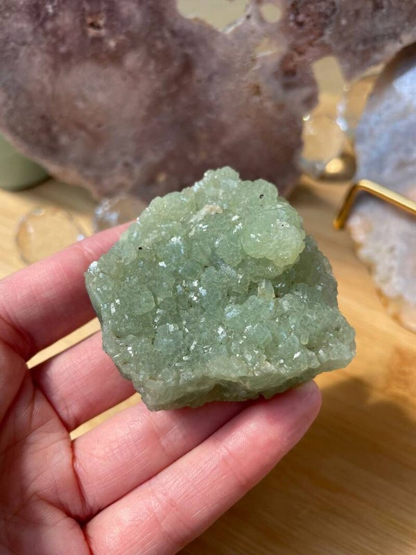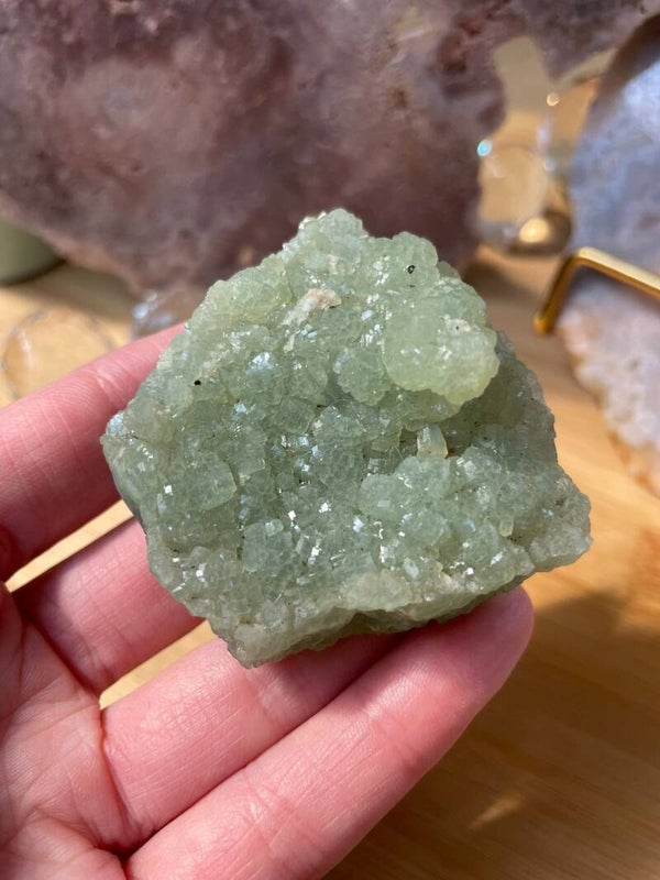 Prehniet staat bekend om zijn rustige uitstraling en wordt vaak gewaardeerd als een steen die harmonie en evenwicht kan ondersteunen. Door zijn zachte, natuurlijke kleur is hij geliefd in sieraden, trommelstenen en decoratieve stukken.