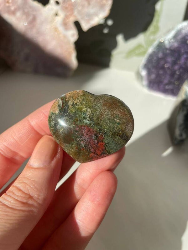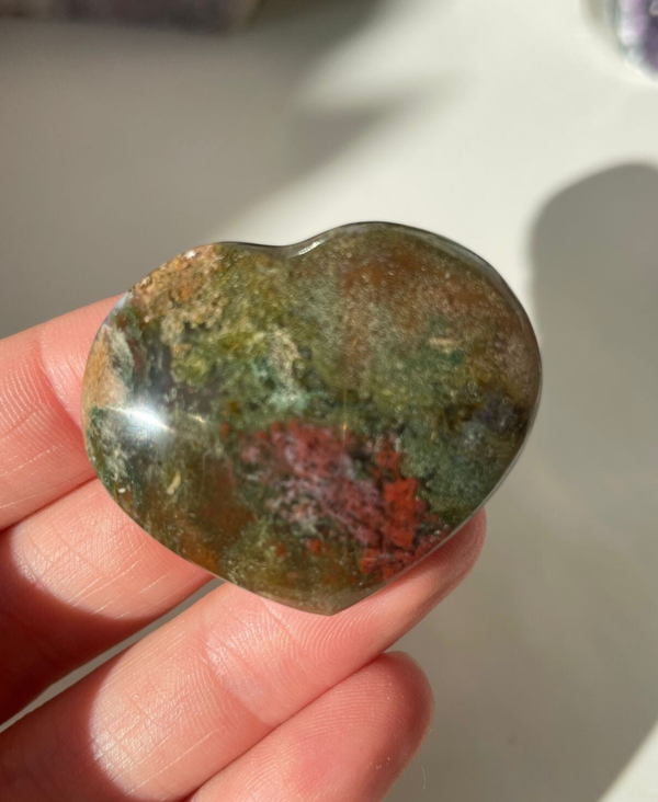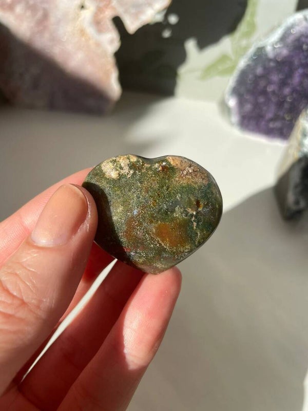 Oceaan jaspis valt op door z’n mooie mix van blauwe, groene, bruine en soms rode tinten. De natuurlijke patronen lijken wel op golven, koraalriffen of een onderwaterlandschap – een echte eyecatcher voor wie van natuur in al haar kleuren houdt. Elk stukje is uniek, waardoor geen steen hetzelfde is.