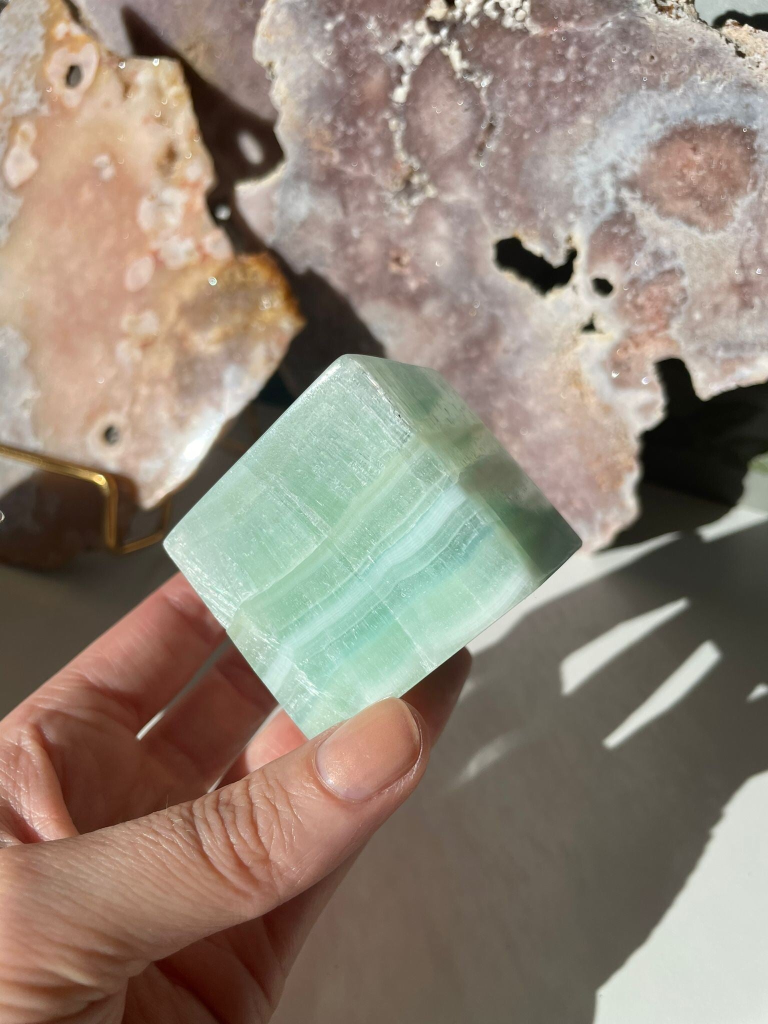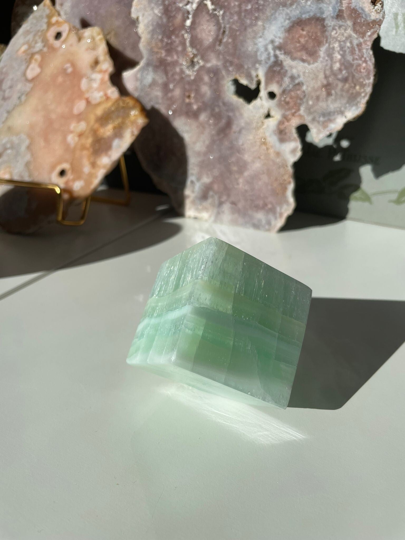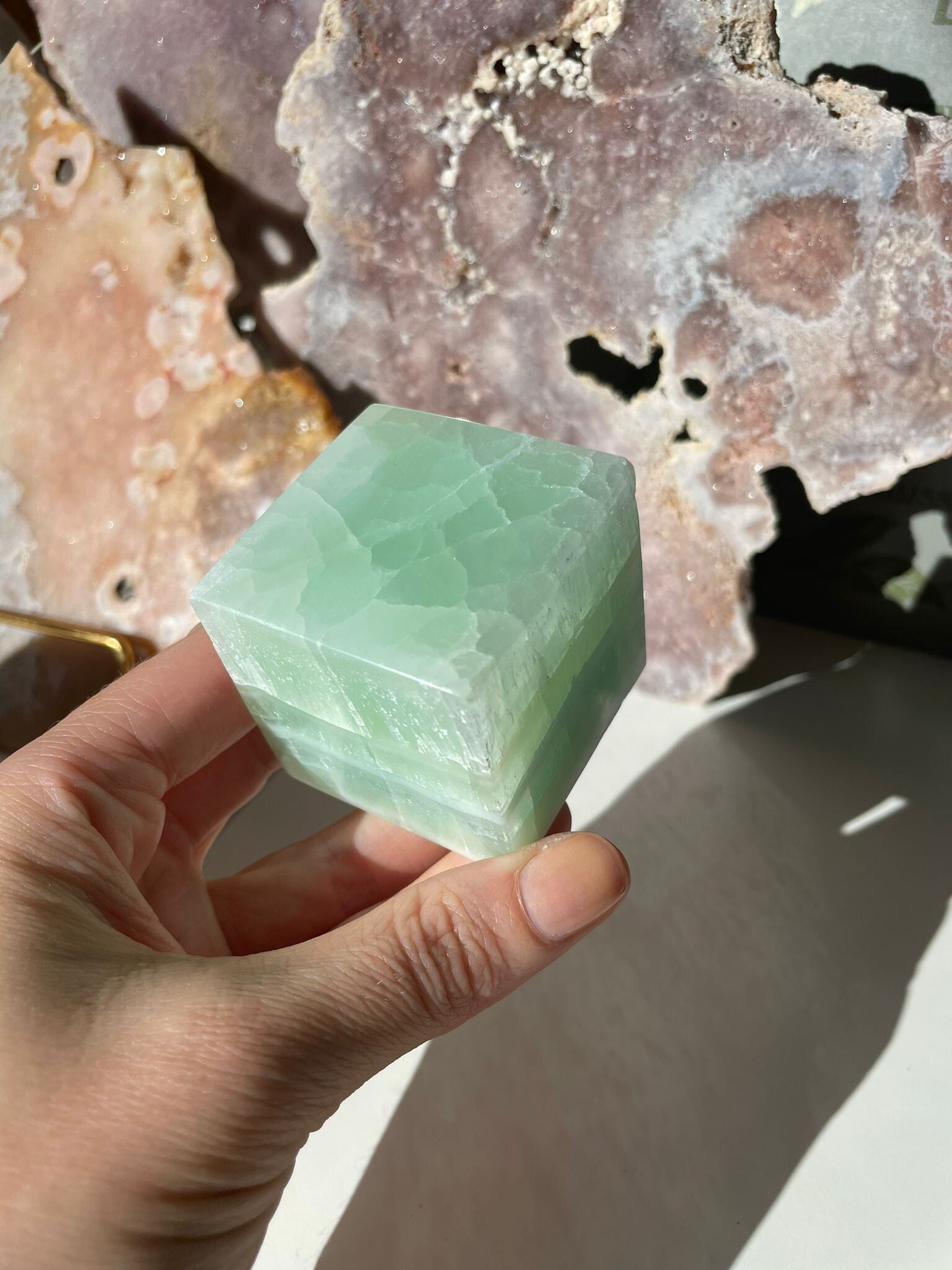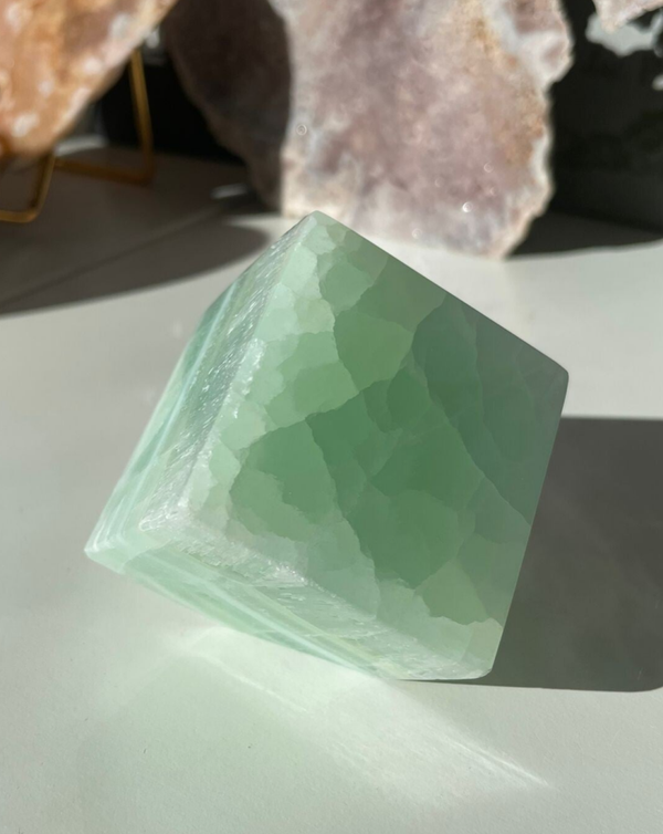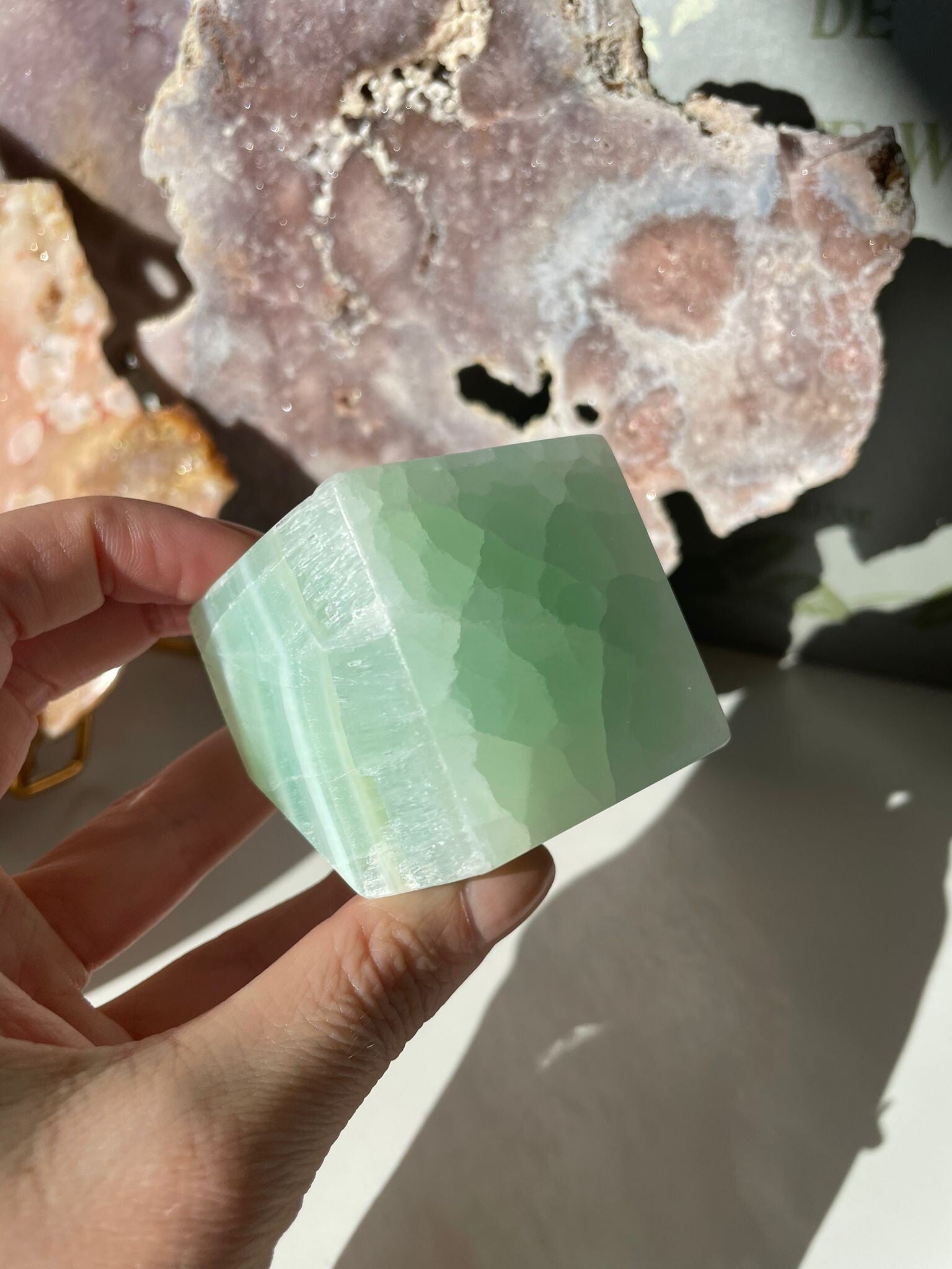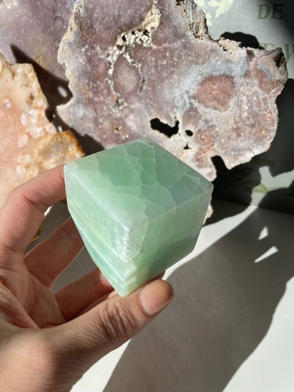 Leuk weetje: Pistache Calciet is familie van de geel-, oranje- en witte calcietsoorten. De groene tint is zeldzamer en daardoor een mooie verrassing van de natuur!