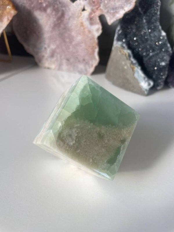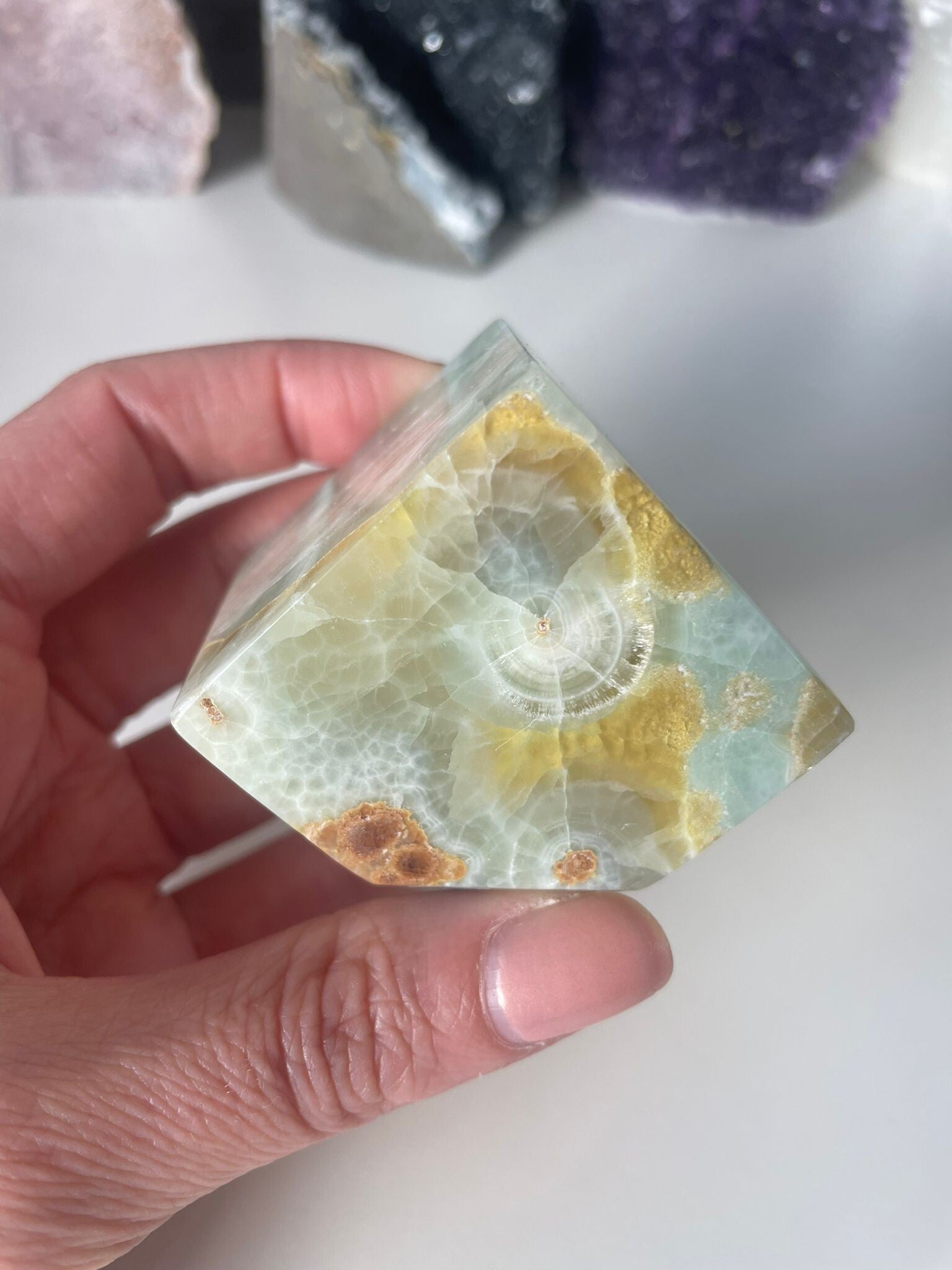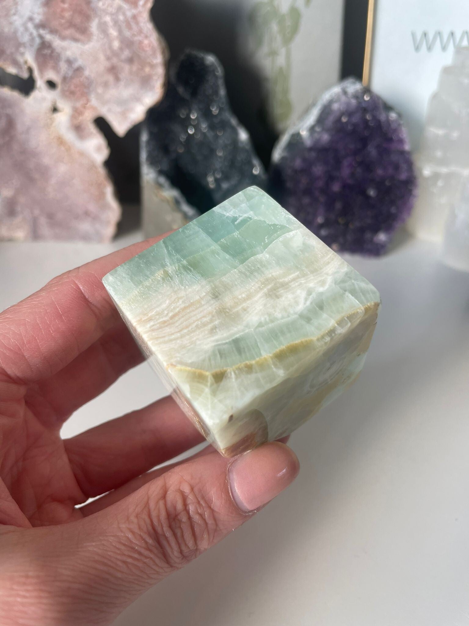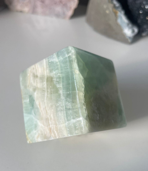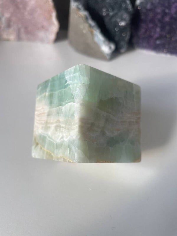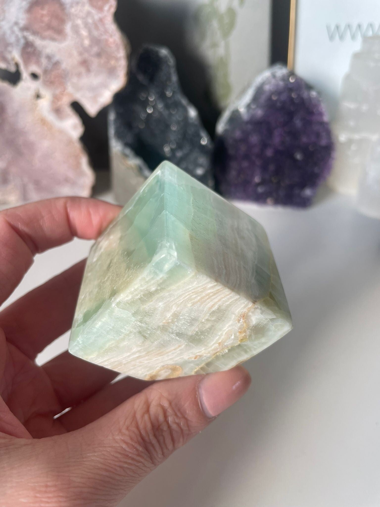 Leuk weetje: Pistache Calciet is familie van de geel-, oranje- en witte calcietsoorten. De groene tint is zeldzamer en daardoor een mooie verrassing van de natuur!