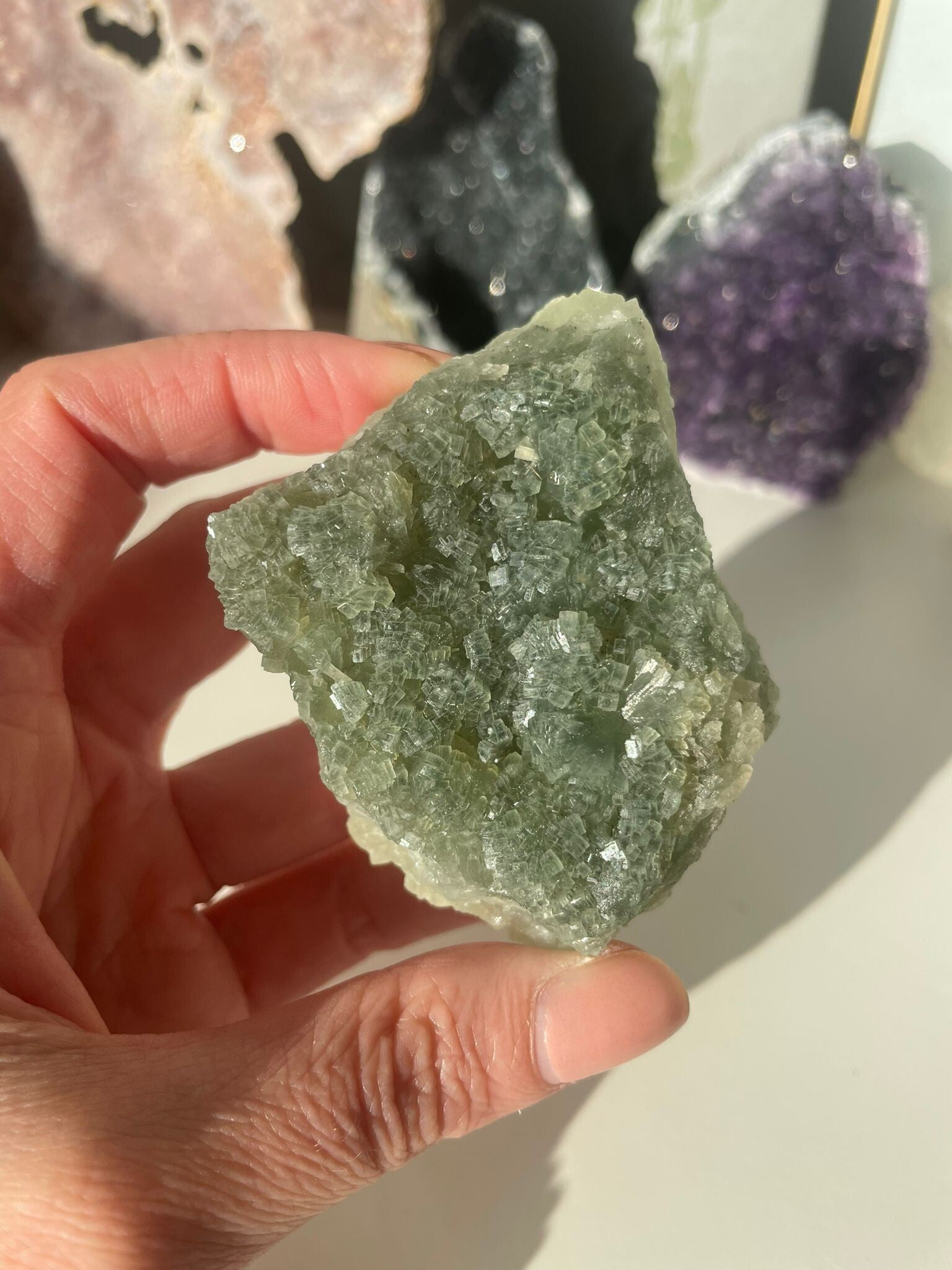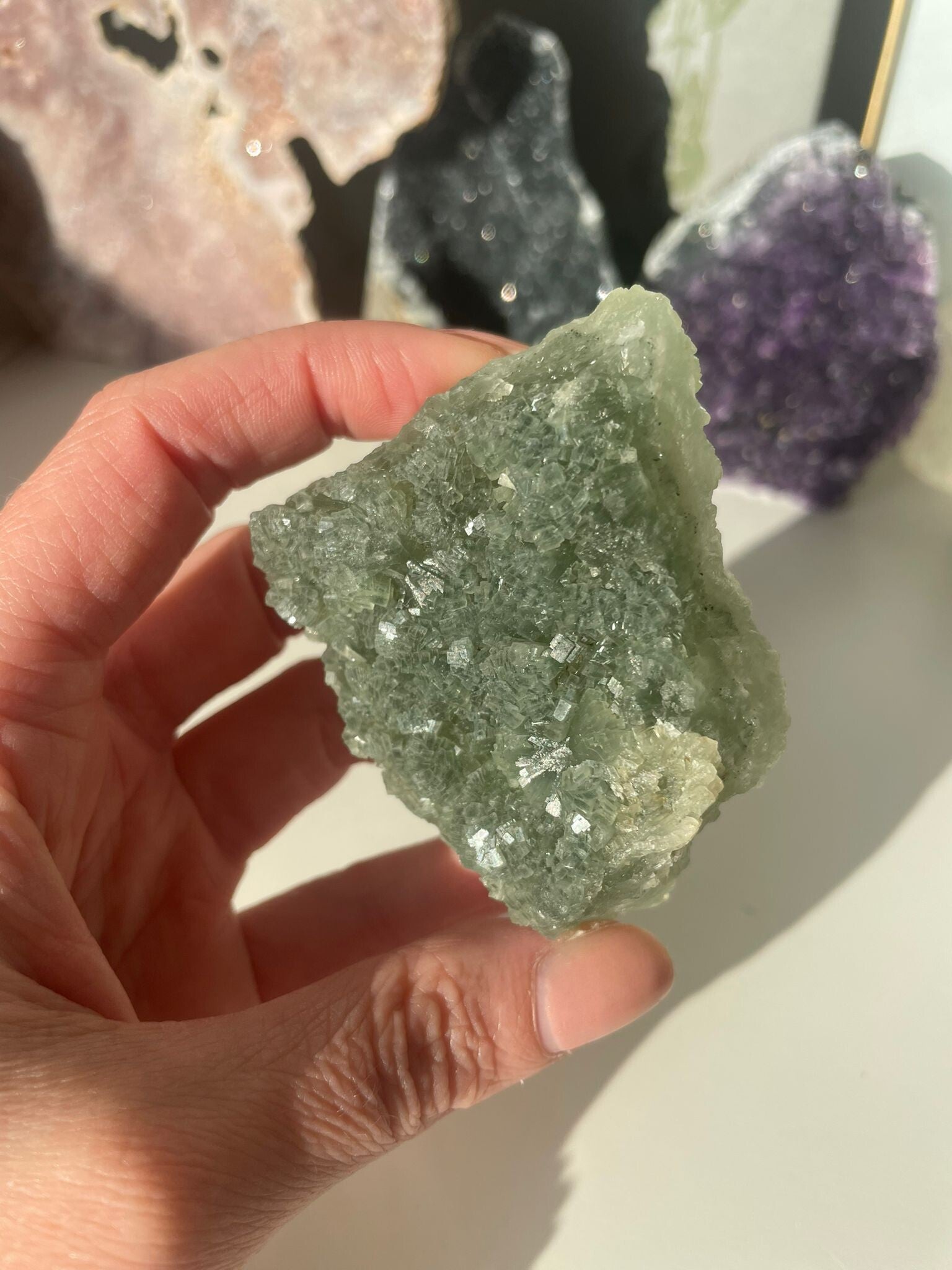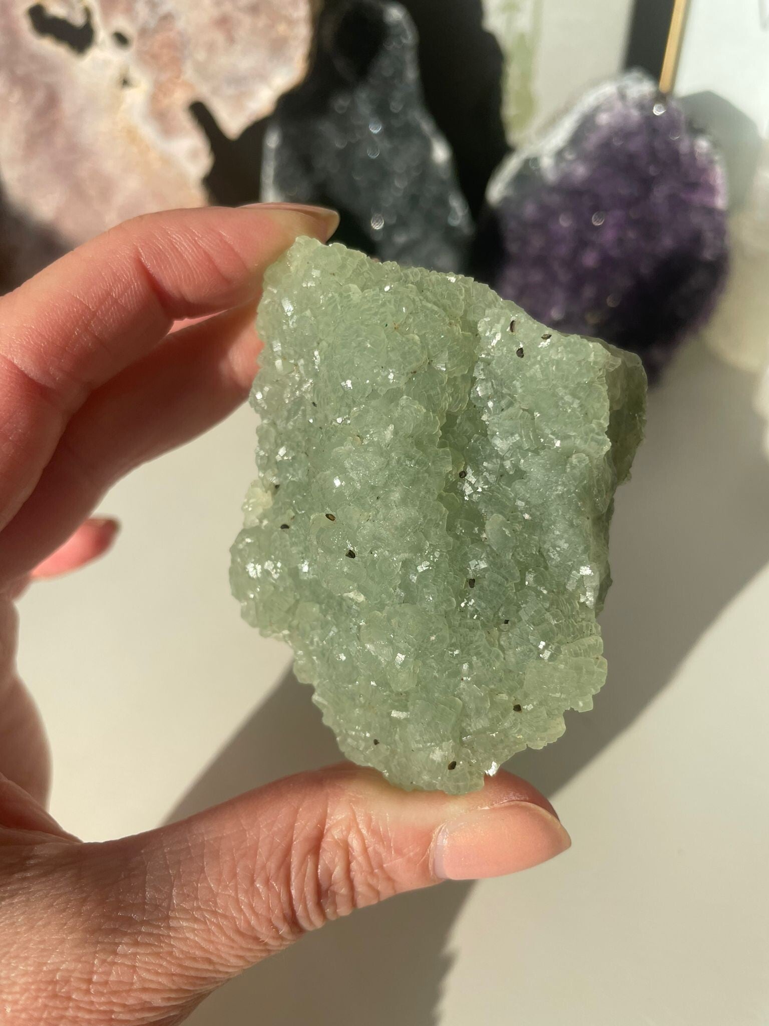 Prehniet staat bekend om zijn rustige uitstraling en wordt vaak gewaardeerd als een steen die harmonie en evenwicht kan ondersteunen. Door zijn zachte, natuurlijke kleur is hij geliefd in sieraden, trommelstenen en decoratieve stukken.
