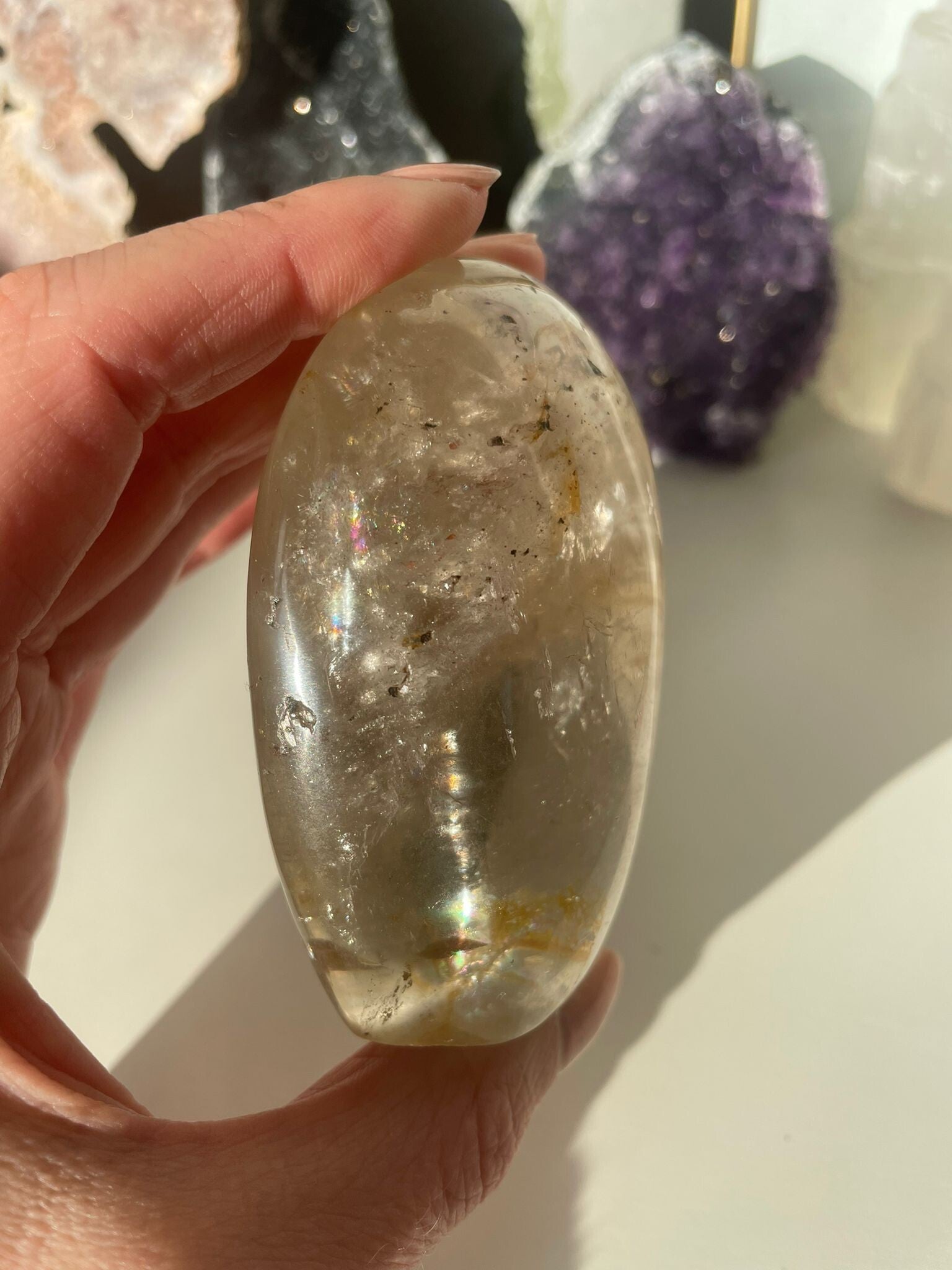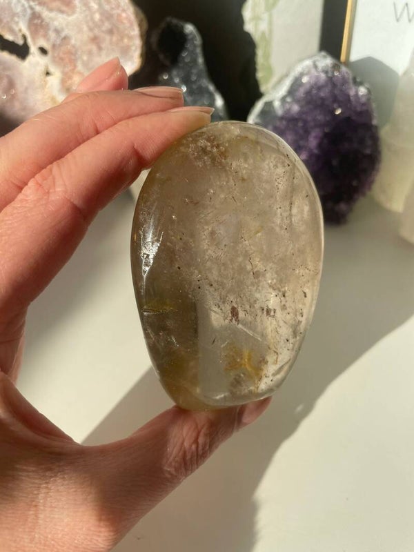 Golden Healer is een zachte, goudgele variant van kwarts die bekendstaat om z’n warme en opbeurende uitstraling. De kleur komt van natuurlijke ijzerinsluitingen en geeft de steen een heldere, zonnige gloed. Denk aan een zachte straal licht die energie en helderheid terugbrengt, stap voor stap.