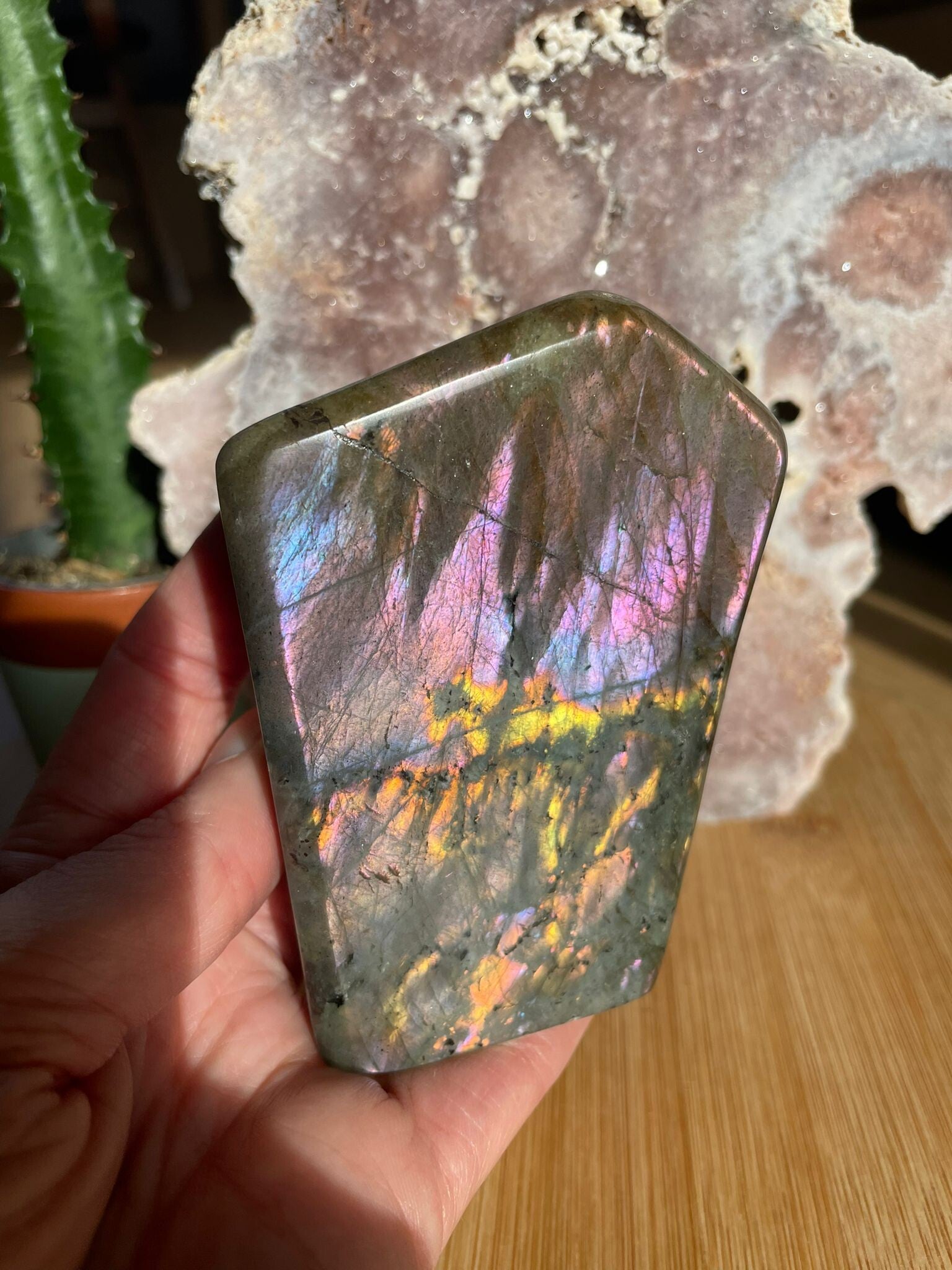 AKA: Mermaid Labradoriet, Mermaid Labradorite, Unicorn Labradoriet, Unicorn Labradorite, Paarse Labradoriet, Lila Labradoriet