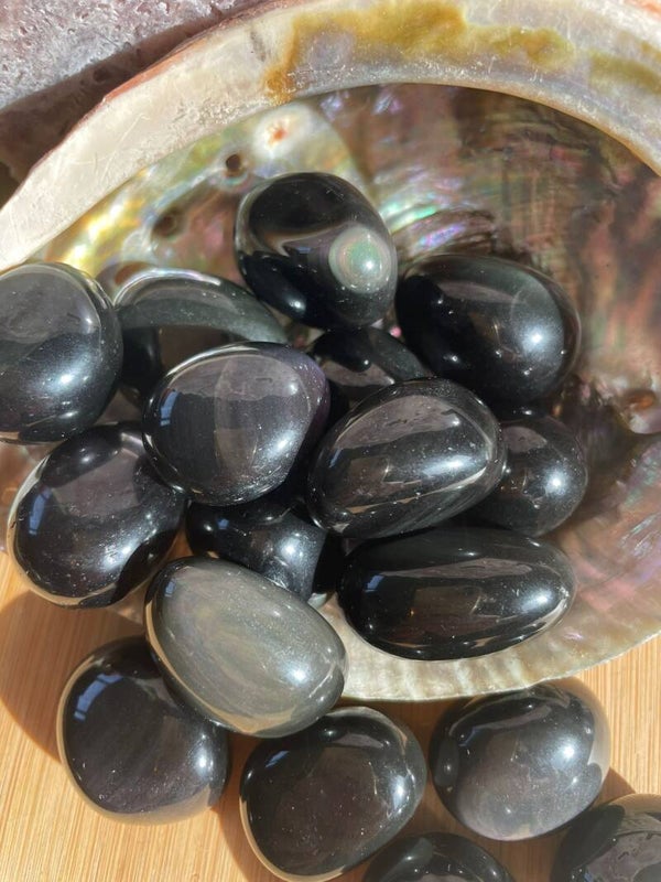 Regenboog obsidiaan is misschien wel de meest betoverende variant van obsidiaan. Op het eerste gezicht lijkt de steen diepzwart, maar zodra er licht op valt, verschijnen er glinsterende kleuren: van groen en paars tot goud en roze. Het lijkt wel alsof er een geheime regenboog in verstopt zit, die je alleen ziet als je goed kijkt.