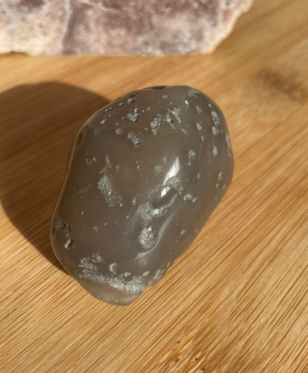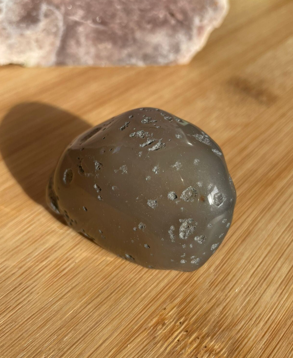 Deze steen staat bekend om zijn rustgevende en reinigende energie. Hij helpt je hoofd leeg te maken, gevoelens te kalmeren en helderheid te vinden, alsof je naar een kabbelend stroompje kijkt op een warme zomerdag. Wateragaat is perfect wanneer je even wilt ontspannen of je gedachten wilt laten stromen zonder te blijven hangen.