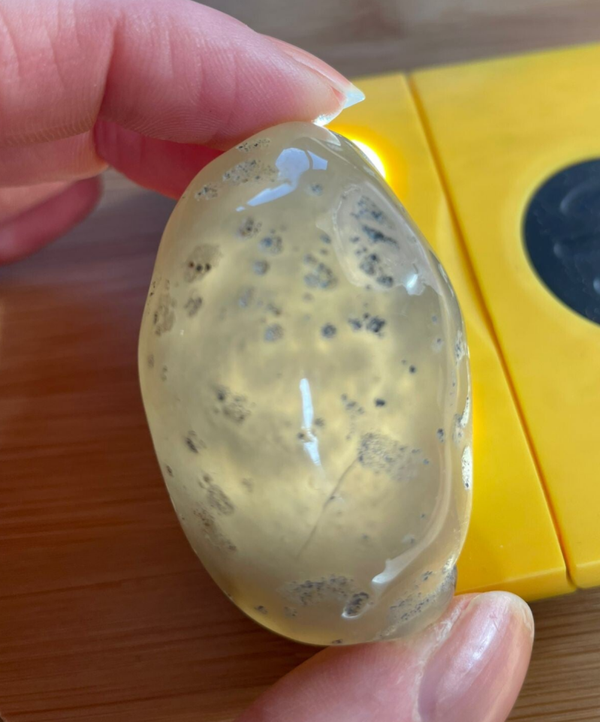 Leuk weetje: Het water in deze agaat kan miljoenen jaren oud zijn en gevangen zijn tijdens het kristallisatieproces. Sommige agaatjes zijn echter poreus en worden bij de slijperij in bakken water gelegd om weer met water gevuld te raken.