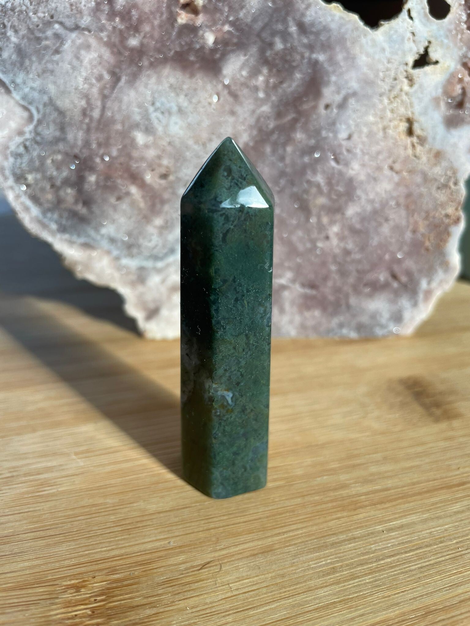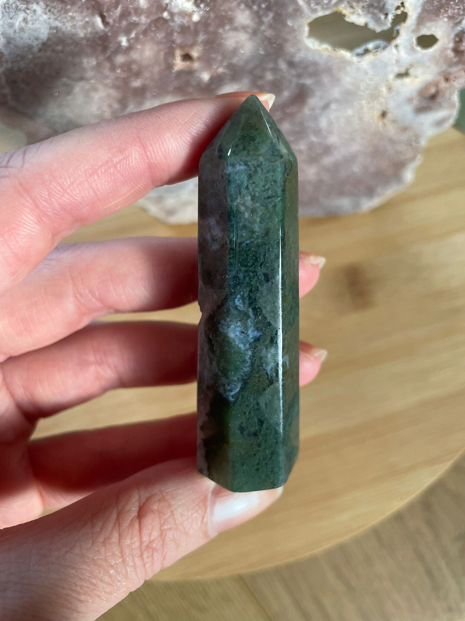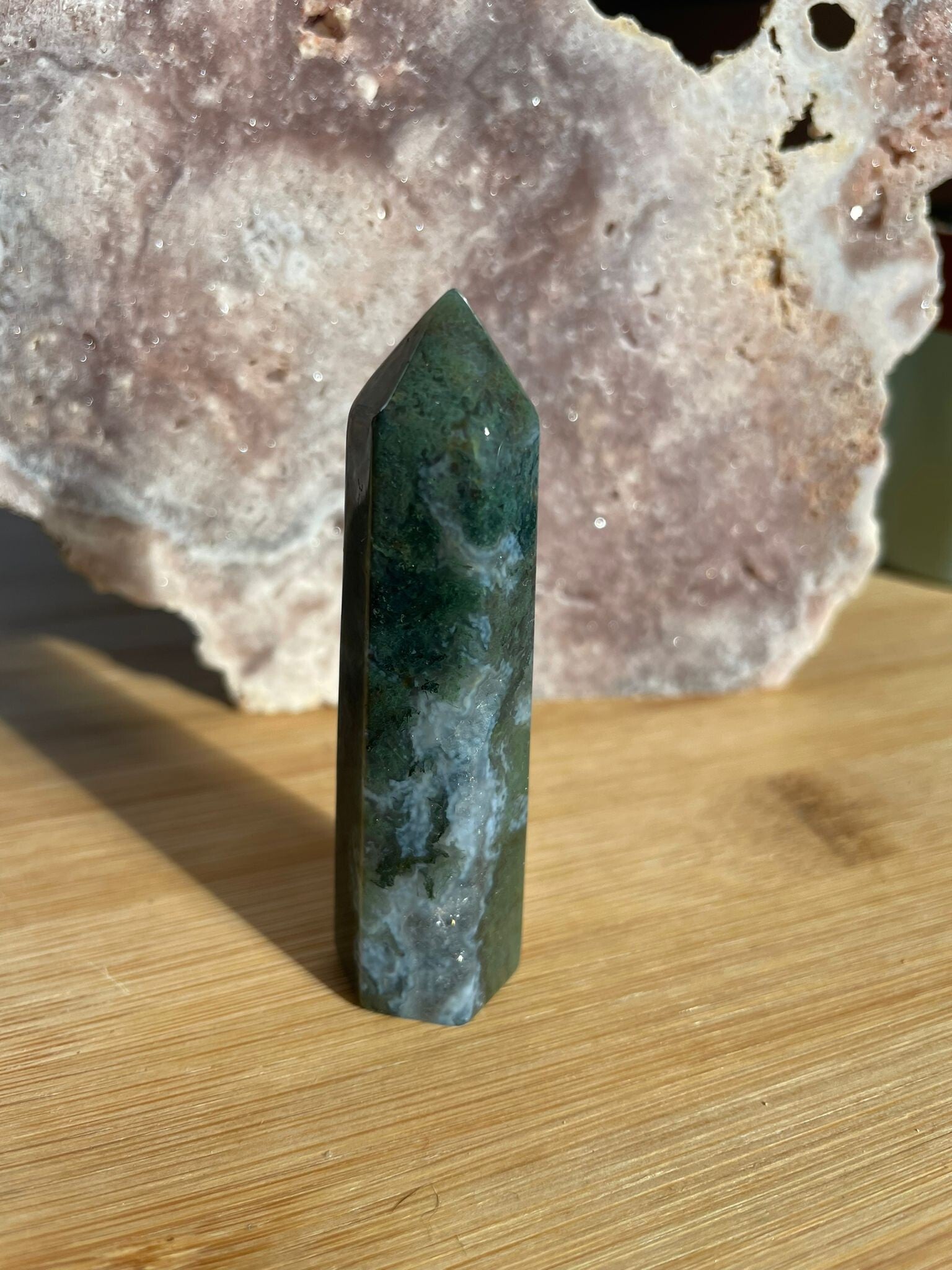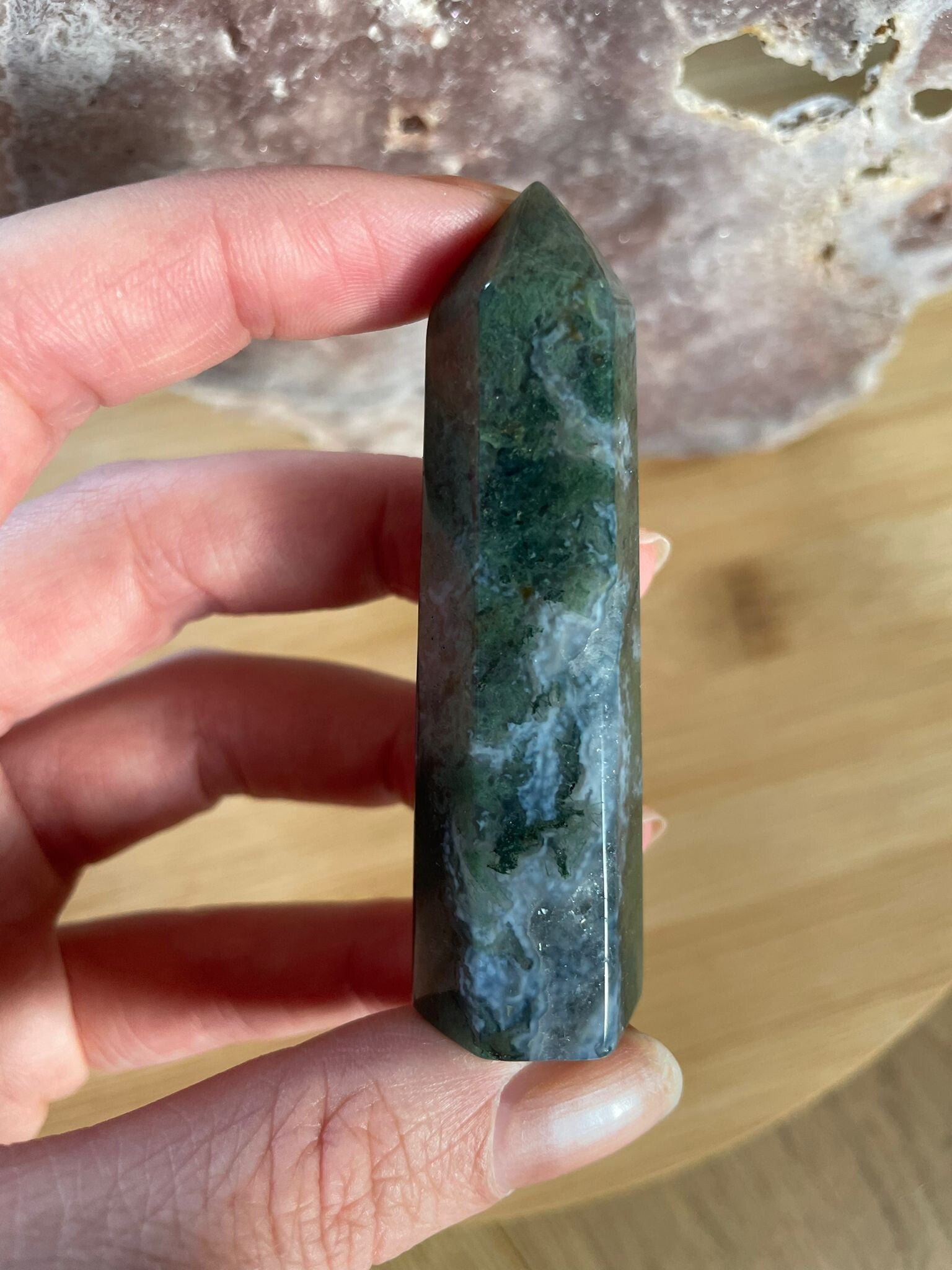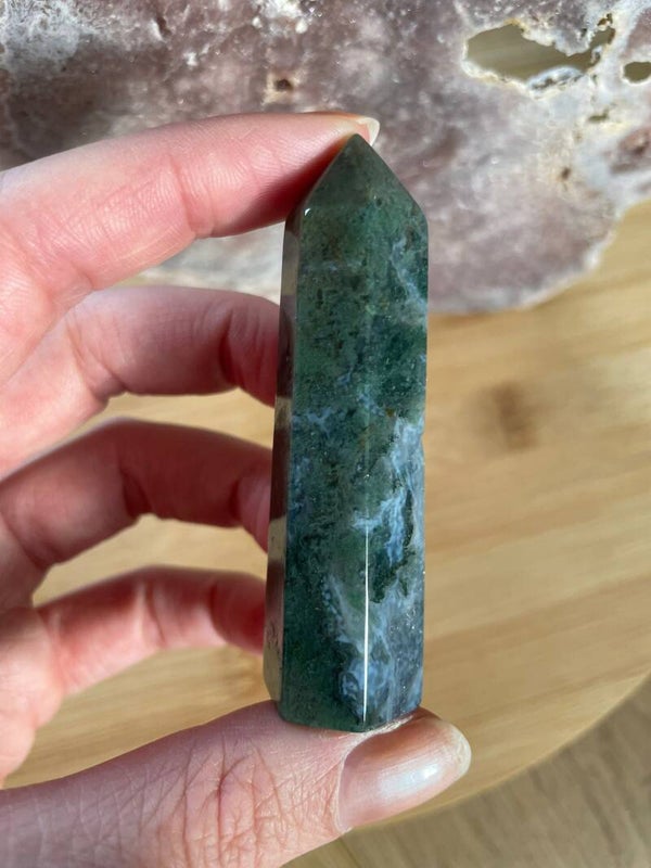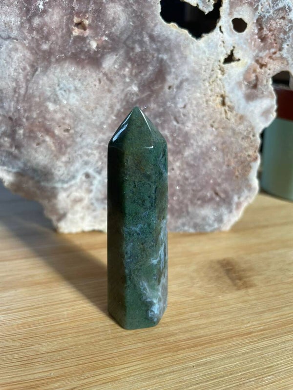 Mosagaat is een prachtige variëteit van agaat die eruitziet alsof er kleine mosjes of takjes in de steen zijn gegroeid. Het geheim zit in de insluitsels van mineralen, meestal groen van kleur, die doorzichtig of wit kwarts doorkruisen. Daardoor lijkt elke steen een mini-landschapje op zichzelf.