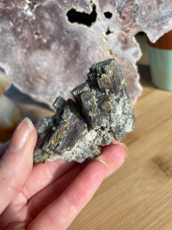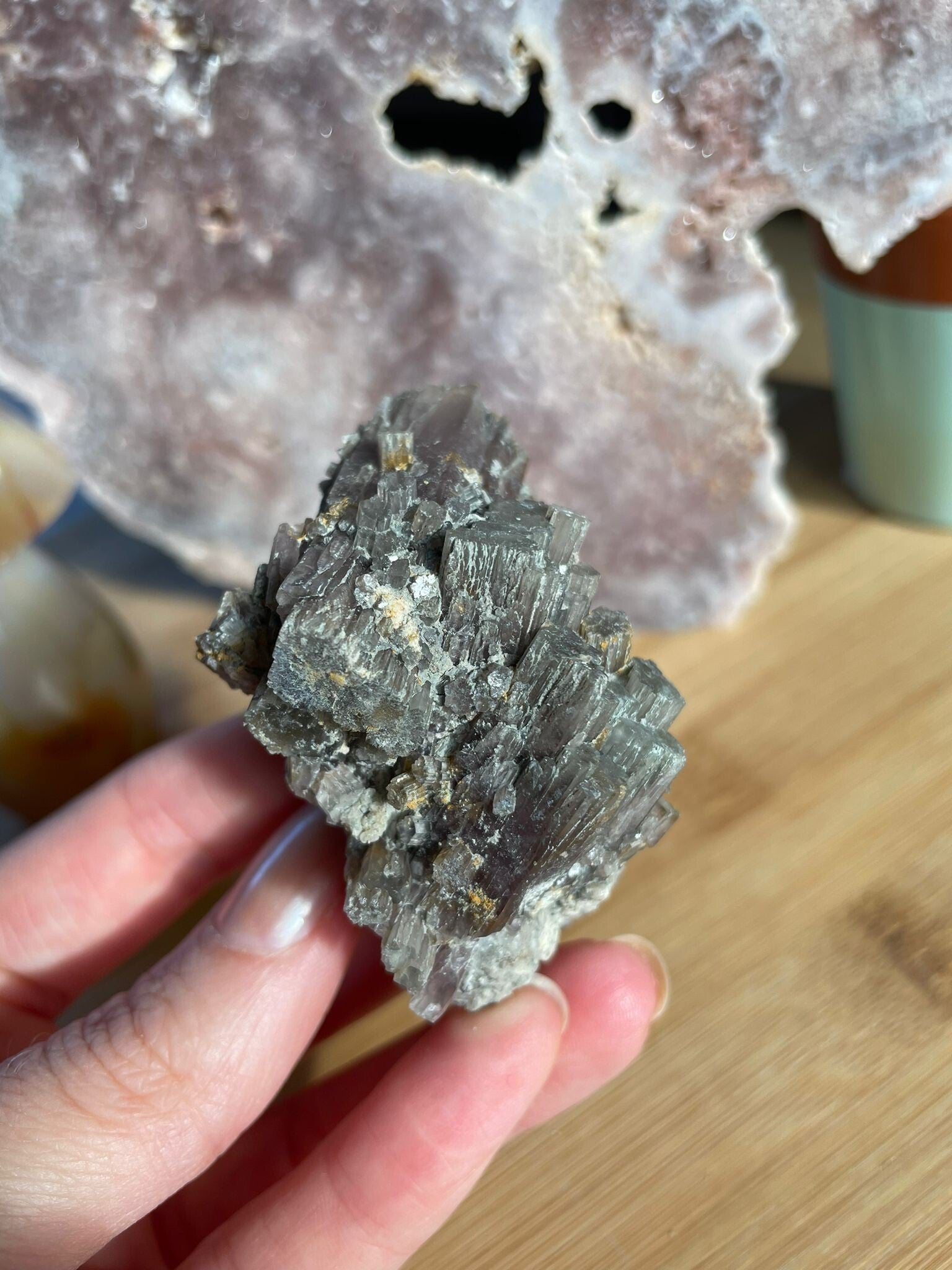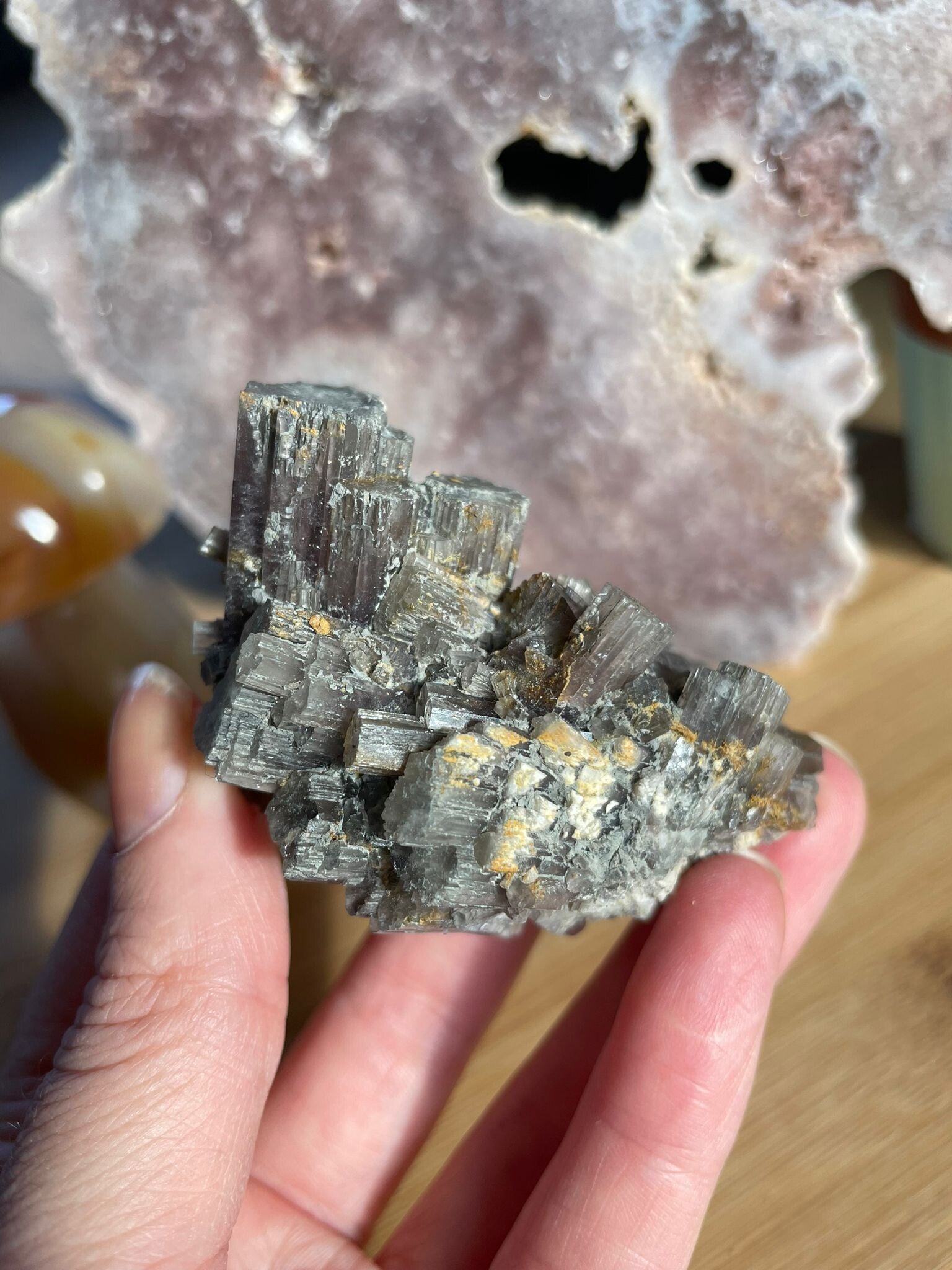 Paarse Aragoniet is zo’n steen waar je meteen even bij stil blijft staan. Met haar bijzondere kleur, variërend van lavendel tot dieper paars, straalt ze iets kalms en mysterieus uit. Deze zeldzame variant van aragoniet wordt vooral gevonden in Spanje en China, waar ze in grotten en kalkrijke gesteenten groeit.