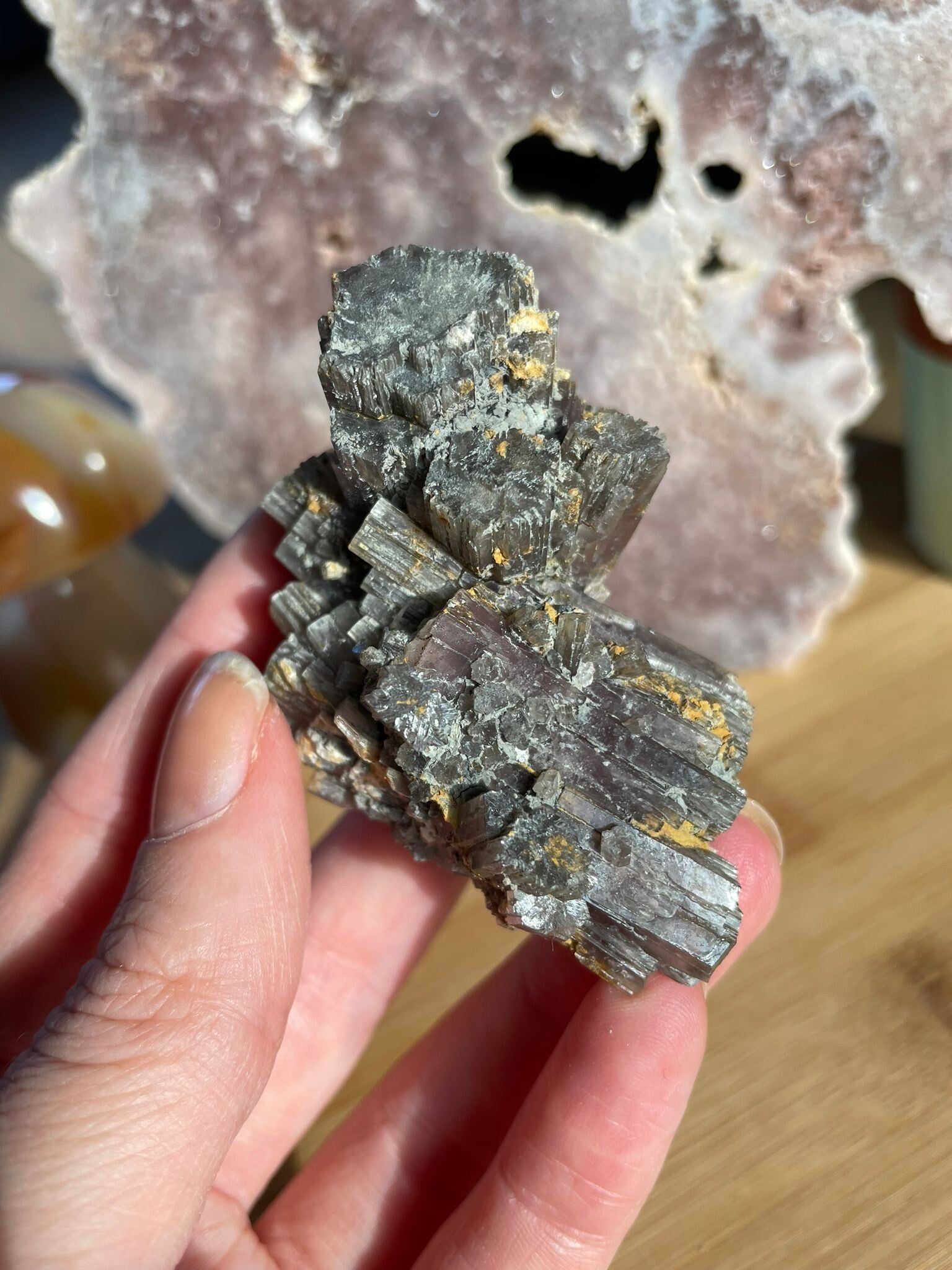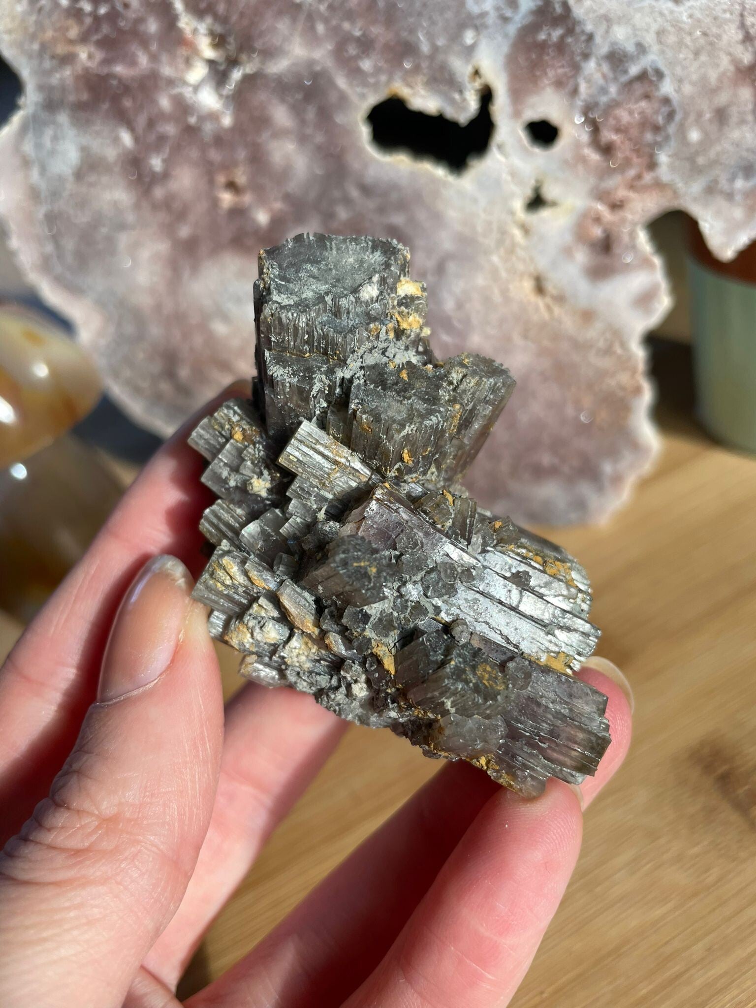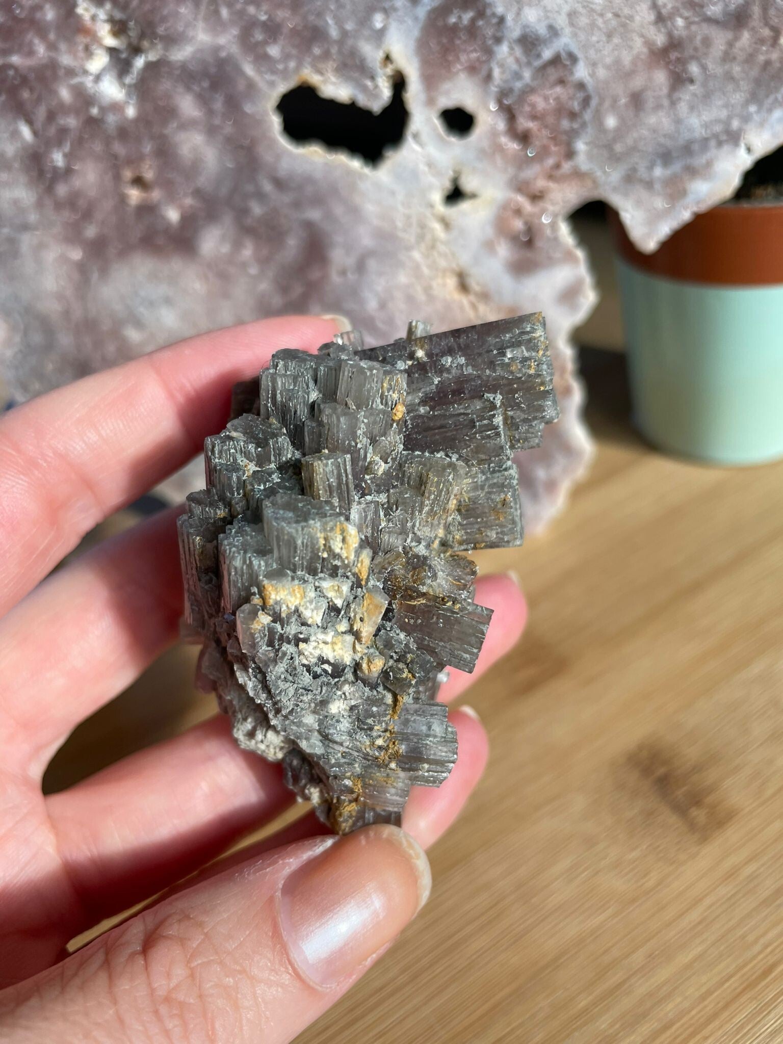 Paarse Aragoniet is zo’n steen waar je meteen even bij stil blijft staan. Met haar bijzondere kleur, variërend van lavendel tot dieper paars, straalt ze iets kalms en mysterieus uit. Deze zeldzame variant van aragoniet wordt vooral gevonden in Spanje en China, waar ze in grotten en kalkrijke gesteenten groeit.