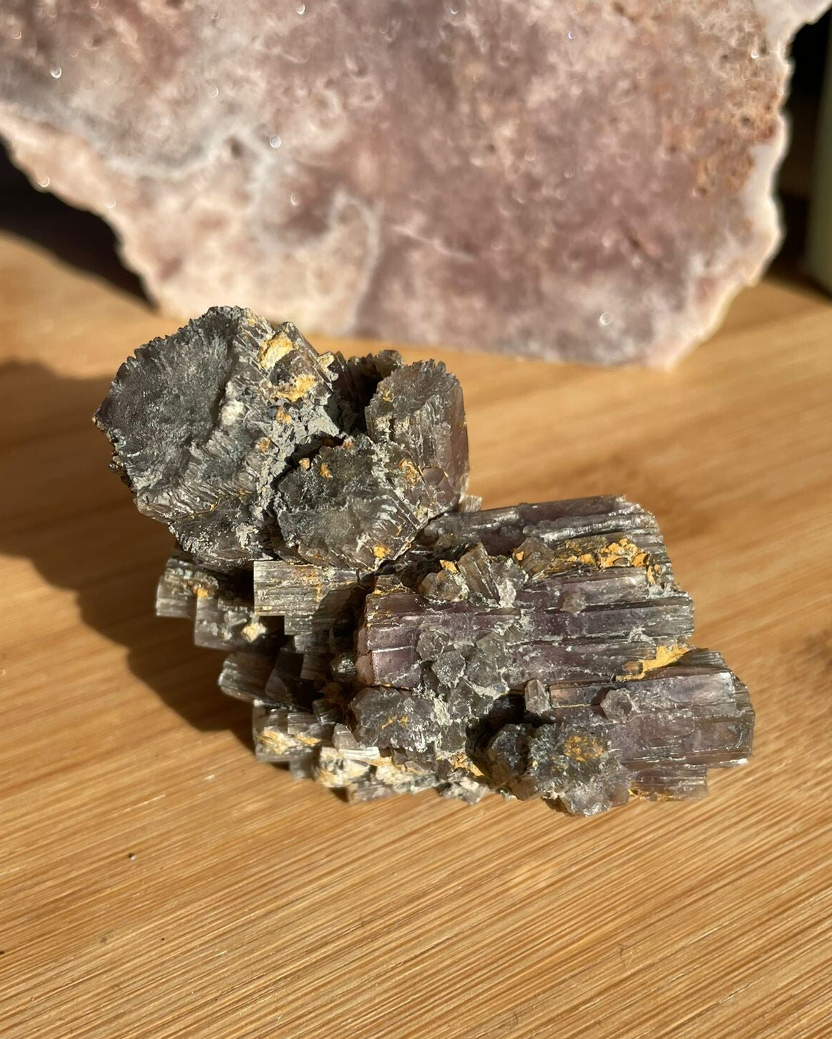Leuk weetje: De paarse kleur van deze aragoniet ontstaat door sporen van strontium in het mineraal, een natuurlijke kleurmaker die voor die magische paarse tint zorgt!
