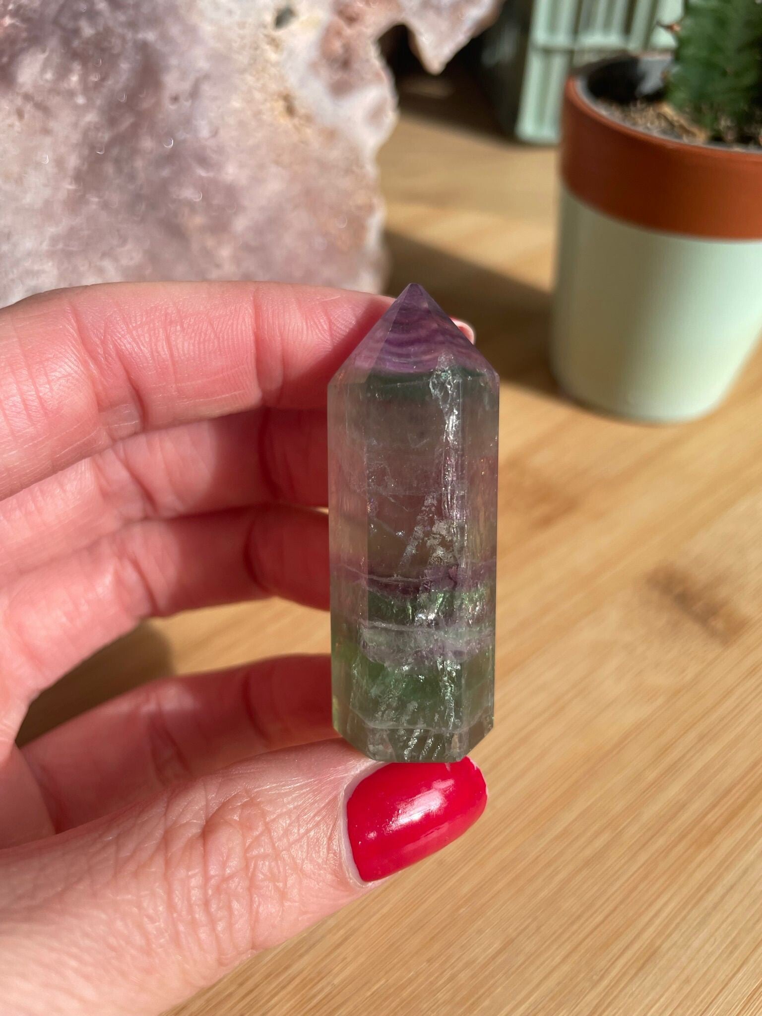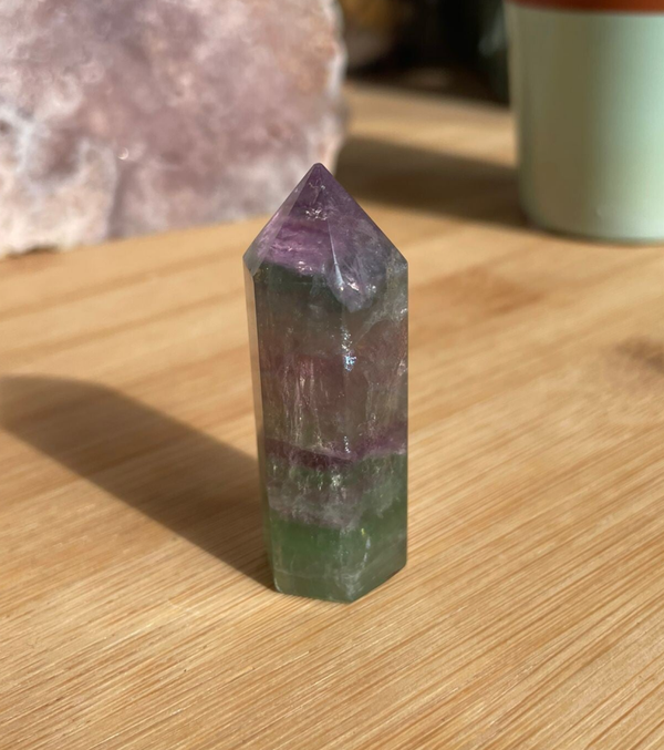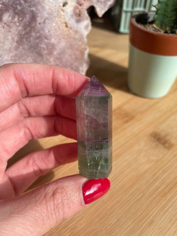 Leuk weetje: de kleuren in regenboogfluoriet ontstaan doordat er tijdens de groei van het mineraal telkens net een ander spoortje element wordt opgenomen. Je kijkt dus eigenlijk naar de laagjesgeschiedenis van de steen!