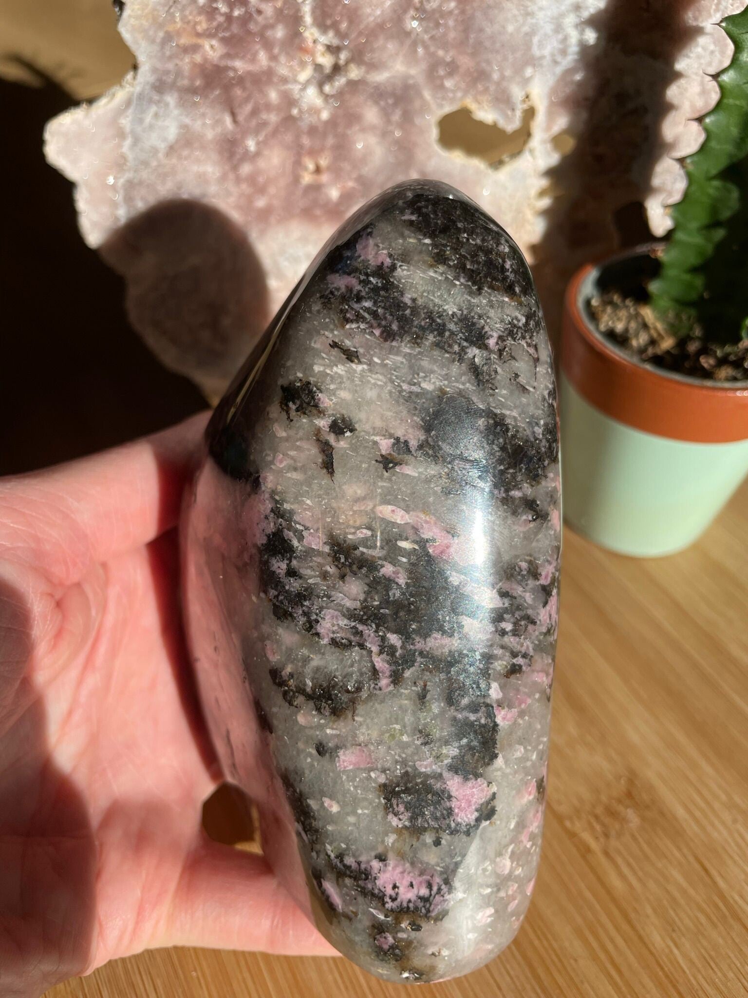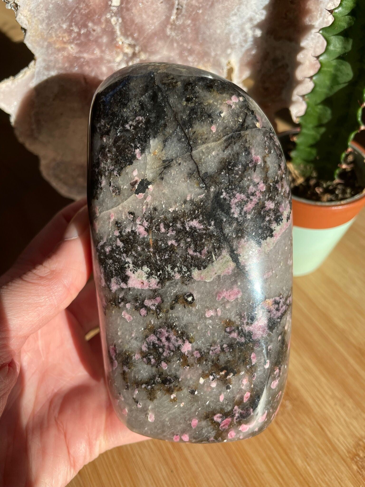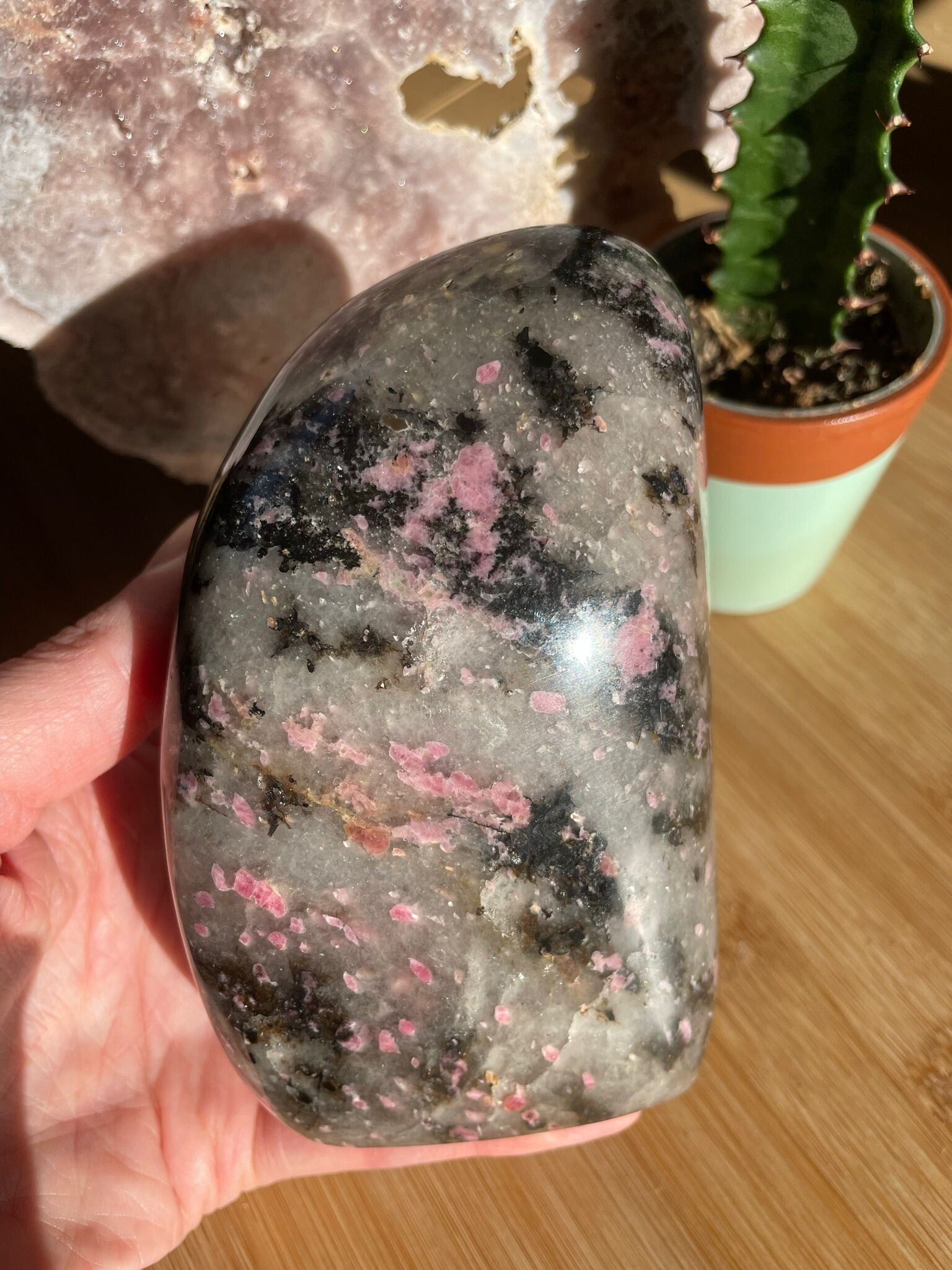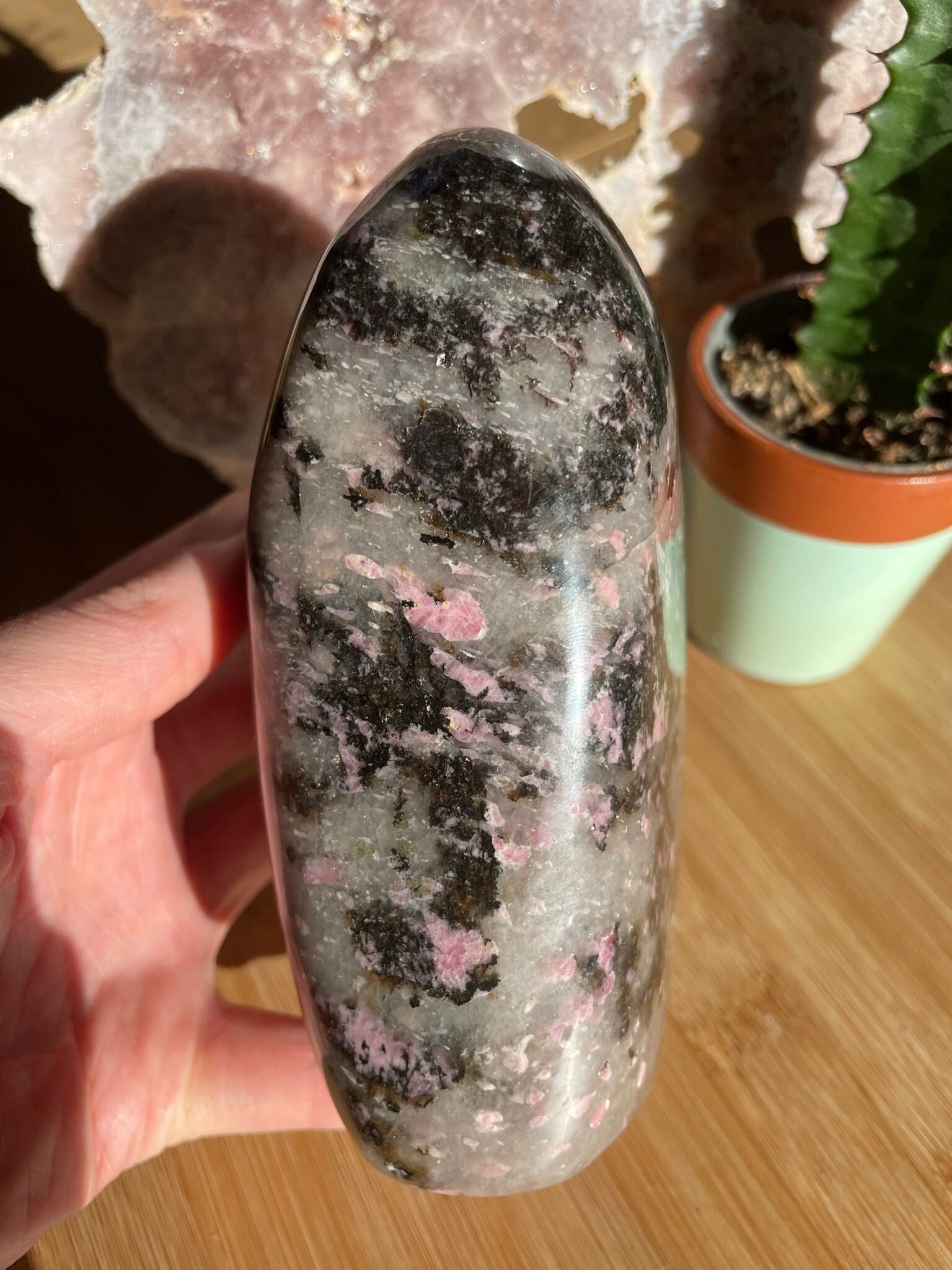 Leuk weetje: De zwarte aders in Rhodoniet zijn vaak mangaanhoudende mineralen. Het contrast tussen het roze en zwart maakt dat iedere steen echt een uniek kunstwerkje is van de natuur.