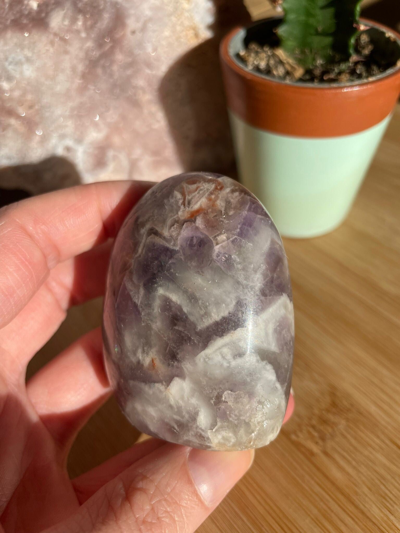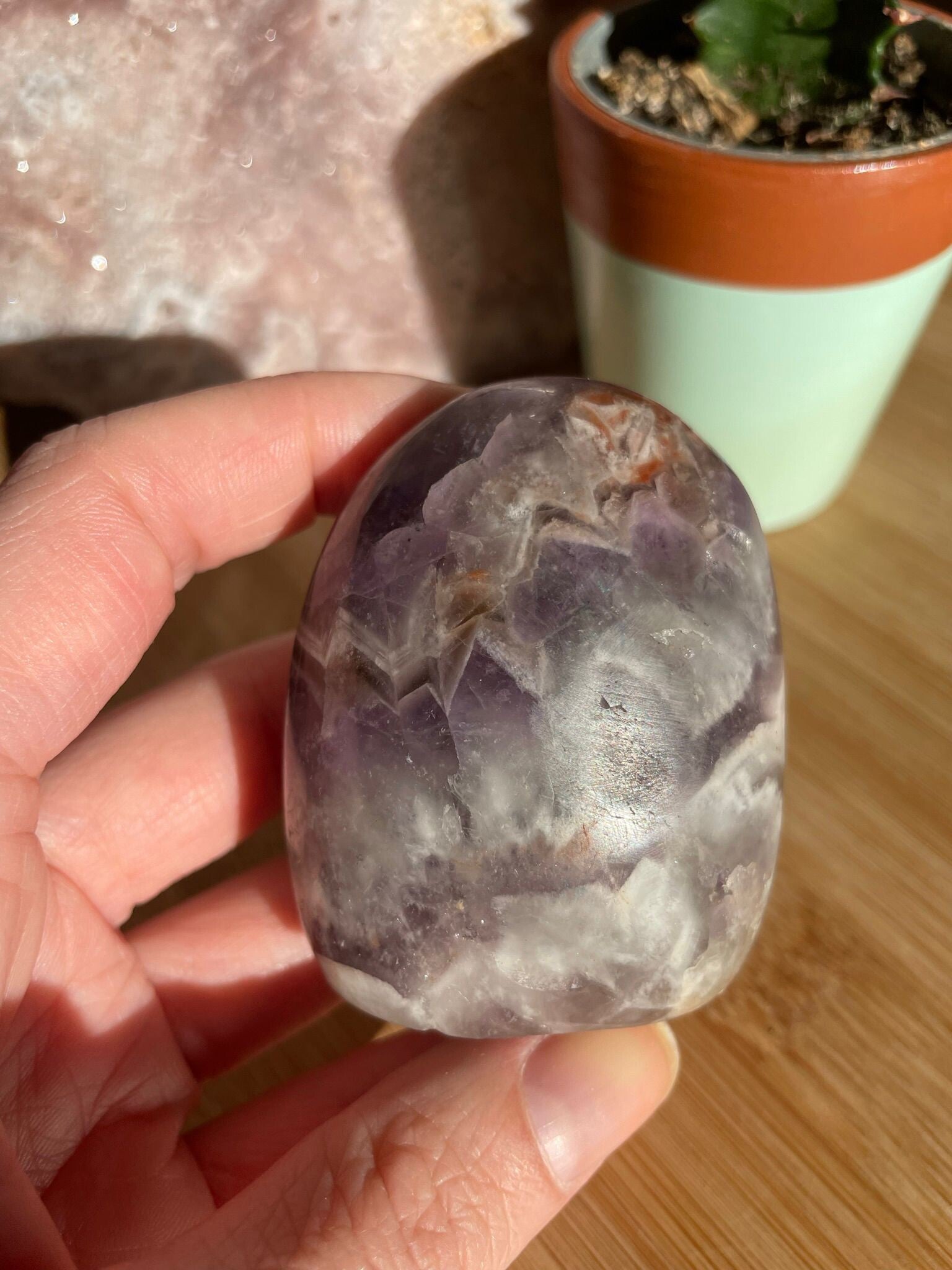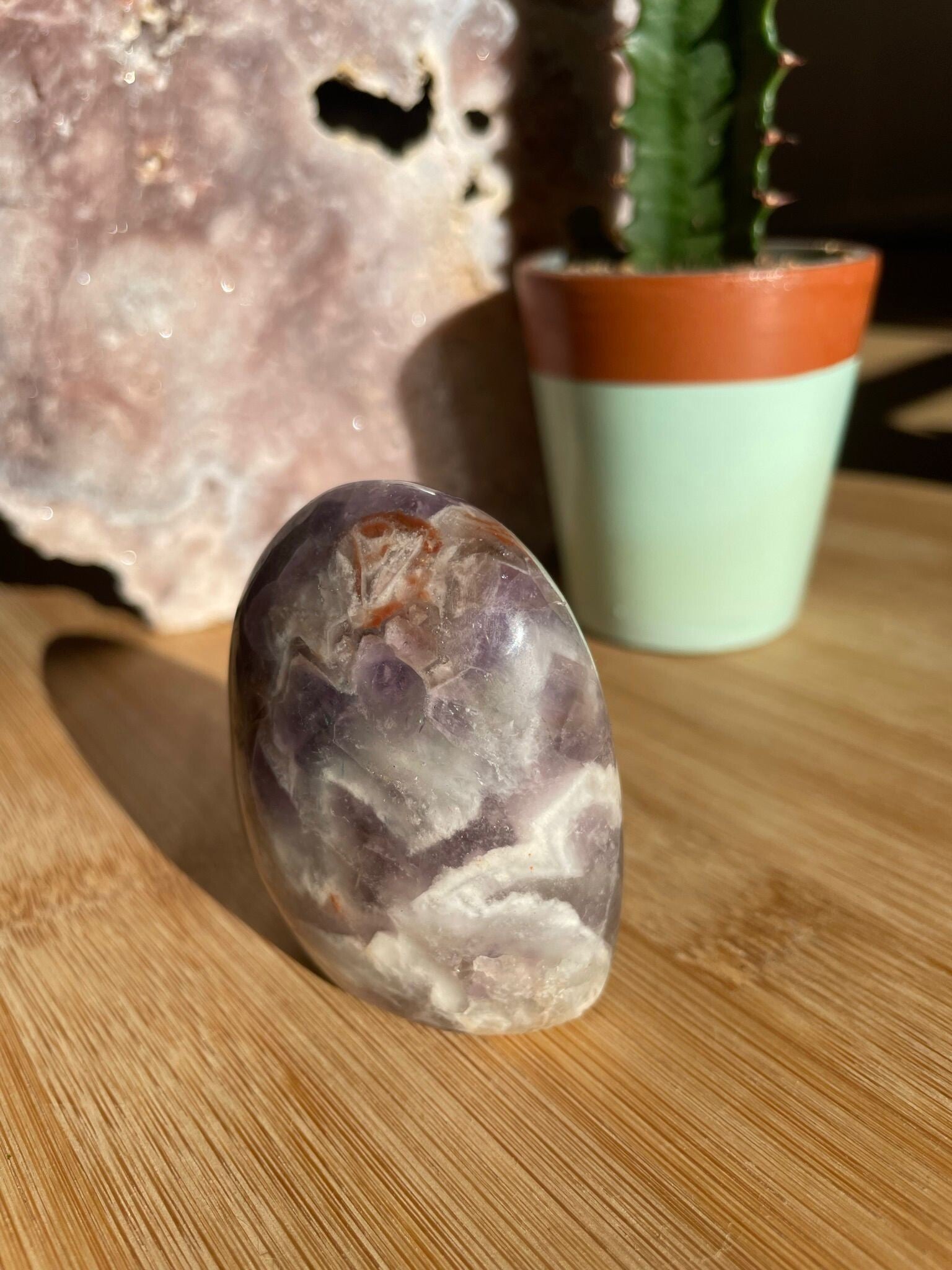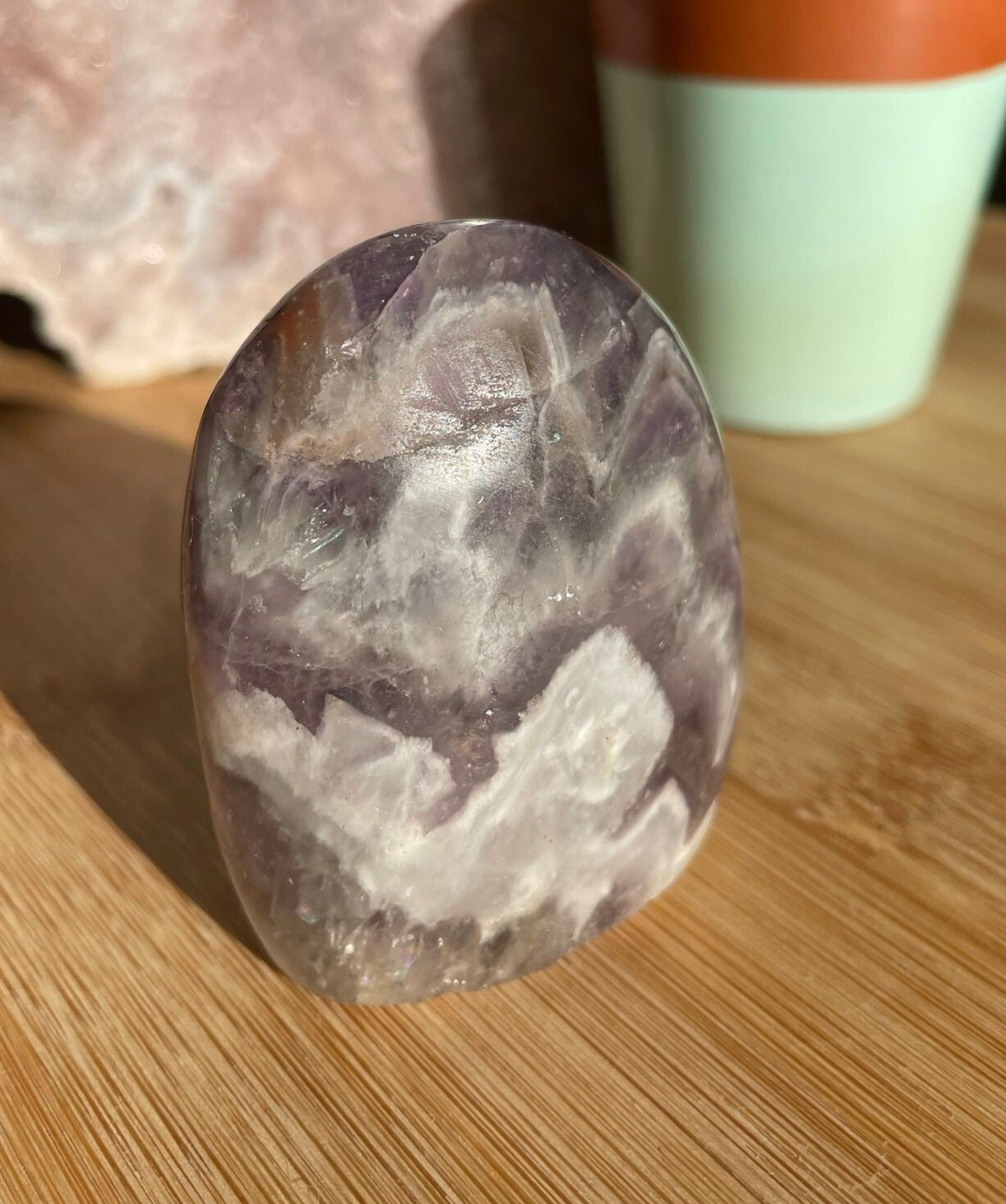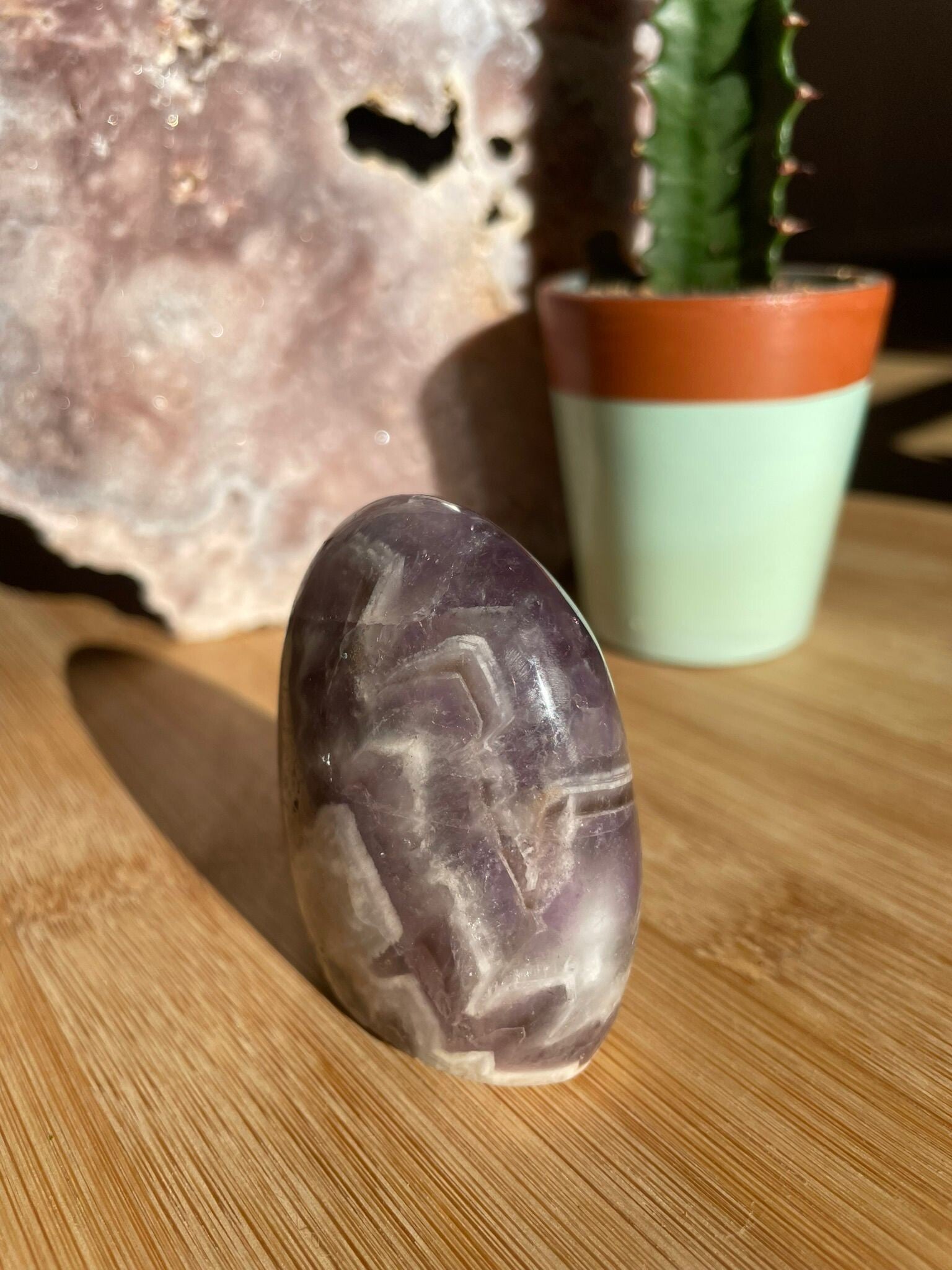 Amethist staat bekend om haar kalmerende werking. Ze helpt bij het loslaten van stress, bevordert helder denken en ondersteunt een goede nachtrust. Ook wordt ze vaak gebruikt bij meditatie of om rust te brengen in een drukke ruimte.