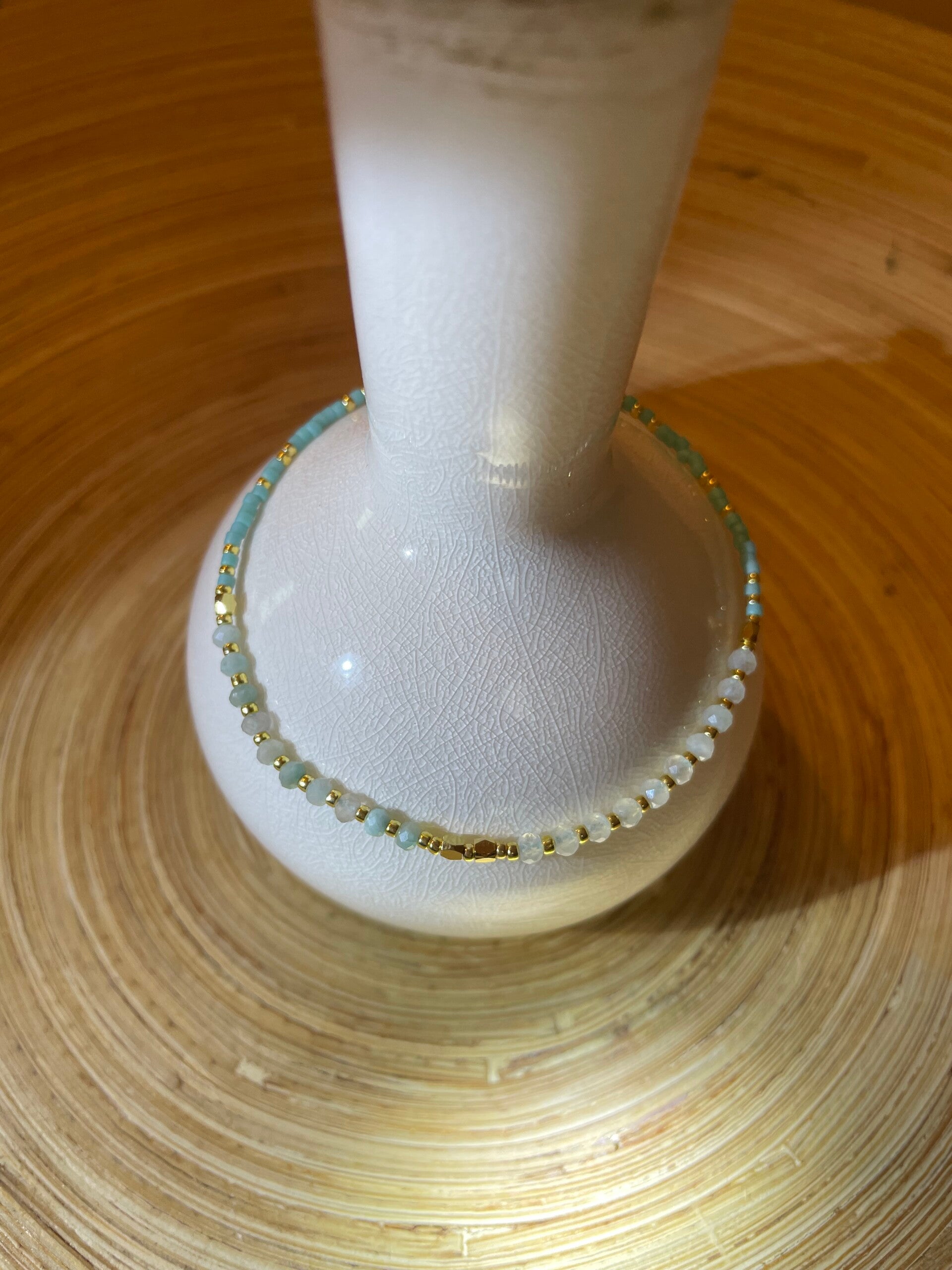 Amazoniet valt direct op door zijn mooie blauwgroene tint, die doet denken aan tropisch water. Deze steen wordt gevonden in onder andere Brazilië, Rusland, Madagaskar en de VS. Ondanks de naam is hij niet afkomstig uit het Amazonegebied – een hardnekkige misvatting die waarschijnlijk ontstaan is door zijn kleur en mystieke uitstraling.