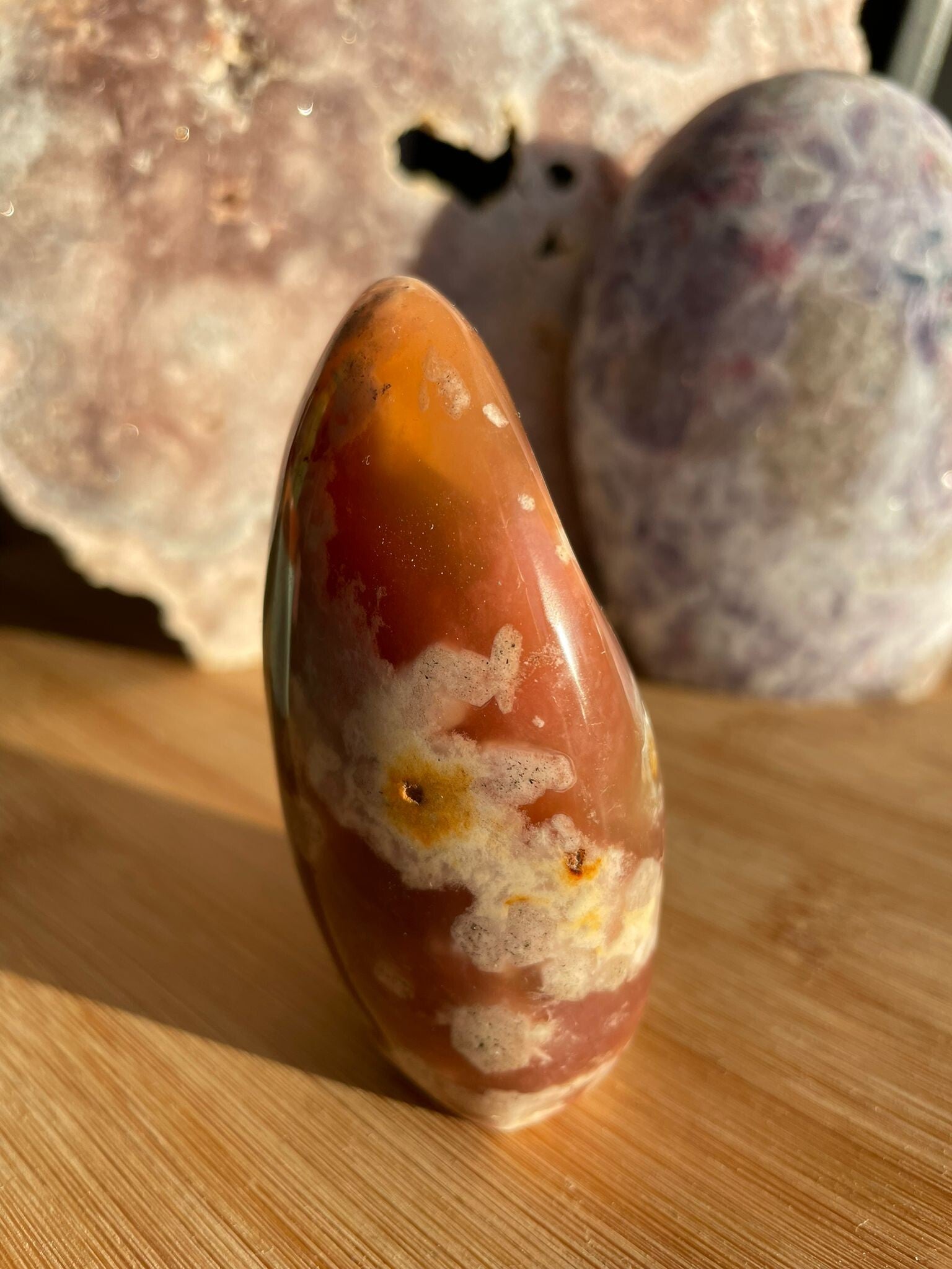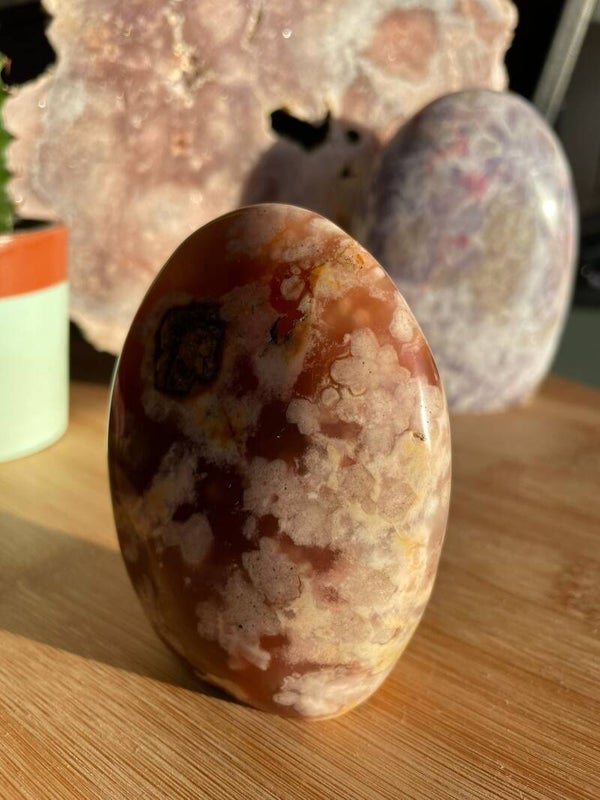 Leuk weetje: de “bloemen” in bloemagaat ontstaan door kleine insluitsels van mineralen tijdens het kristalliseren. Hierdoor heeft elke steen zijn eigen unieke patroon – geen twee zijn hetzelfde!