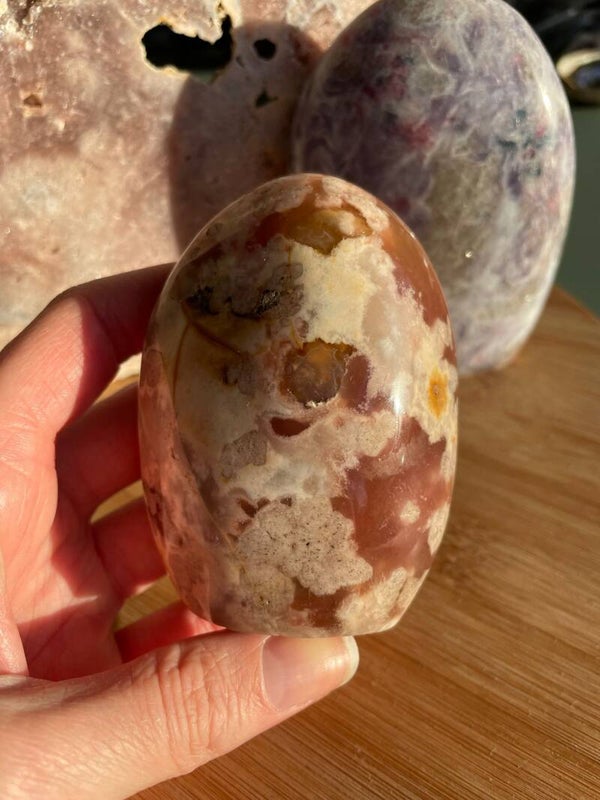 Bloemagaat wordt gevonden in onder andere Brazilië, India en Madagascar. Door de zachte uitstraling is het een fijne steen om bij je te hebben voor momenten van rust of gewoon om van te genieten als mooie blikvanger.