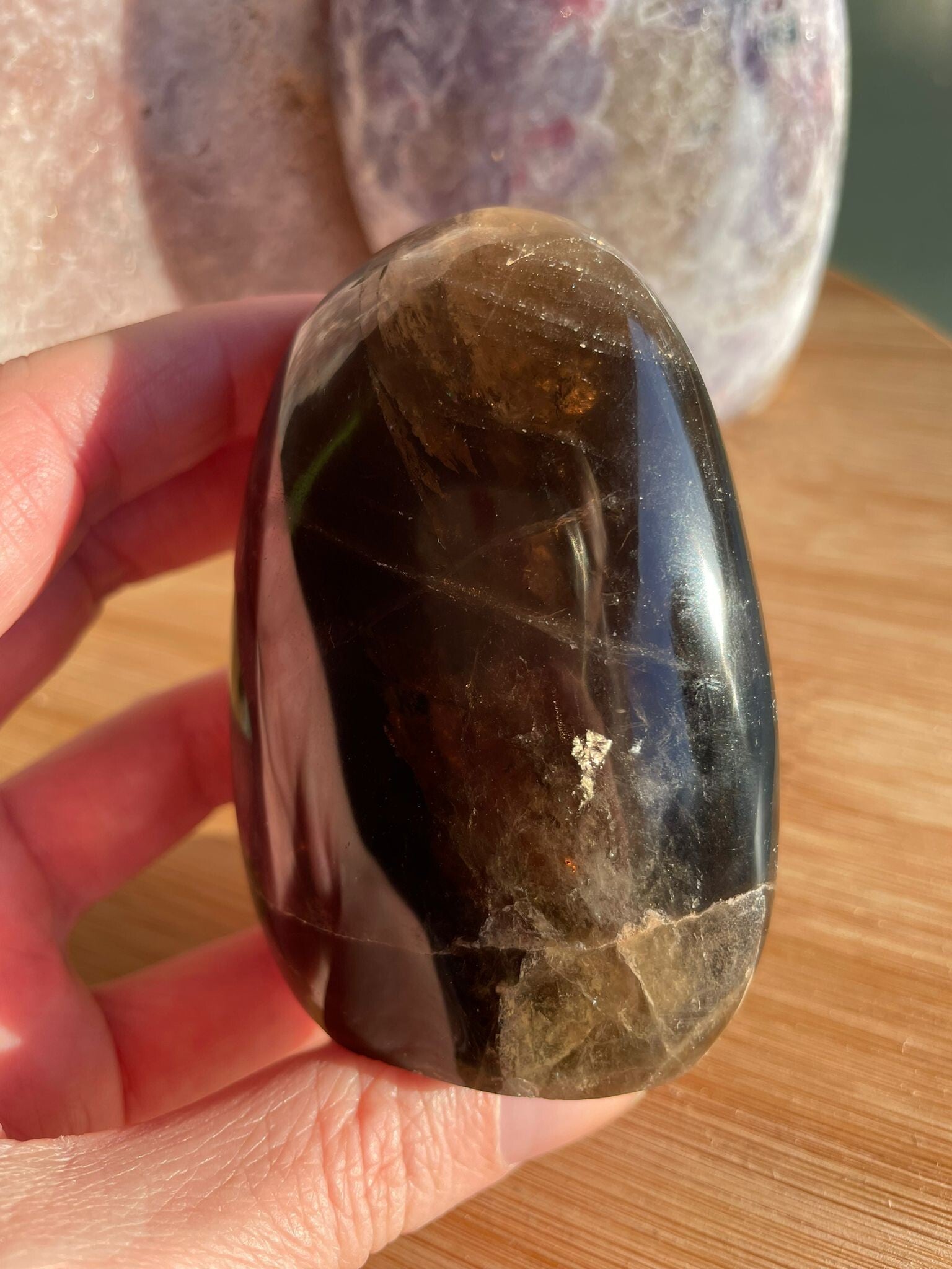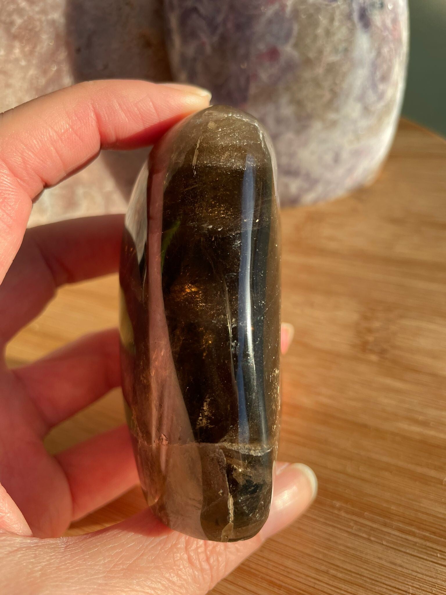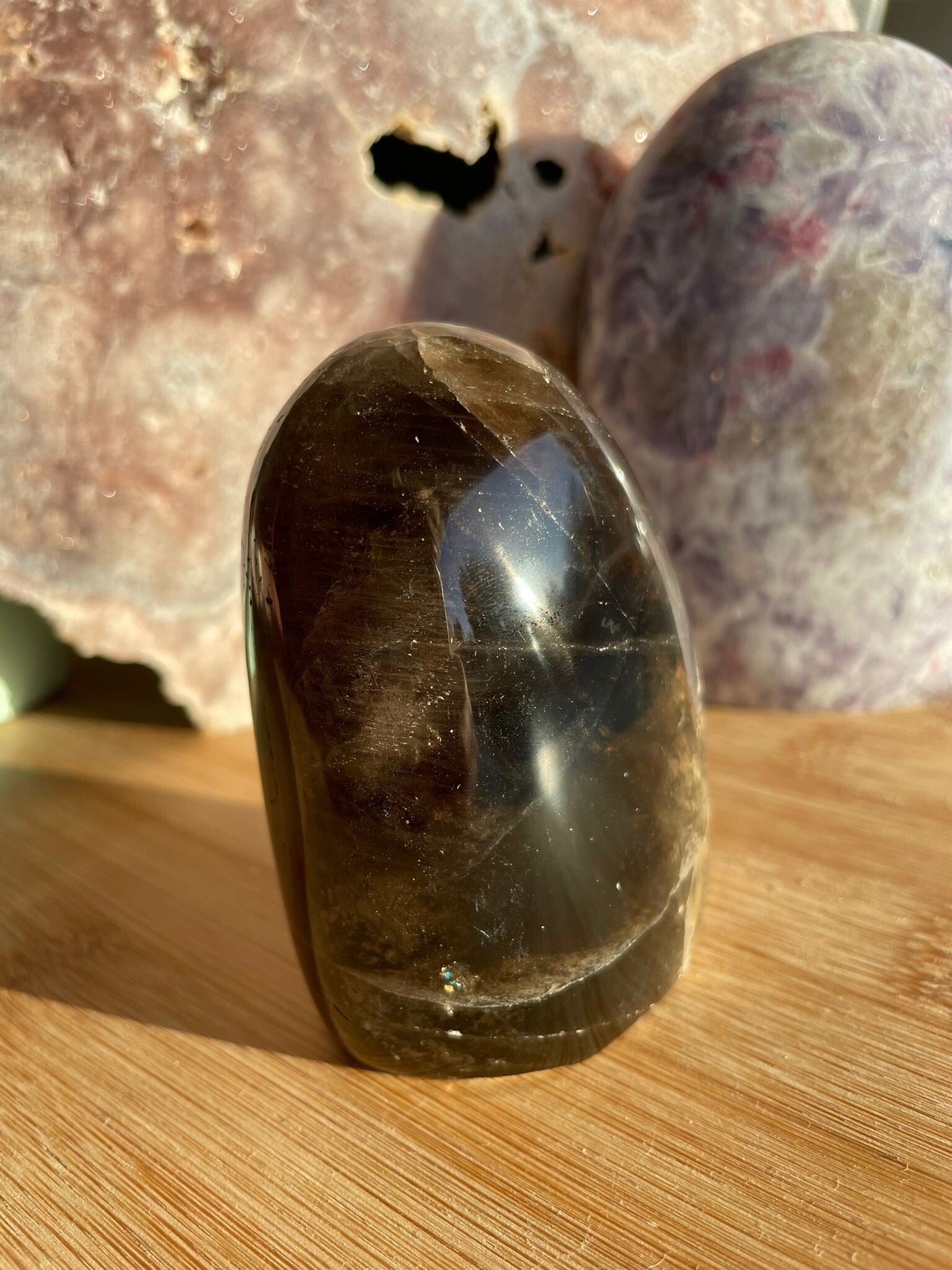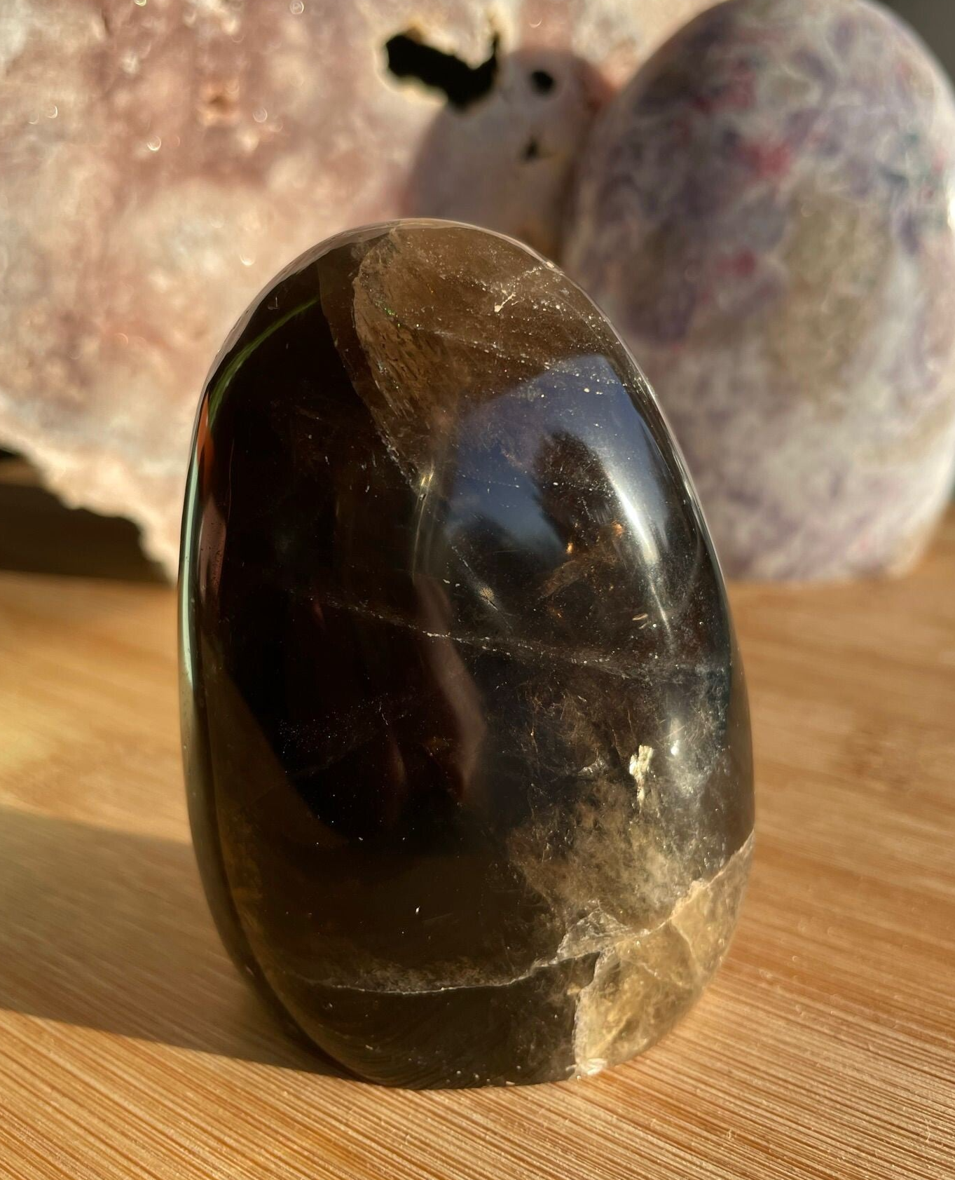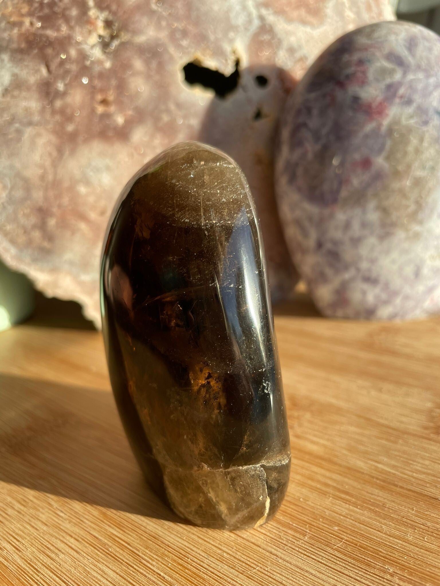 Rookkwarts is de mysterieuze, bruinige variant van de kwartsfamilie. De kleur varieert van zacht theekleurig tot bijna diep espresso-bruin, en ontstaat door natuurlijke bestraling van aluminiuminsluitingen in het kwarts. Een prachtig voorbeeld van hoe de aarde miljoenen jaren geduld heeft om iets bijzonders te creëren.