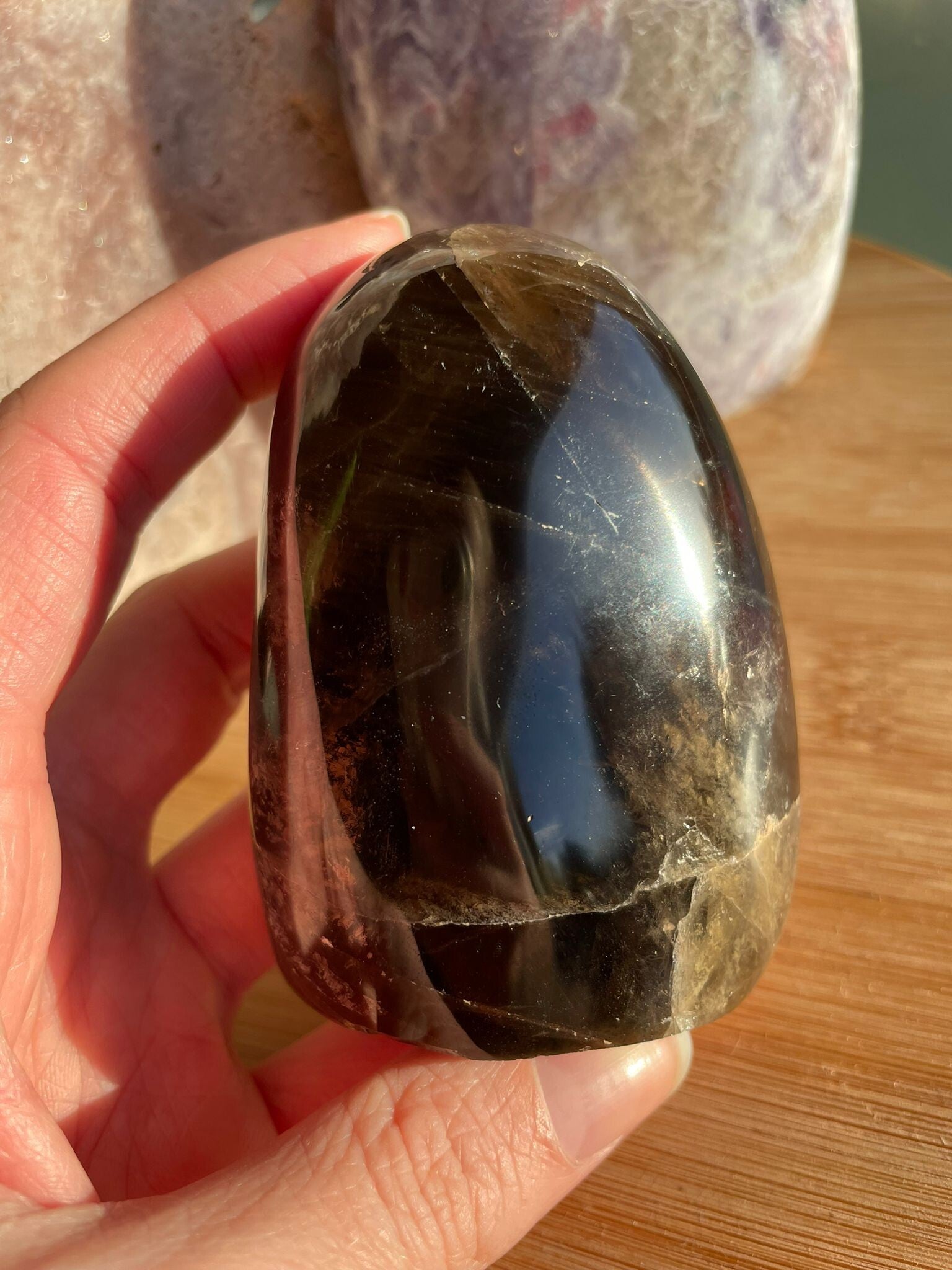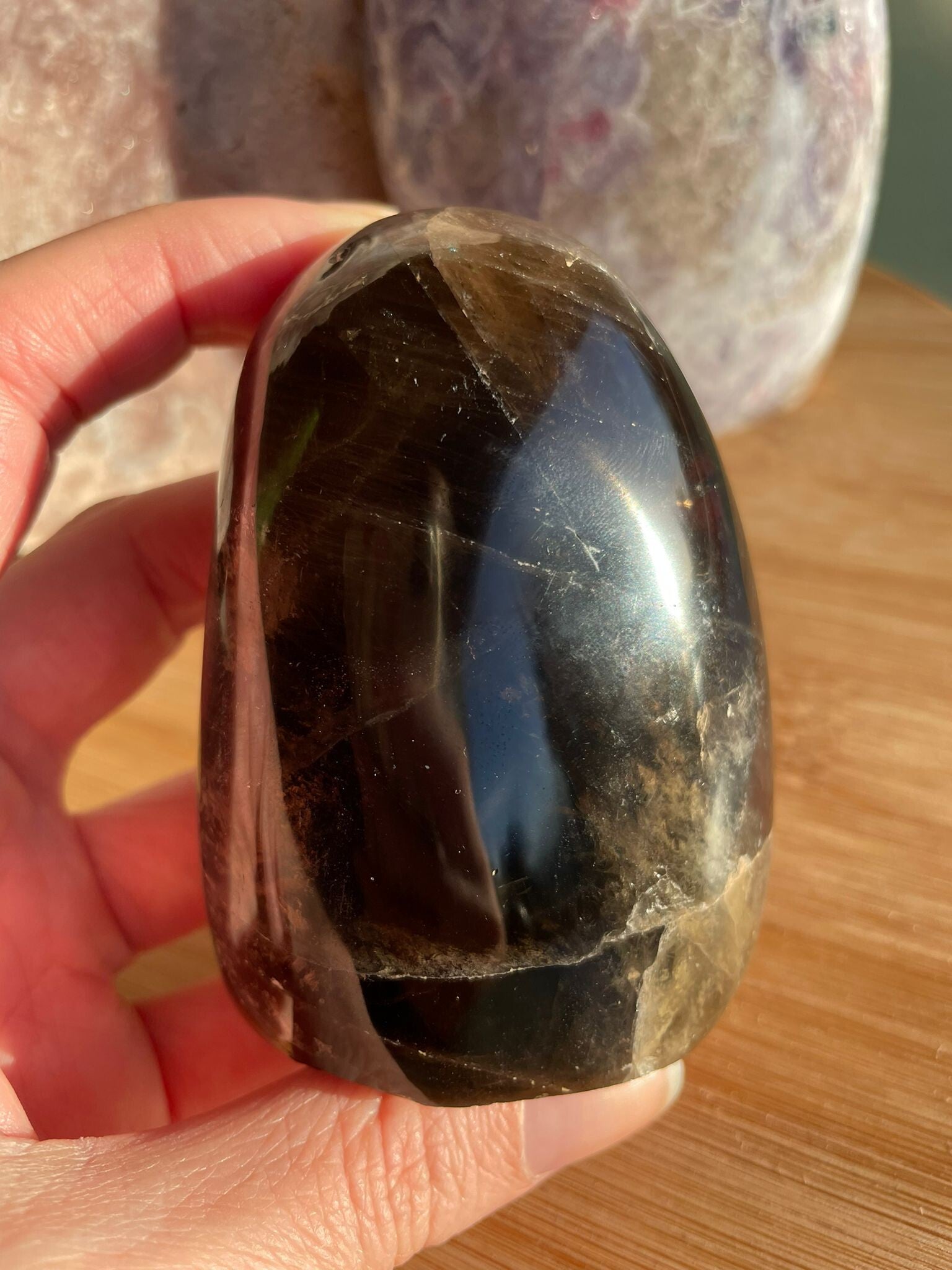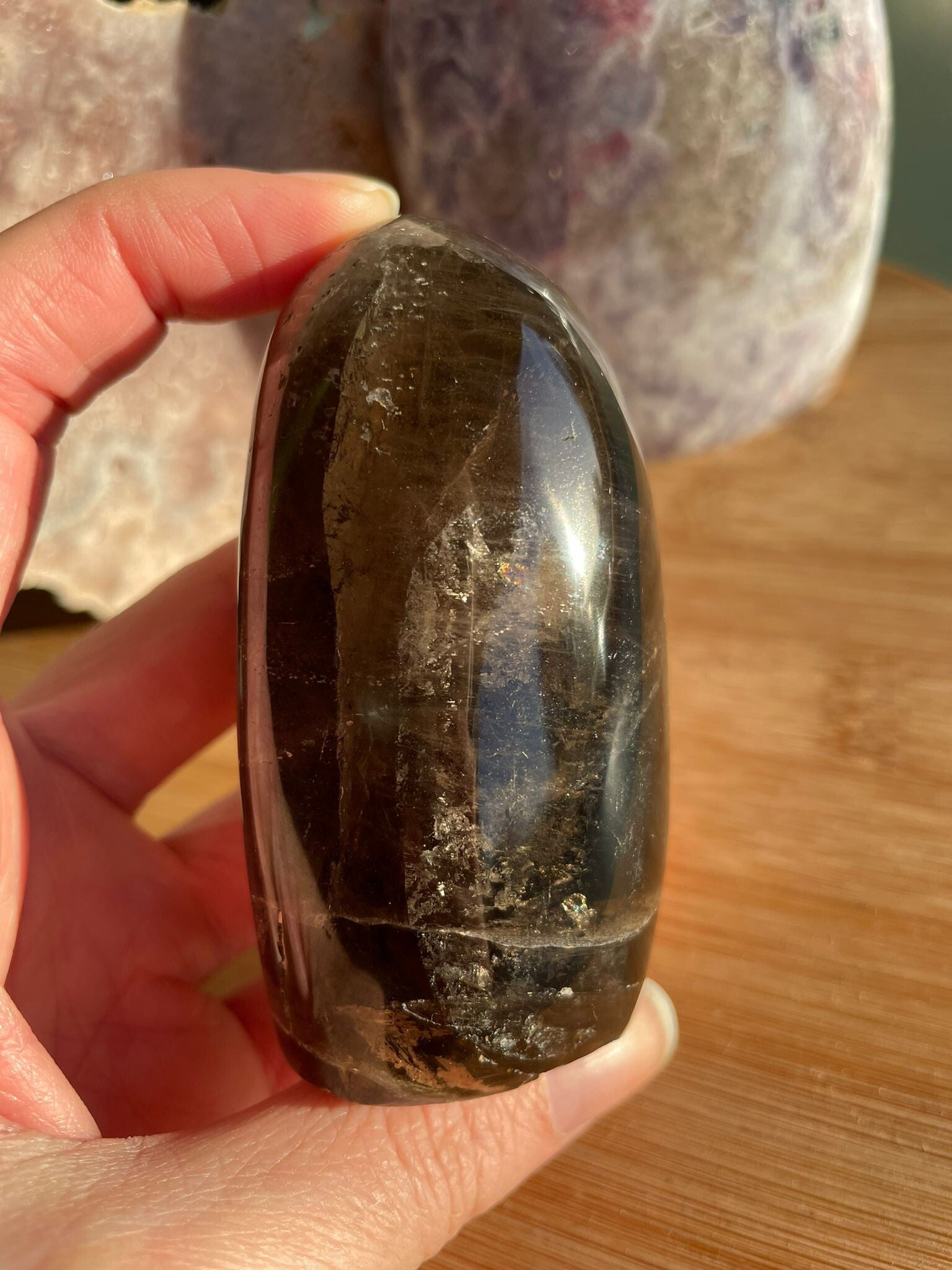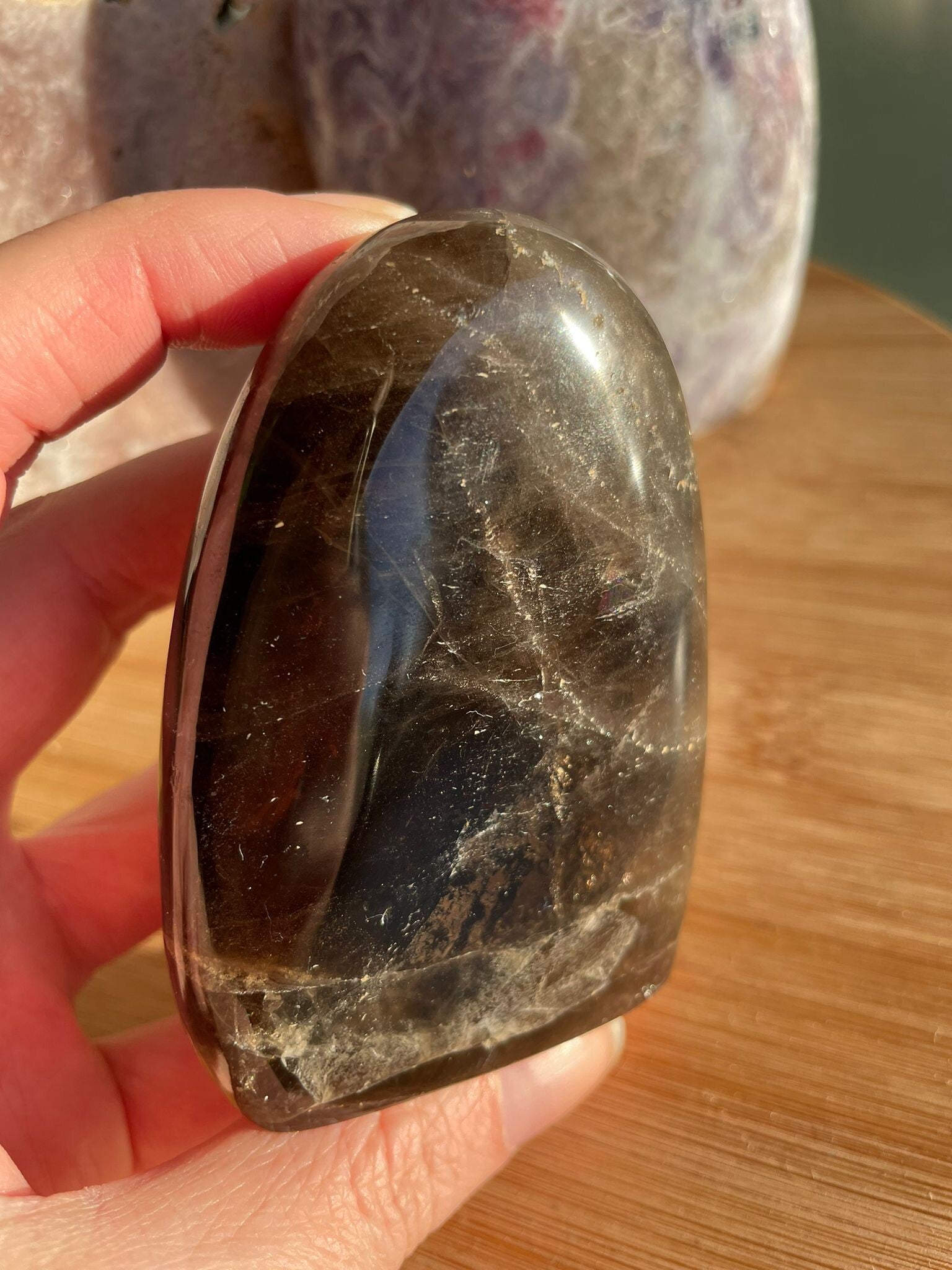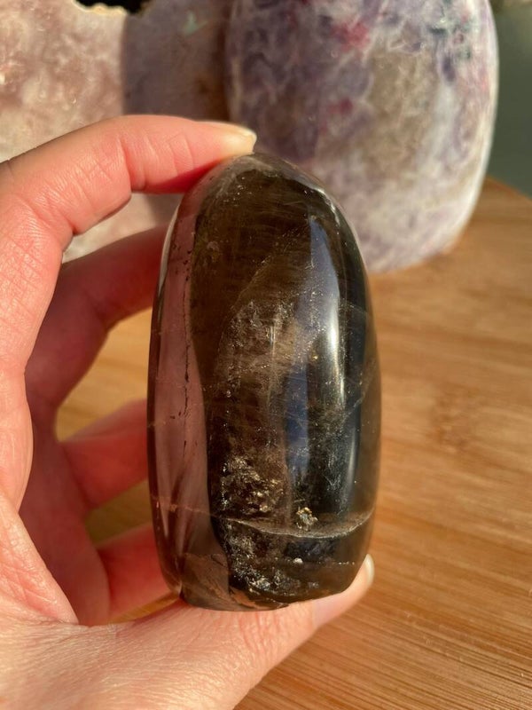 Rookkwarts is de mysterieuze, bruinige variant van de kwartsfamilie. De kleur varieert van zacht theekleurig tot bijna diep espresso-bruin, en ontstaat door natuurlijke bestraling van aluminiuminsluitingen in het kwarts. Een prachtig voorbeeld van hoe de aarde miljoenen jaren geduld heeft om iets bijzonders te creëren.