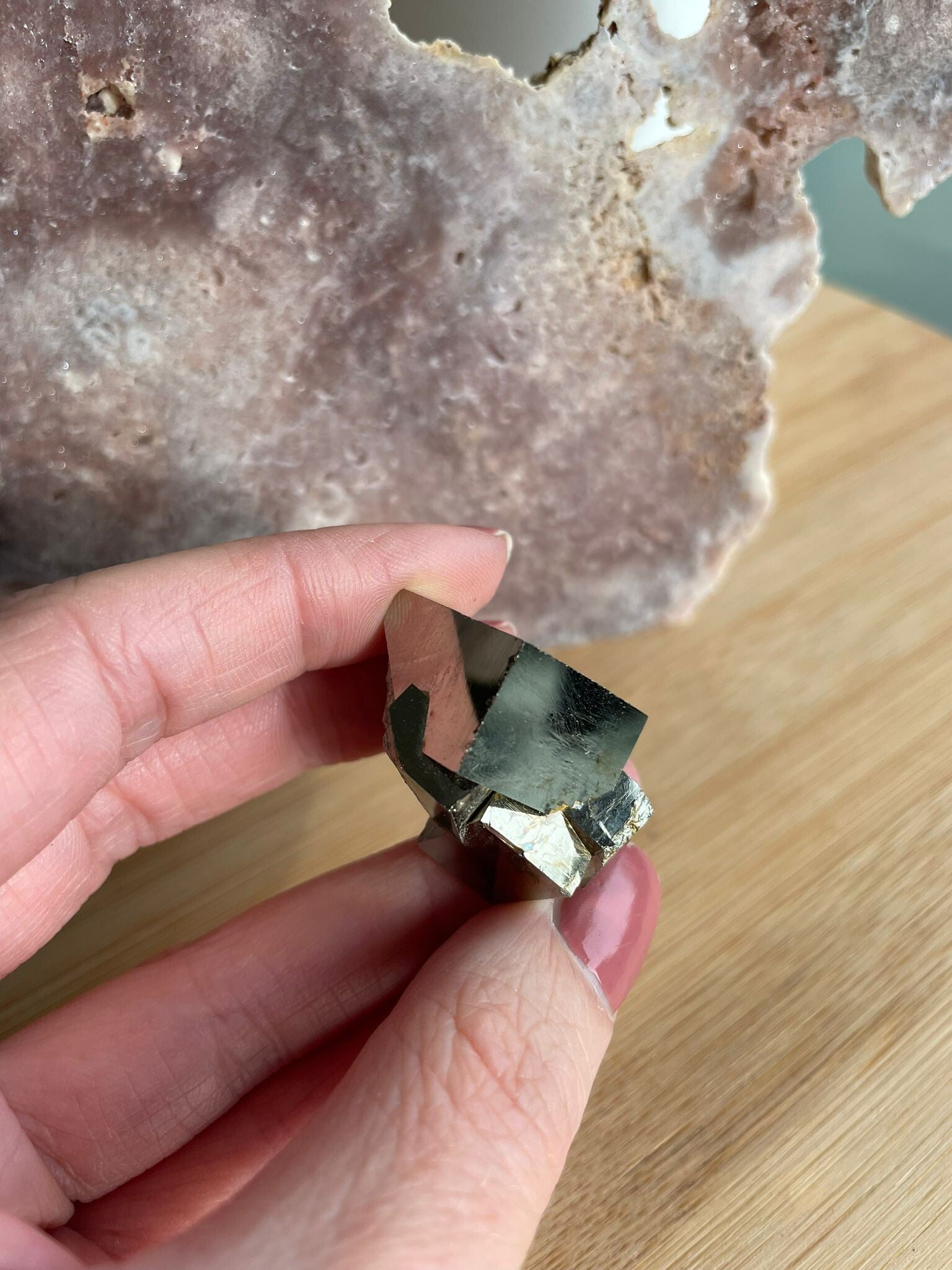 Deze bijzondere vorm ontstaat doordat Pyriet in kristallijne structuren groeit die van nature perfect kubusvormig zijn. Kubus Pyriet wordt voornamelijk gevonden in Spanje, Peru, de Verenigde Staten en Marokko, waar het als een kleine verrassing tussen ander gesteente tevoorschijn komt.