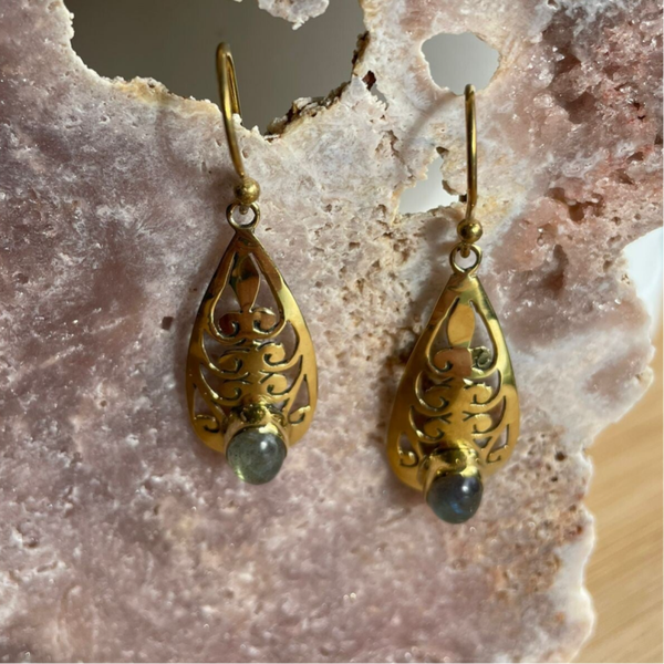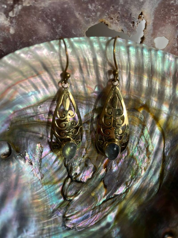Labradoriet oorbellen van koper