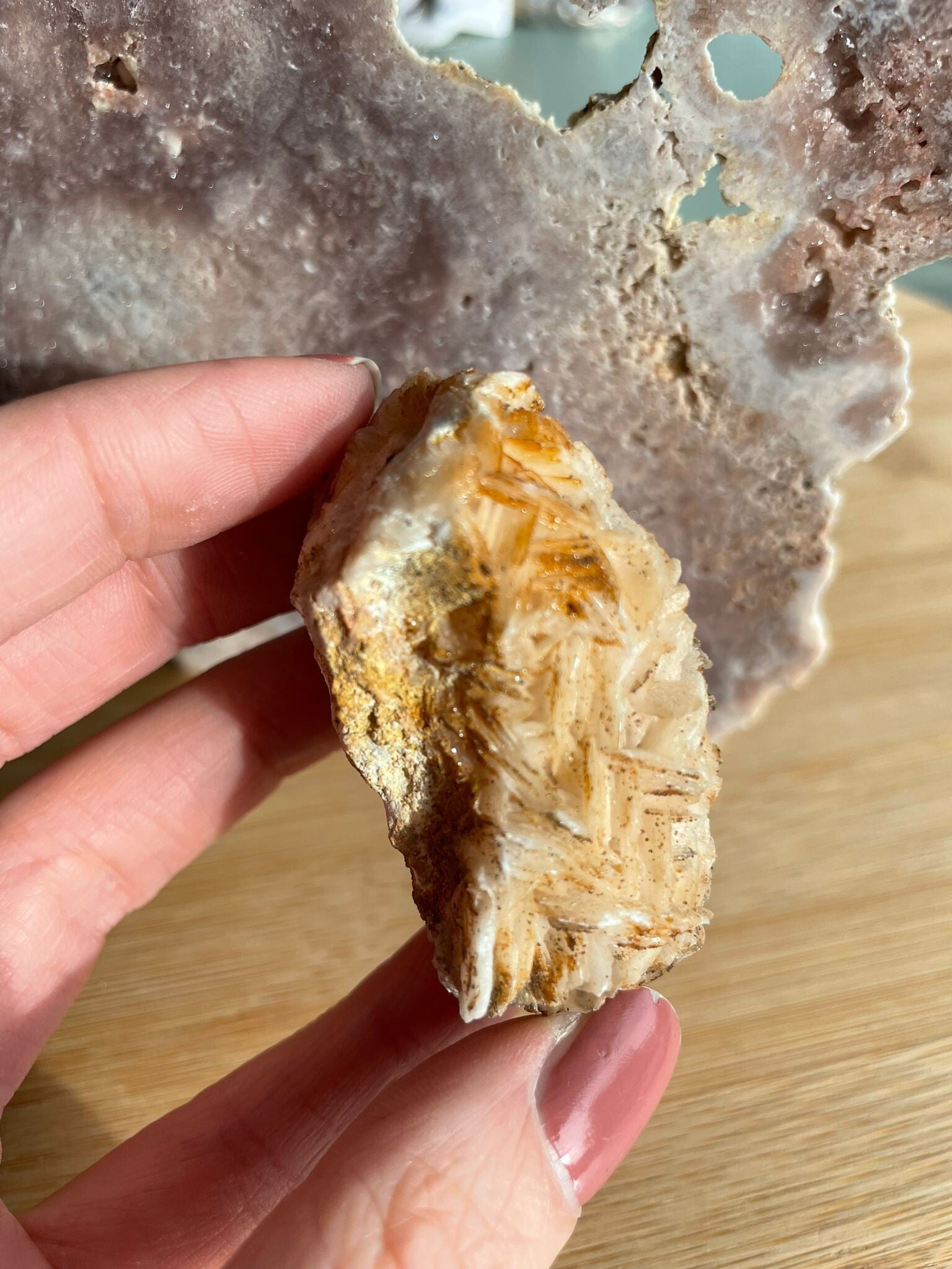 Bariet is zo'n steen die op het eerste gezicht misschien rustig oogt, maar stiekem een verrassend verhaal vertelt. Met z’n vaak zachte kleuren en kristallijne vormen straalt hij kalmte uit, maar laat je niet foppen – bariet is ook een steen van helderheid en bewustwording. Ideaal voor wie wat meer focus zoekt, zonder het hoofd te verliezen in de chaos.