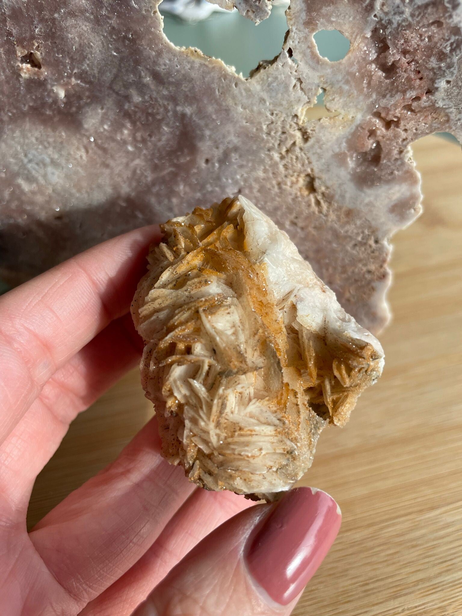 Je vindt bariet in landen als Marokko, de VS en Roemenië. Soms is hij doorschijnend wit, soms geel, blauw of zelfs met mooie roestbruine randjes. Geen enkele bariet is hetzelfde – en dat maakt ‘m juist zo bijzonder.
