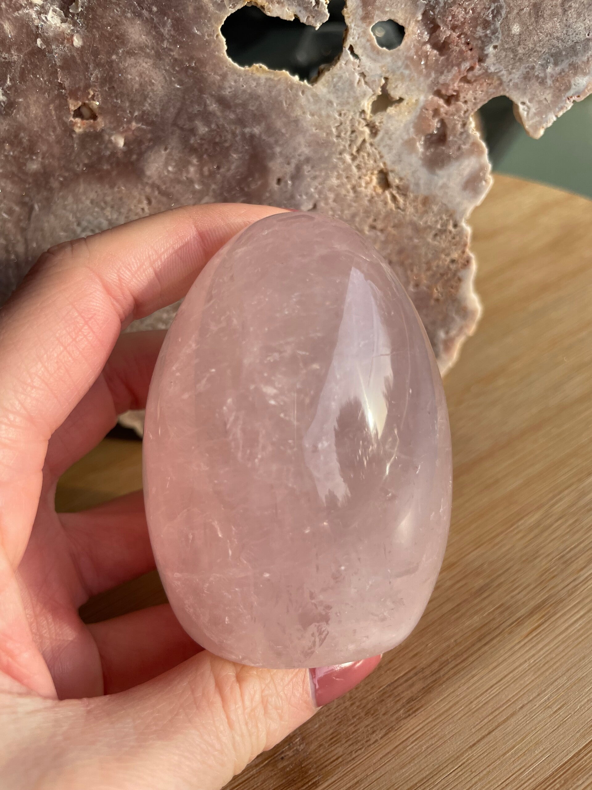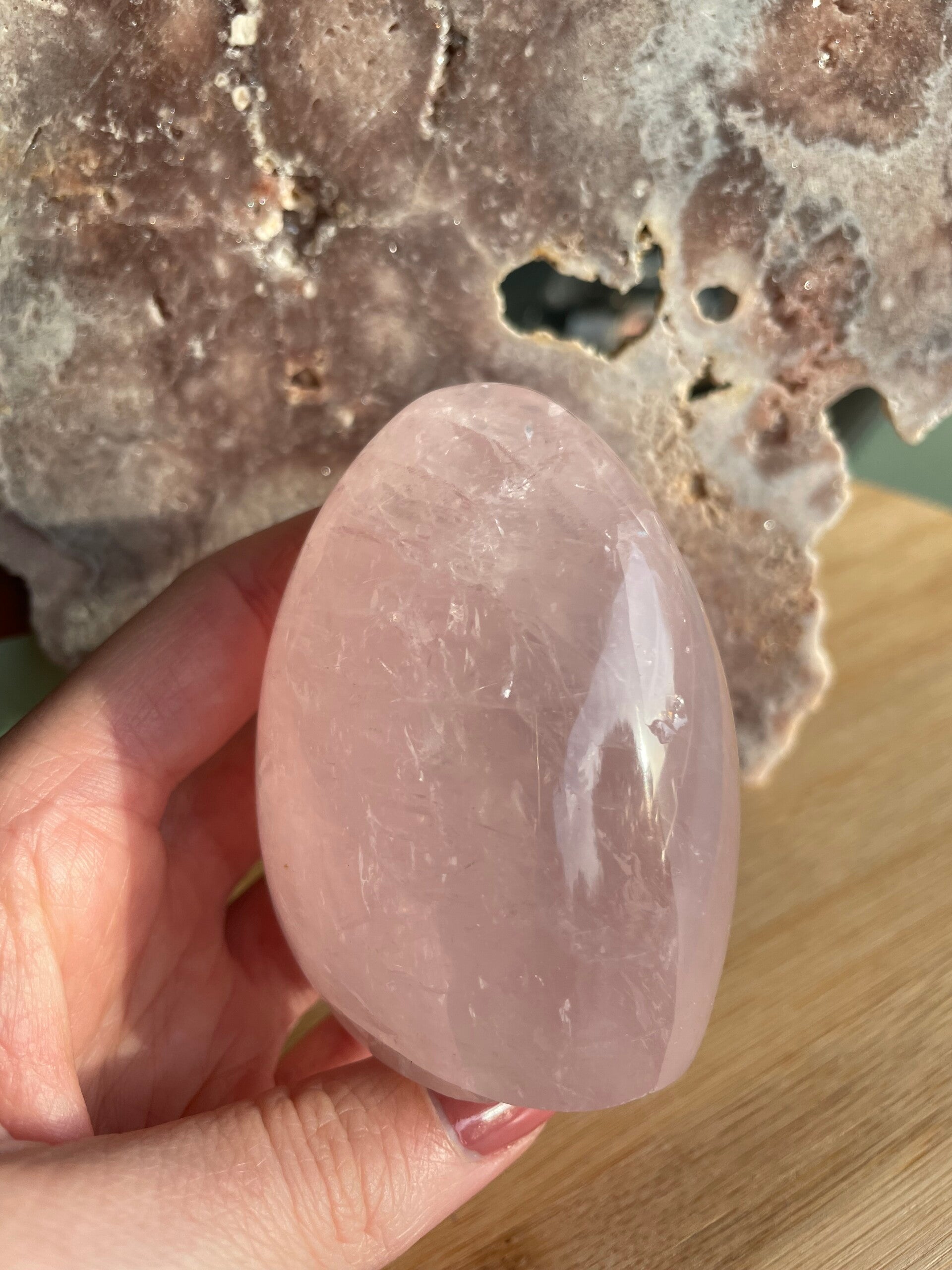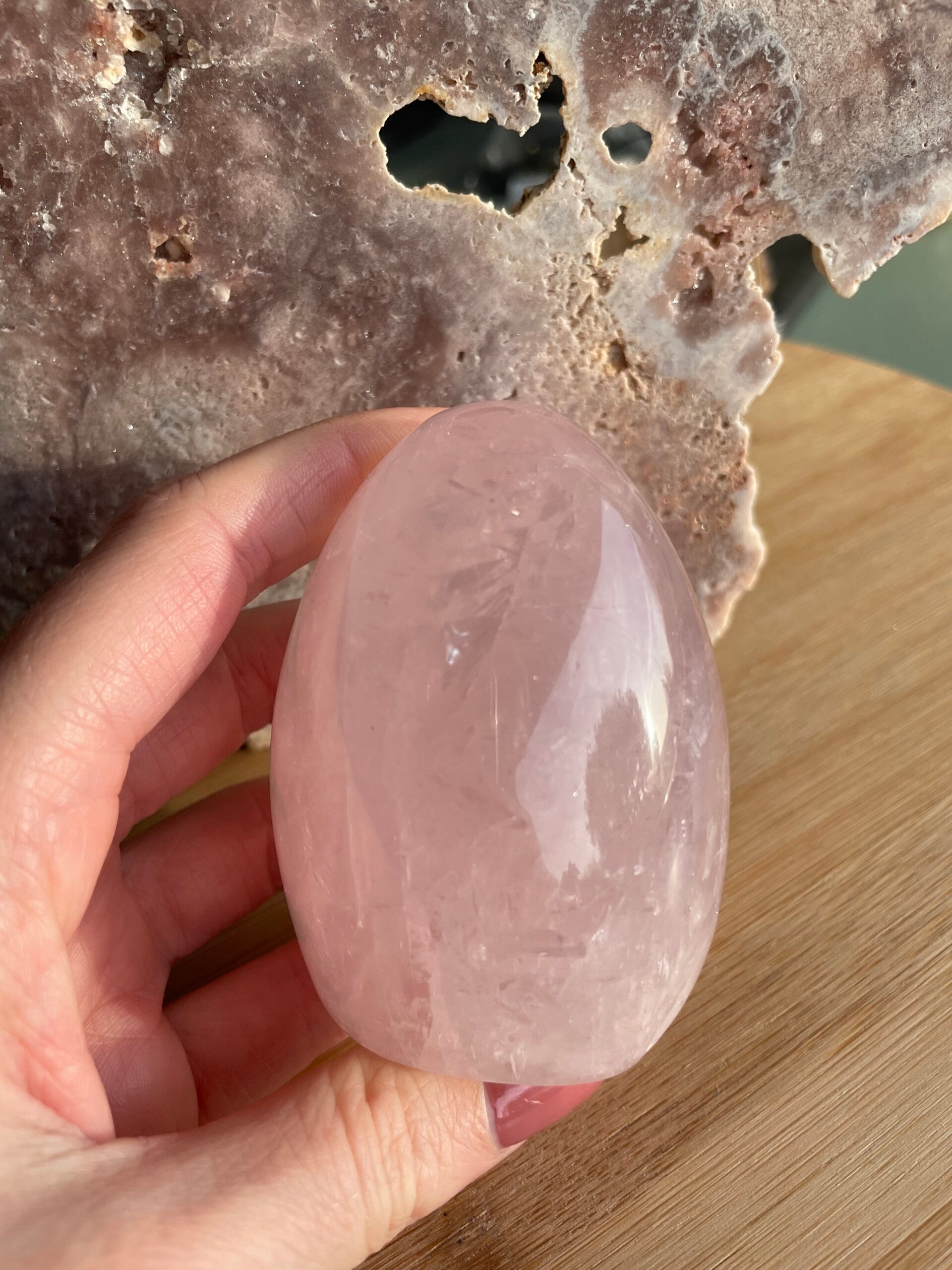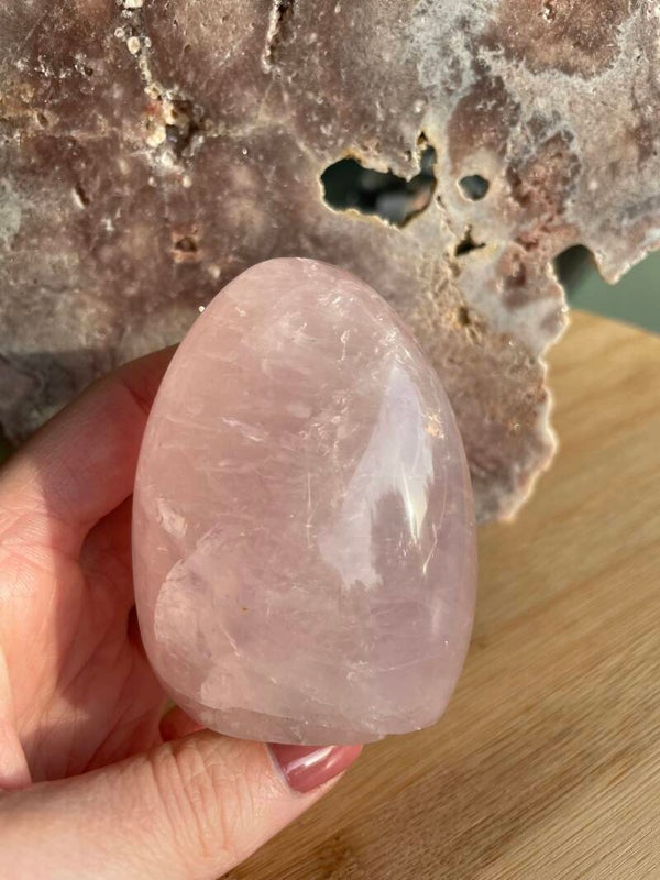 Rozenkwarts is misschien wel de meest geliefde roze edelsteen ter wereld. Met zijn zachte, melkroze kleur en kalme uitstraling heeft hij iets heel uitnodigends. De kleur ontstaat door sporen van titanium, ijzer of mangaan die tijdens de vorming in het kwarts terechtkomen. Daardoor heeft elke steen weer nét een andere tint roze: van heel licht en doorschijnend tot warm en fluweelachtig.
