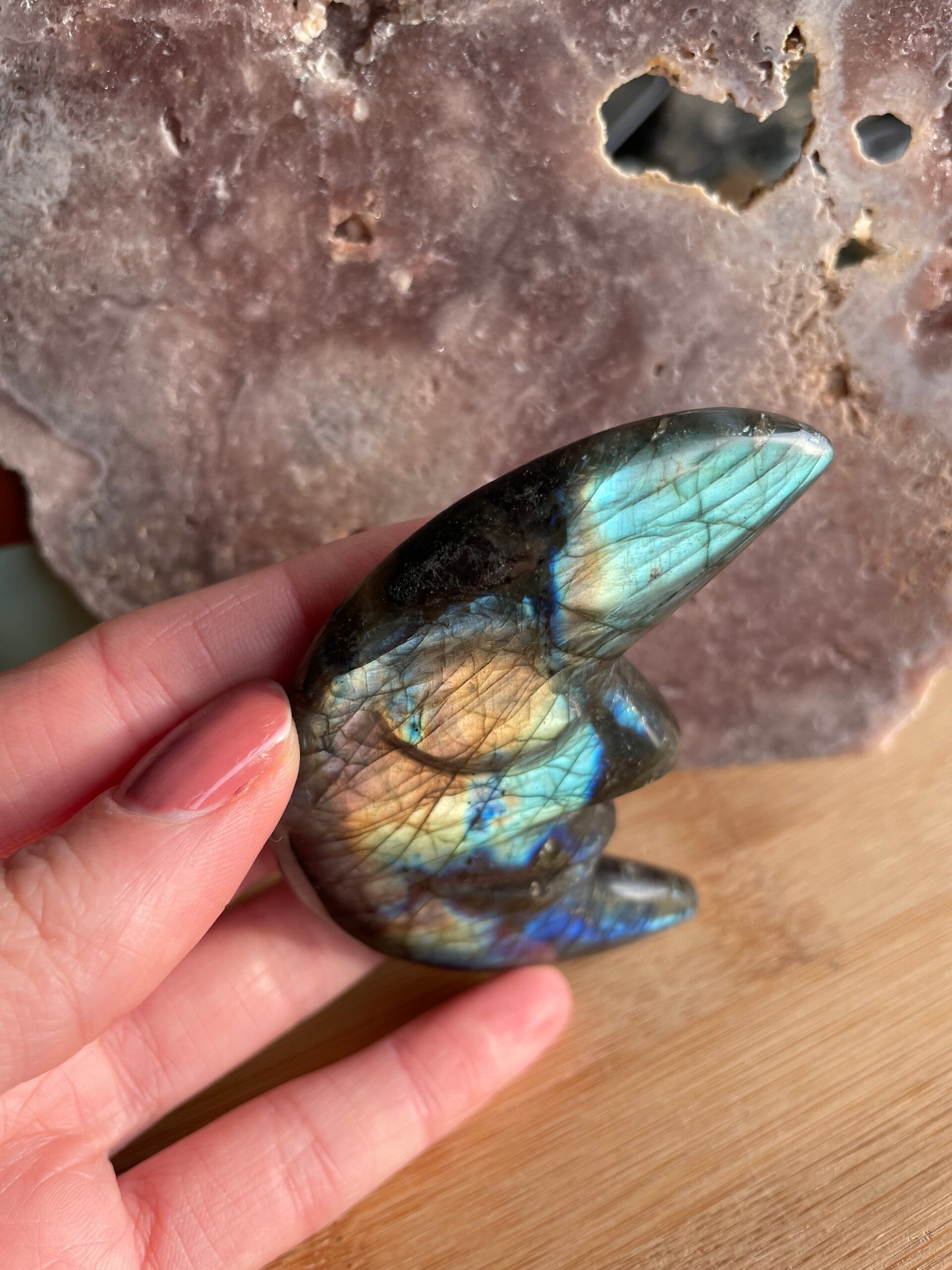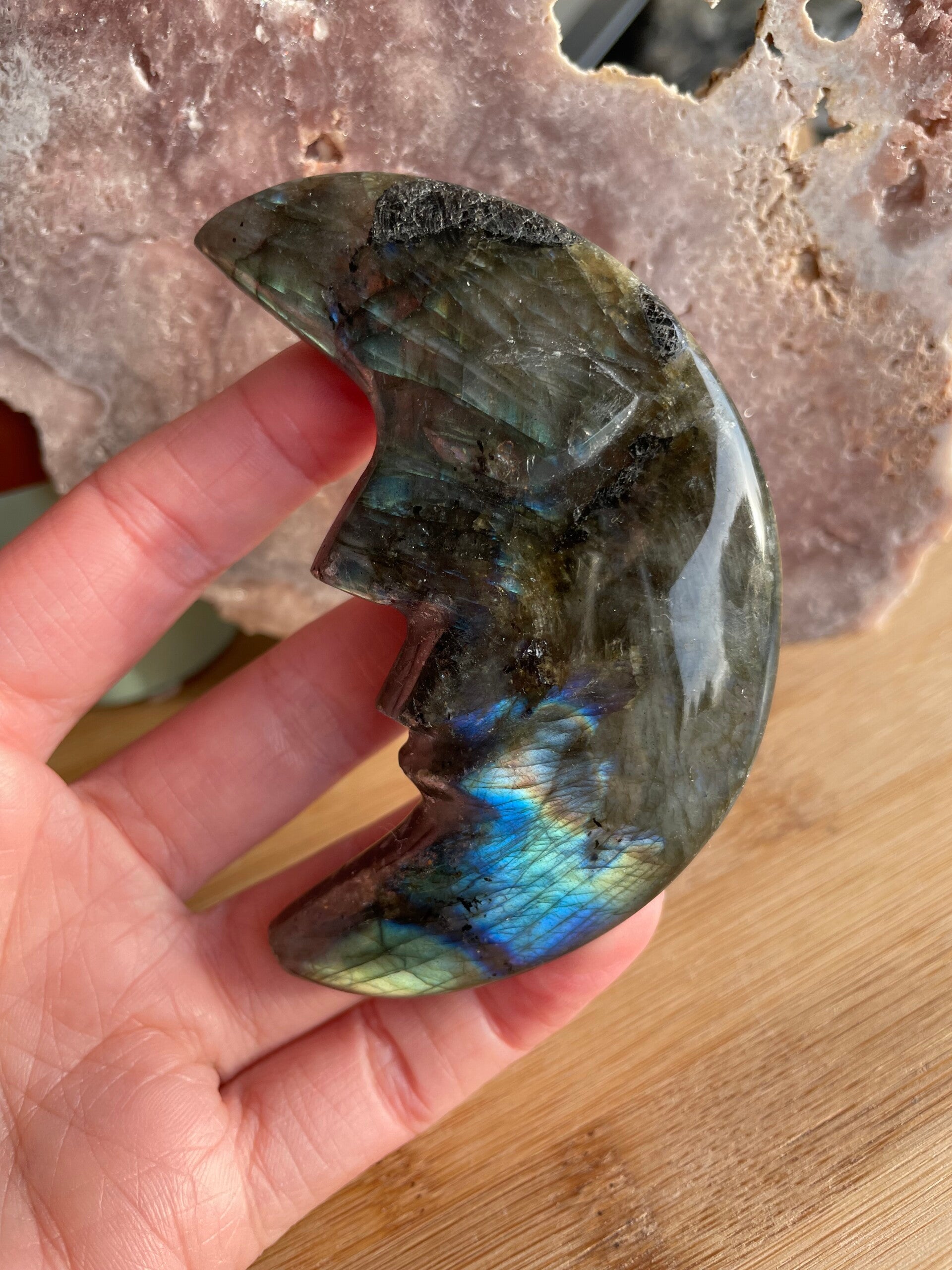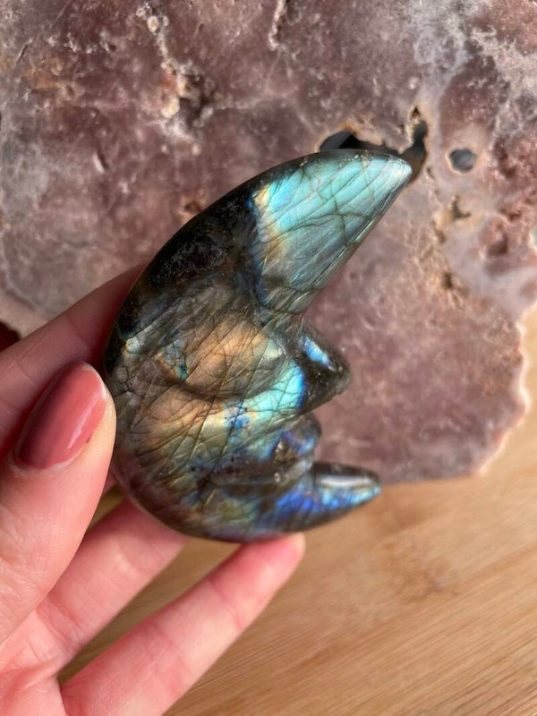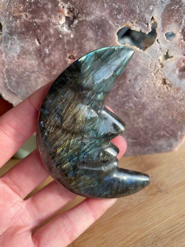 Leuk weetje: De naam Labradoriet is afgeleid van het schiereiland Labrador in Canada, waar de steen in 1770 voor het eerst ontdekt werd. De unieke kleuren van labradoriet ontstaan door lichtbreking in de dunne lagen van mineralen in de steen, een natuurkundig fenomeen dat de steen zo magisch maakt.