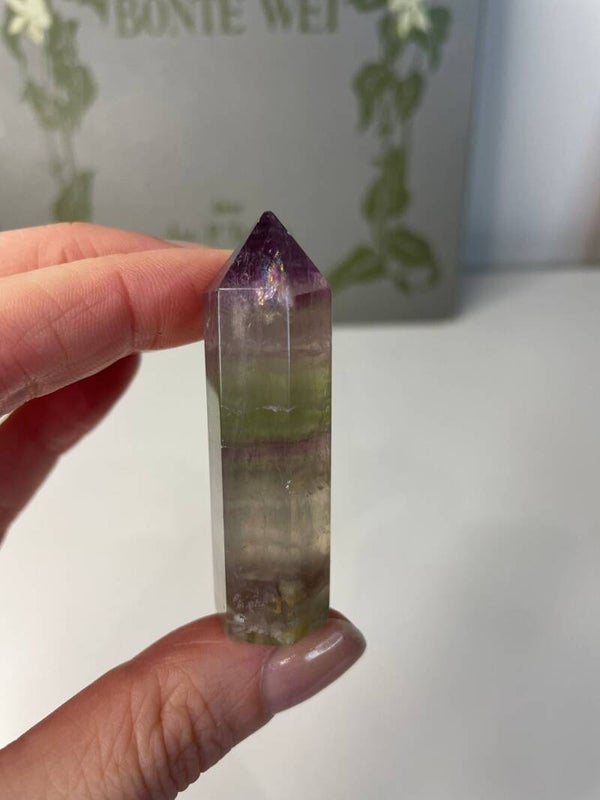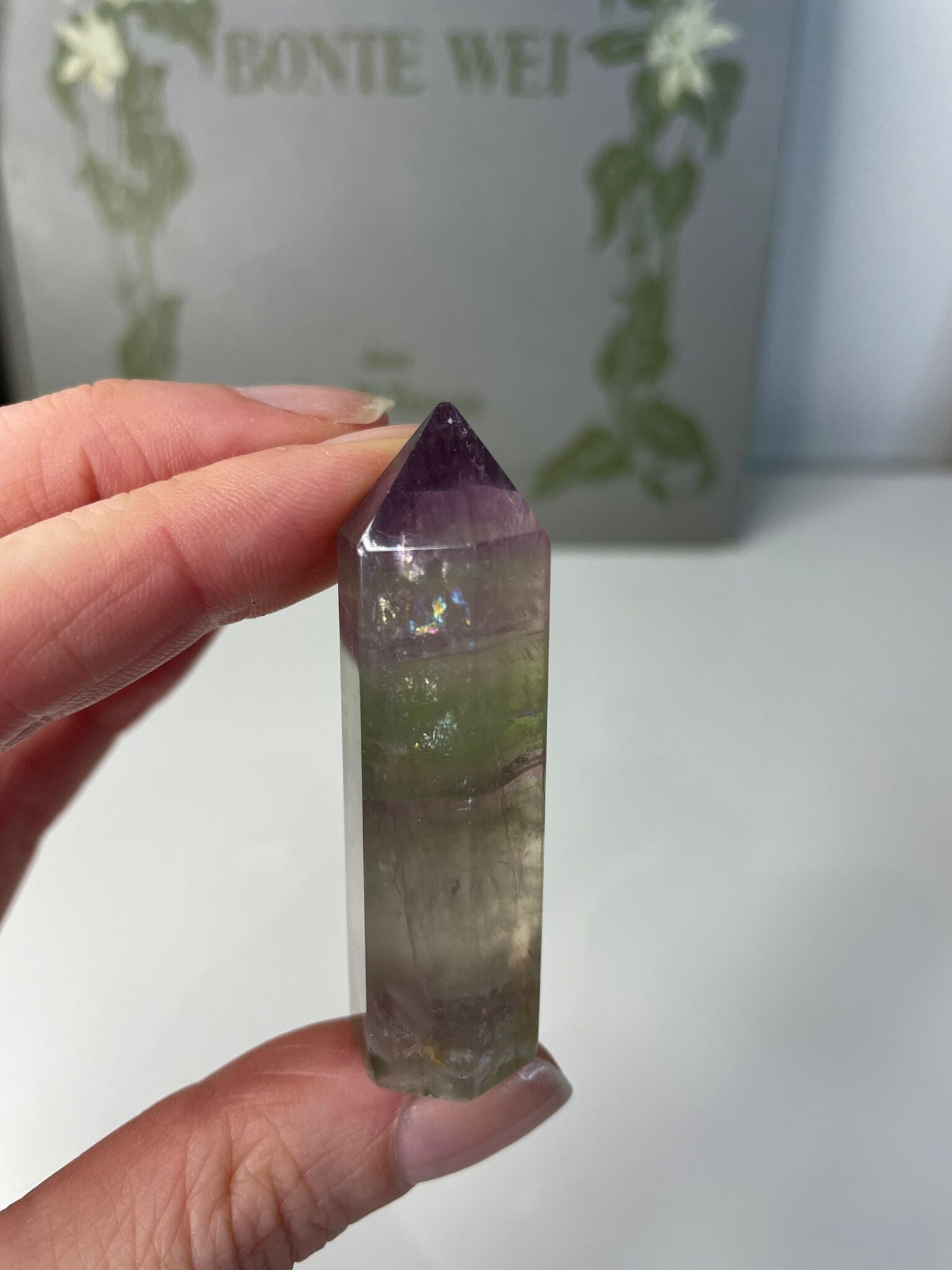 Leuk weetje: de kleuren in regenboogfluoriet ontstaan doordat er tijdens de groei van het mineraal telkens net een ander spoortje element wordt opgenomen. Je kijkt dus eigenlijk naar de laagjesgeschiedenis van de steen!
