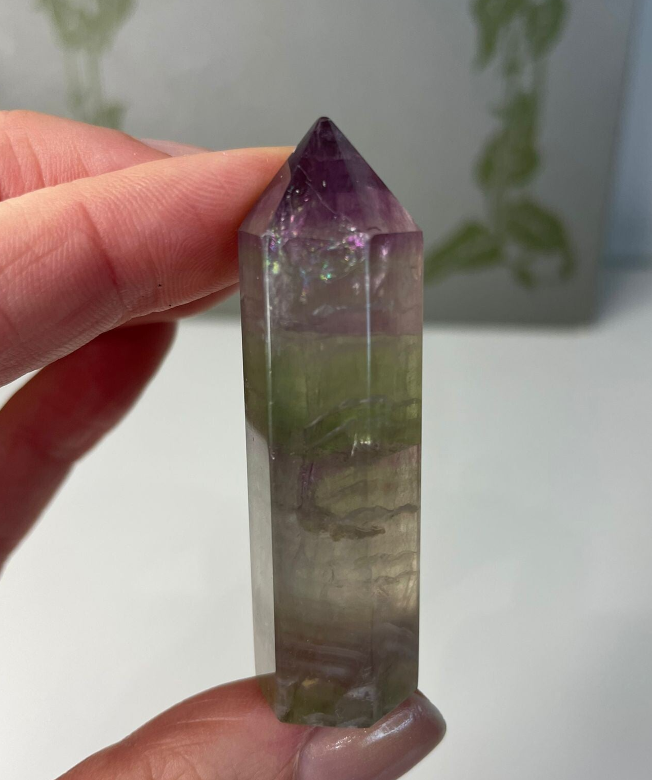Regenboogfluoriet doet zijn naam eer aan: deze steen laat vaak prachtige lagen zien in paars, groen, blauw en soms zelfs geel. Elke laag is een nieuw stukje natuurkunst, waardoor geen twee stukken ooit hetzelfde zijn.