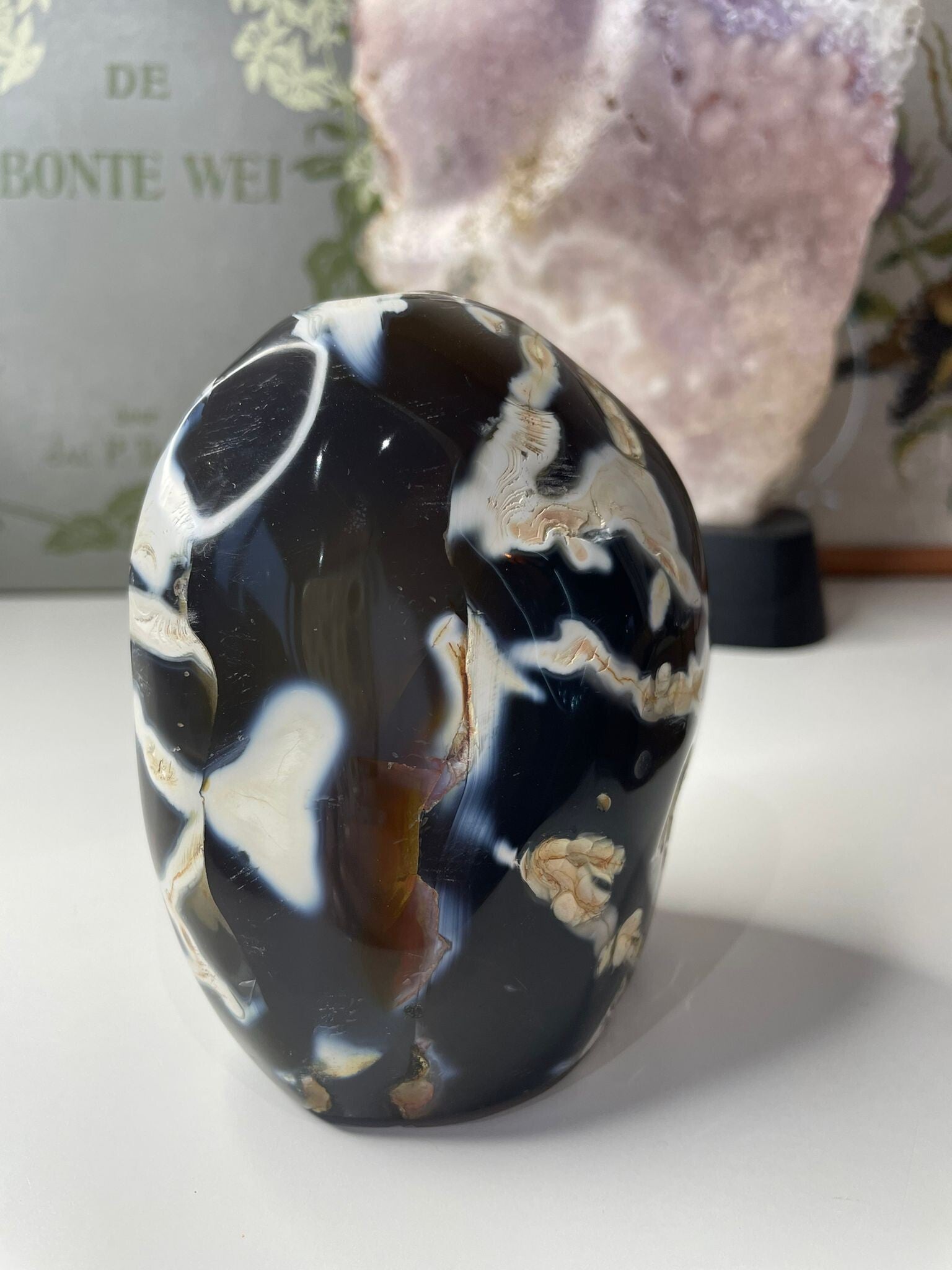 Deze agaat wordt vooral gevonden in Madagaskar en is geliefd om zijn evenwichtige energie: hij brengt kalmte in de chaos en moedigt aan om emoties rustig te laten stromen in plaats van ze op te kroppen. Orka agaat helpt je om helder te blijven, zelfs als het water even troebel wordt.