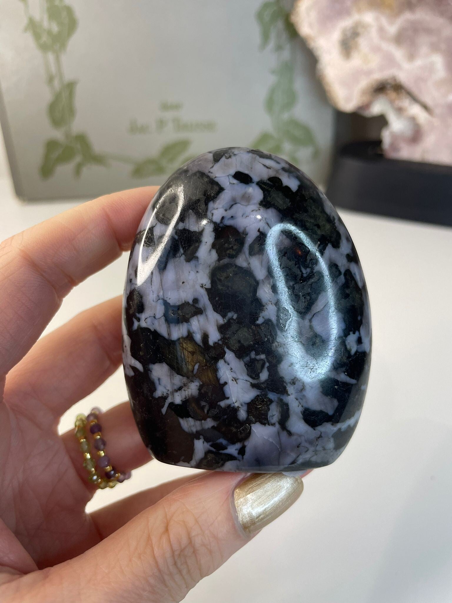 Symbolisch wordt gabbro vaak gezien als een steen van balans en inzicht: donker en licht, stevig en vloeiend, alles komt hier samen. Het is een steen die je helpt herinneren dat contrasten juist mooi naast elkaar kunnen bestaan.