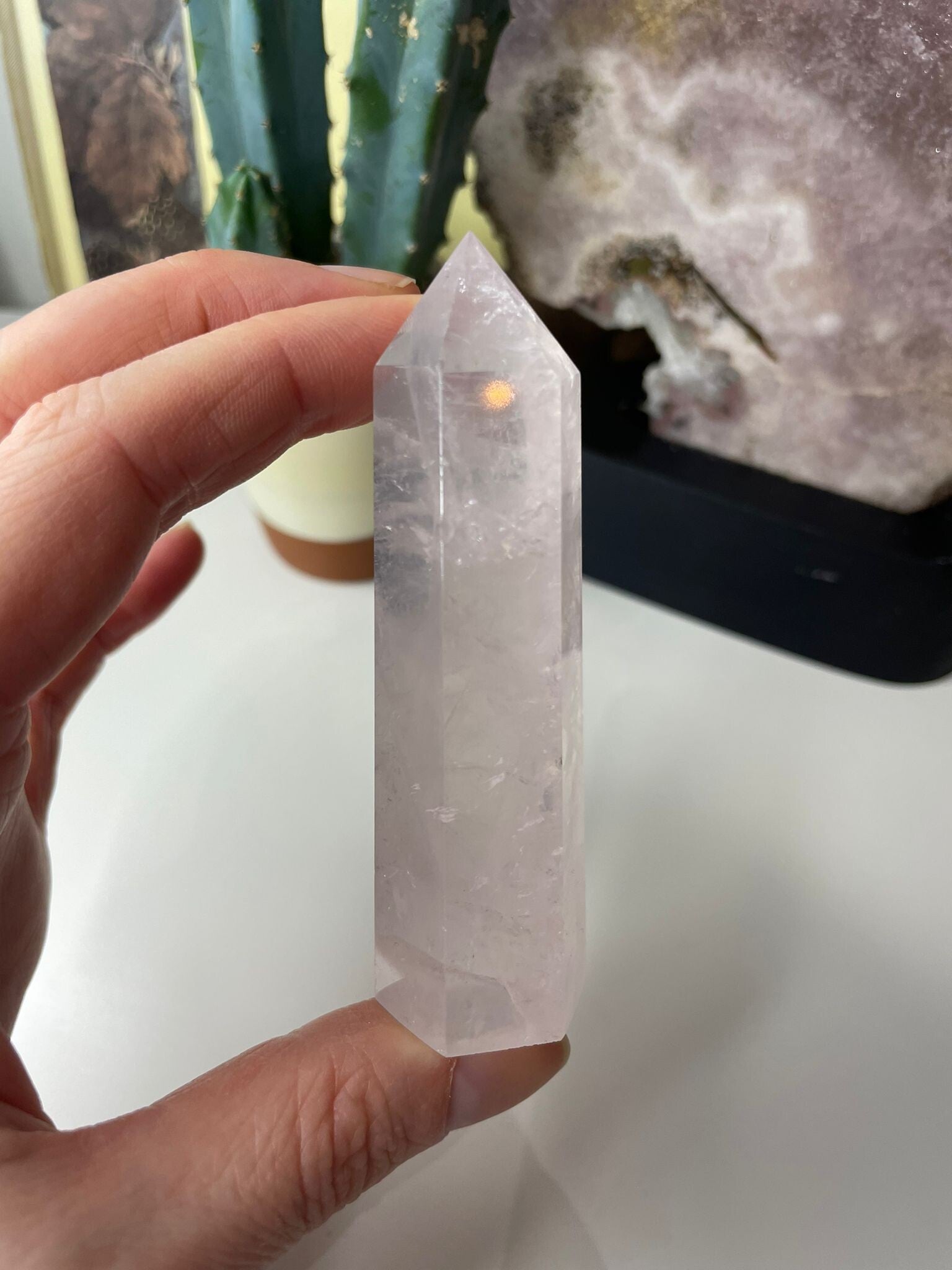 Rozenkwarts is misschien wel de meest geliefde roze edelsteen ter wereld. Met zijn zachte, melkroze kleur en kalme uitstraling heeft hij iets heel uitnodigends. De kleur ontstaat door sporen van titanium, ijzer of mangaan die tijdens de vorming in het kwarts terechtkomen. Daardoor heeft elke steen weer nét een andere tint roze: van heel licht en doorschijnend tot warm en fluweelachtig.