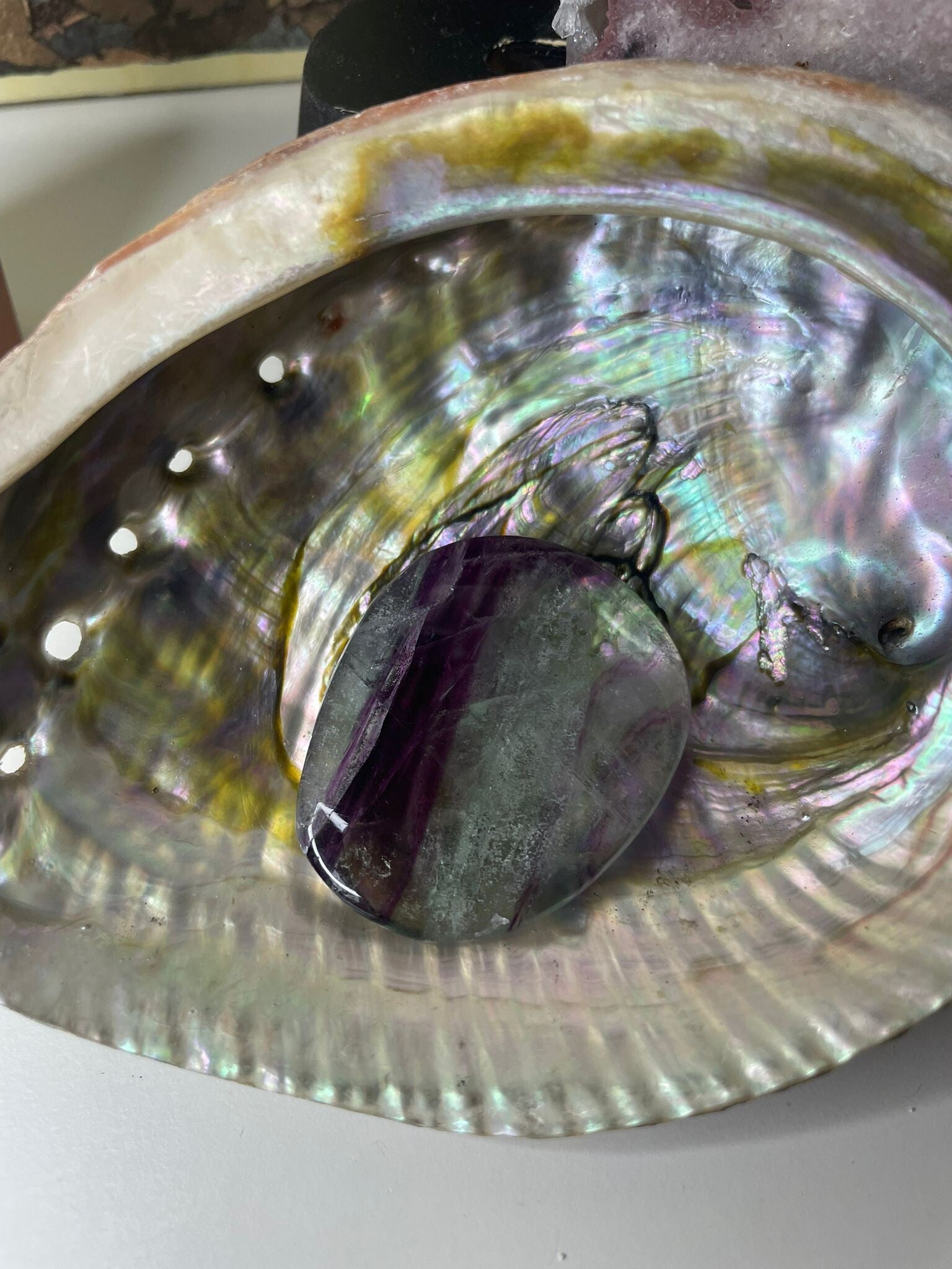 Regenboogfluoriet doet zijn naam eer aan: deze steen laat vaak prachtige lagen zien in paars, groen, blauw en soms zelfs geel. Elke laag is een nieuw stukje natuurkunst, waardoor geen twee stukken ooit hetzelfde zijn.