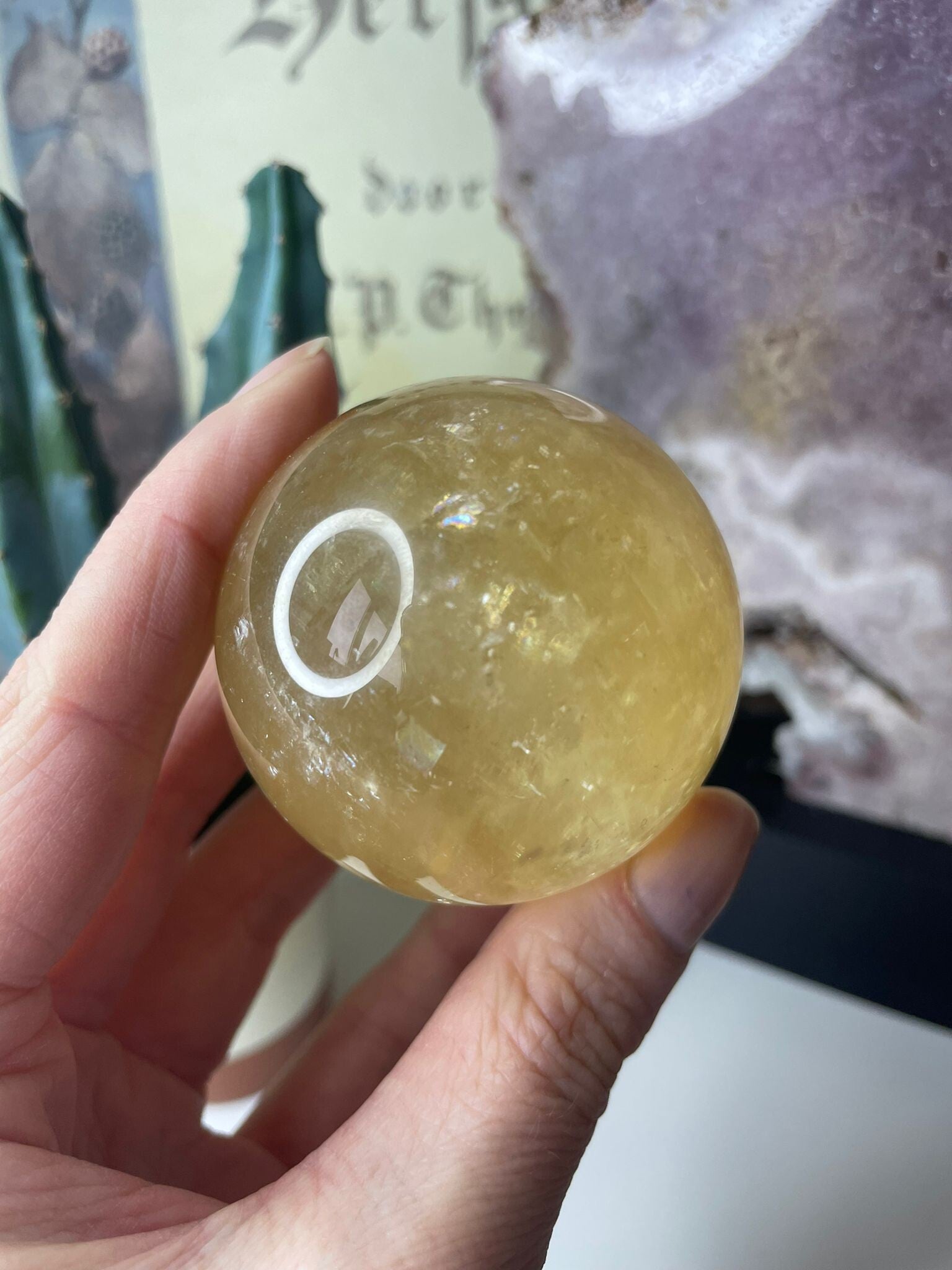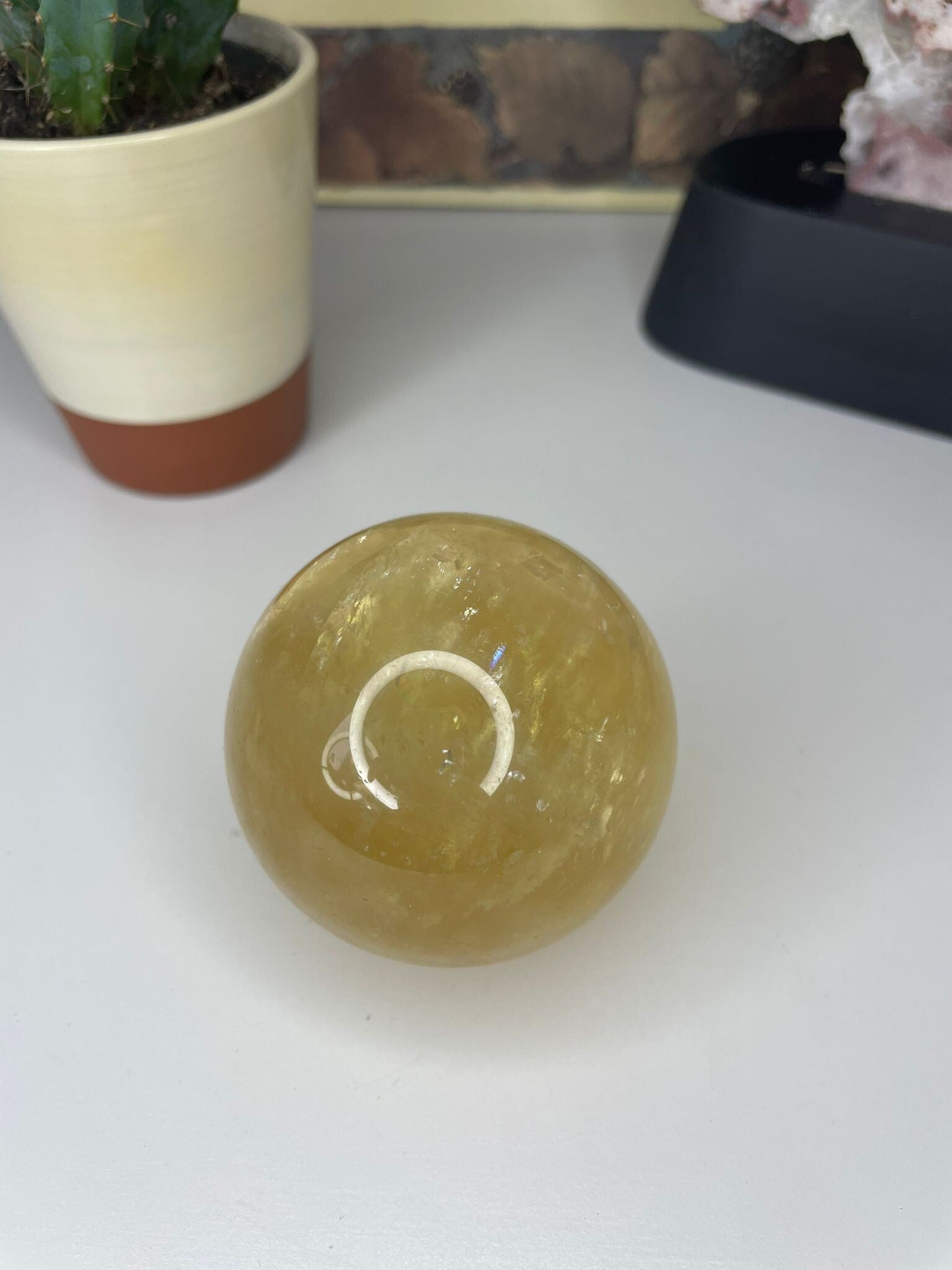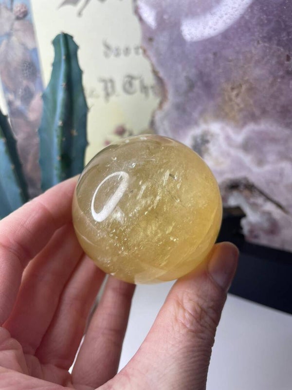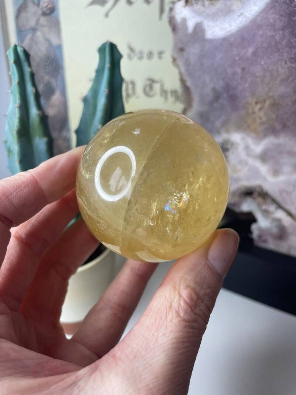 Leuk weetje: De prachtige glans van Honing Calciet ontstaat doordat licht zich breekt in microscopisch kleine kristalvlakjes binnenin de steen. Daarom lijkt hij soms van kleur te veranderen als je hem beweegt, net vloeibare honing in zonlicht.