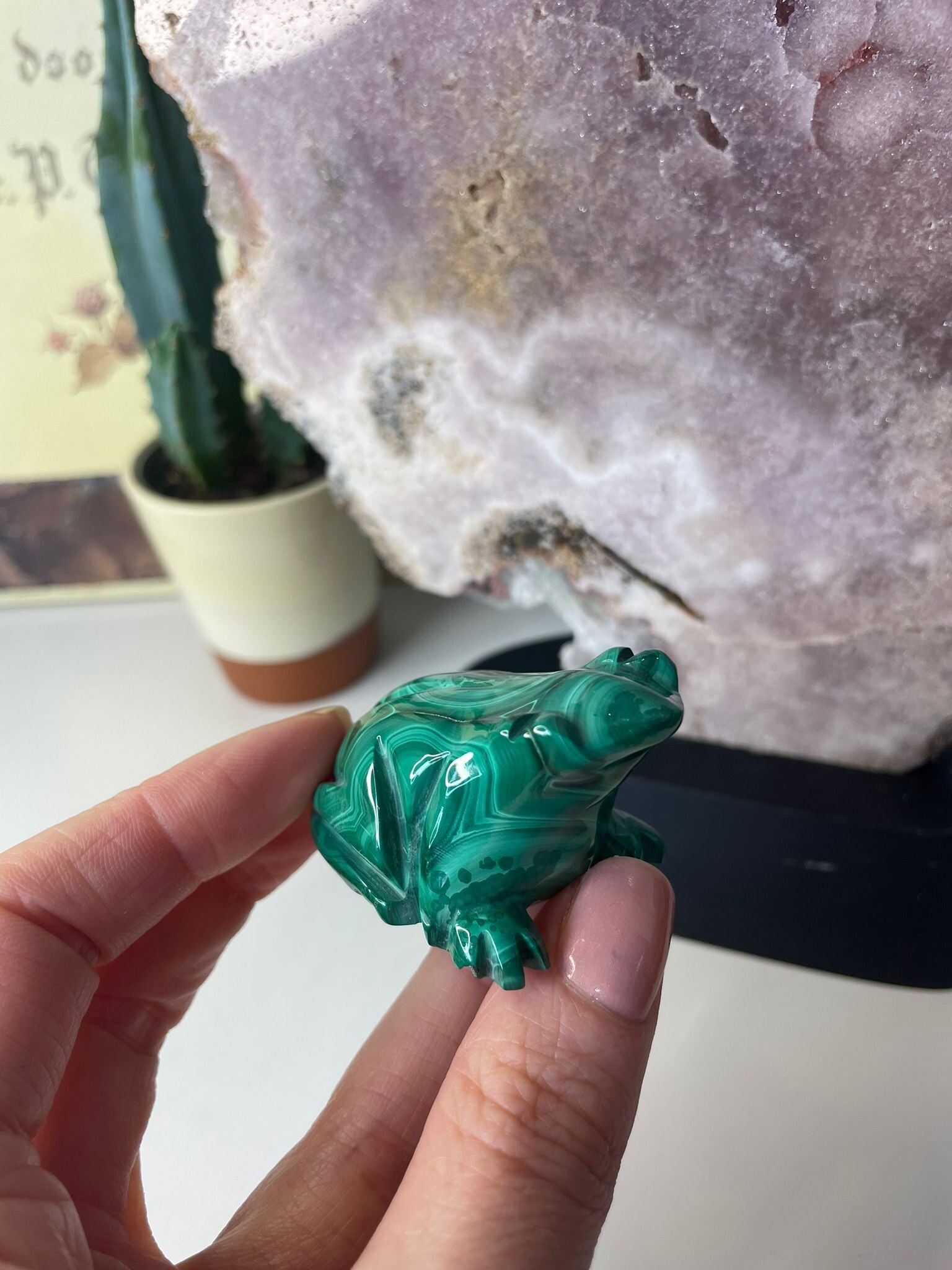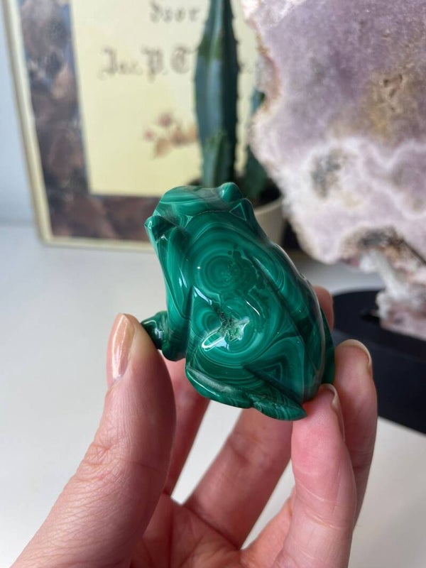 Men zegt dat malachiet symbool staat voor groei en transformatie – een beetje zoals de natuur zelf: steeds in beweging, steeds veranderend. De steen nodigt uit om oude patronen los te laten en met frisse energie verder te gaan.