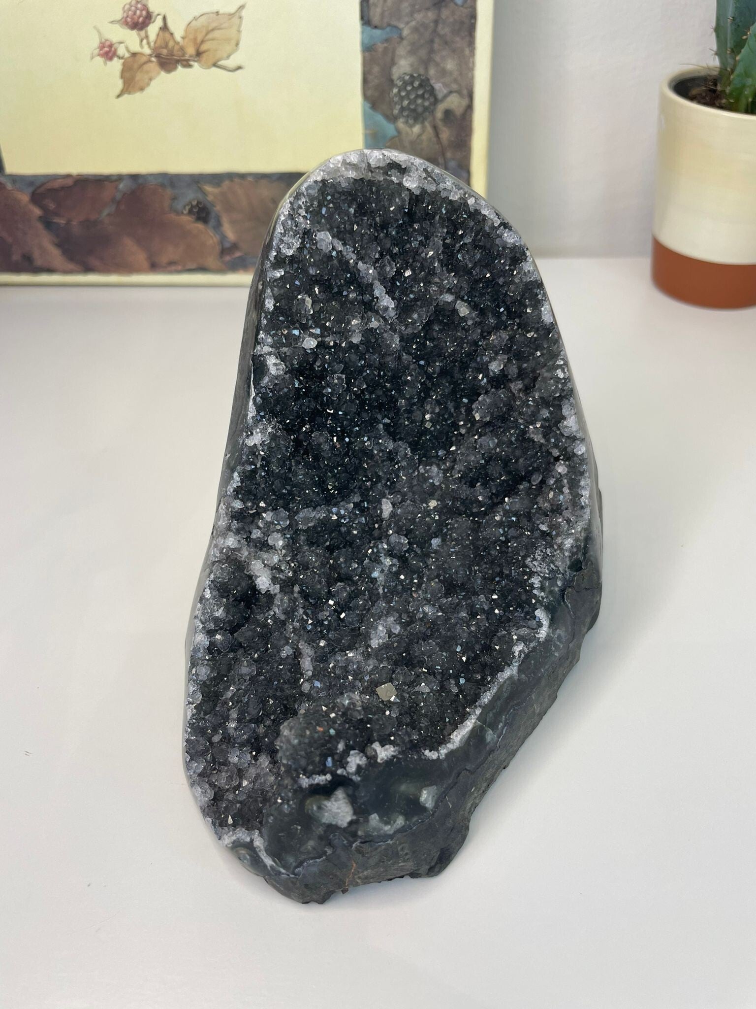 Deze bijzondere variant komt voornamelijk uit Uruguay, een land dat bekendstaat om zijn hoogwaardige, donkergekleurde amethist. De combinatie van glans, diepte en textuur maakt elk stuk uniek en zeer geliefd bij verzamelaars en liefhebbers van edelstenen.